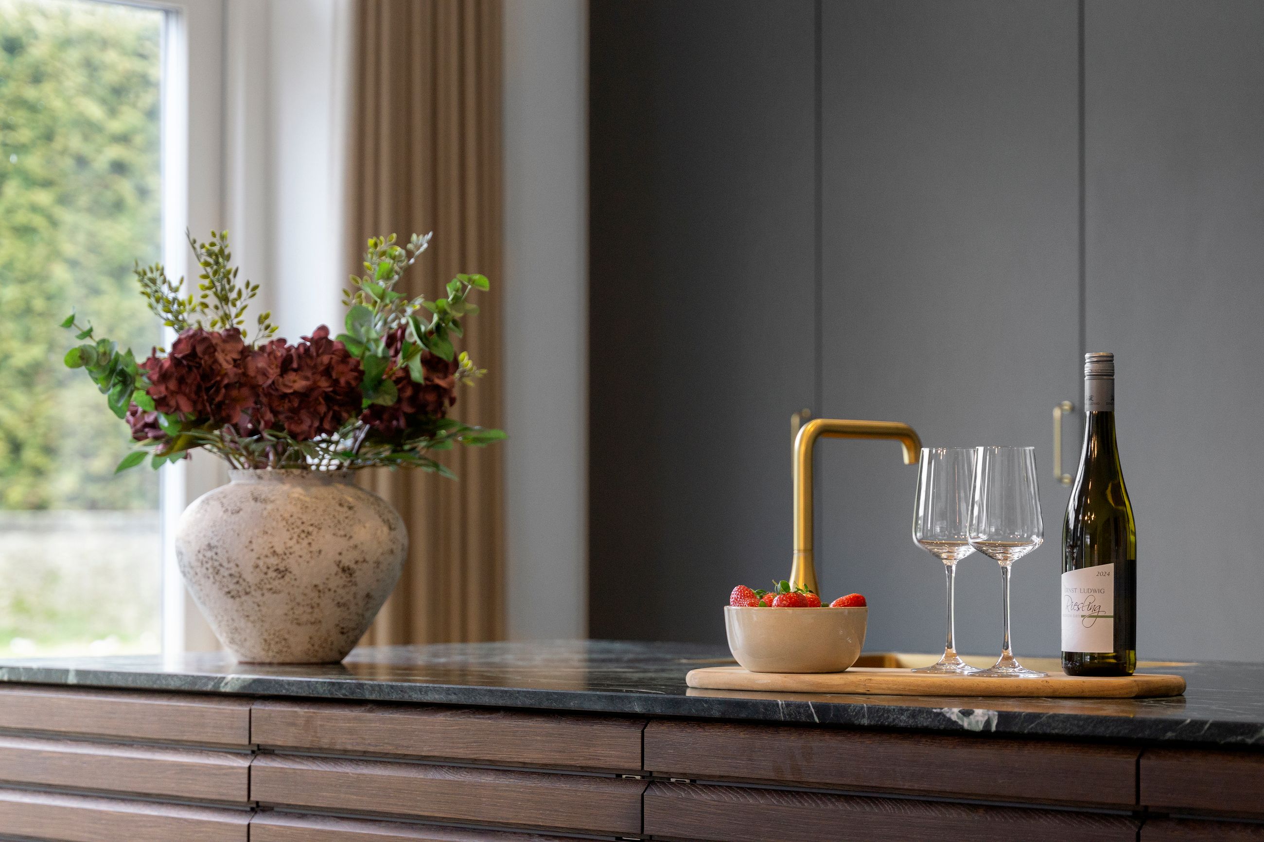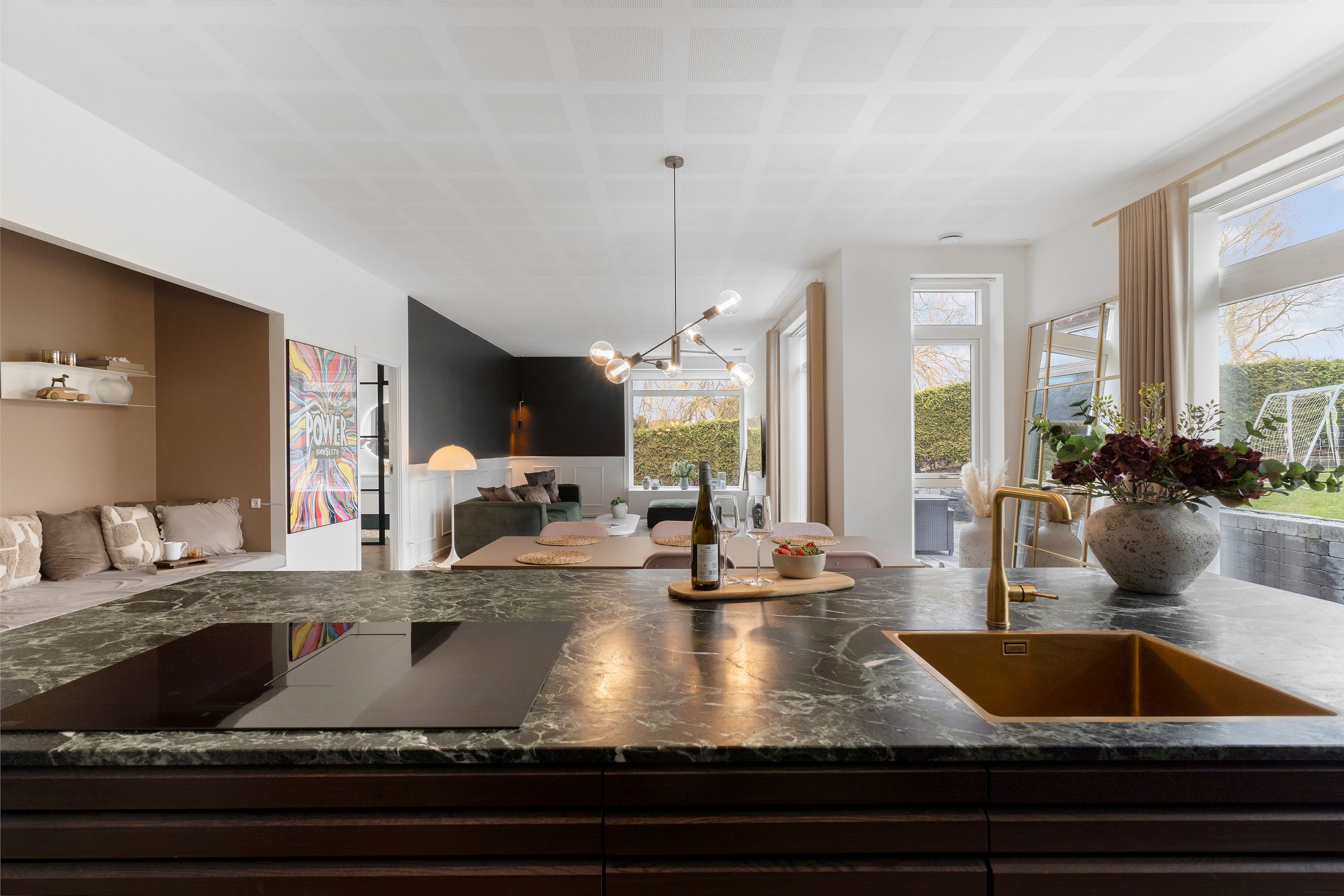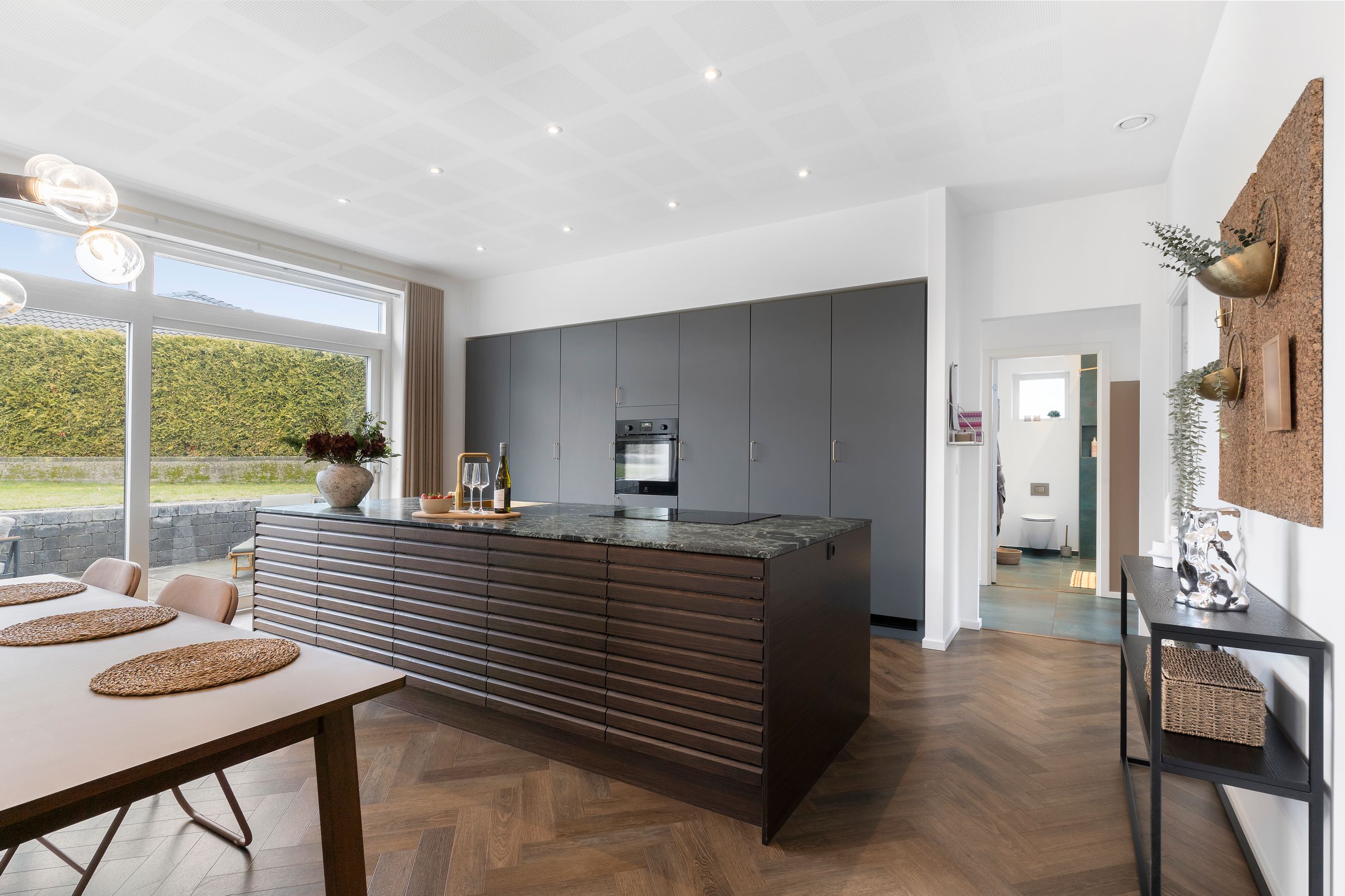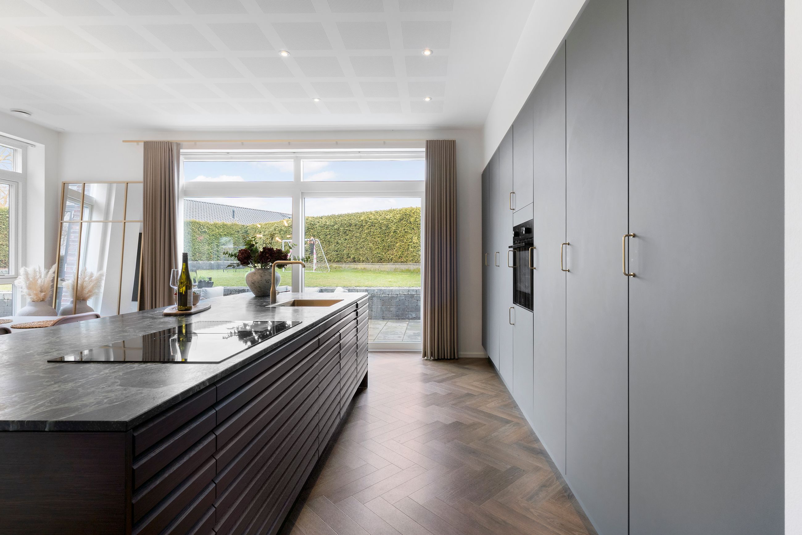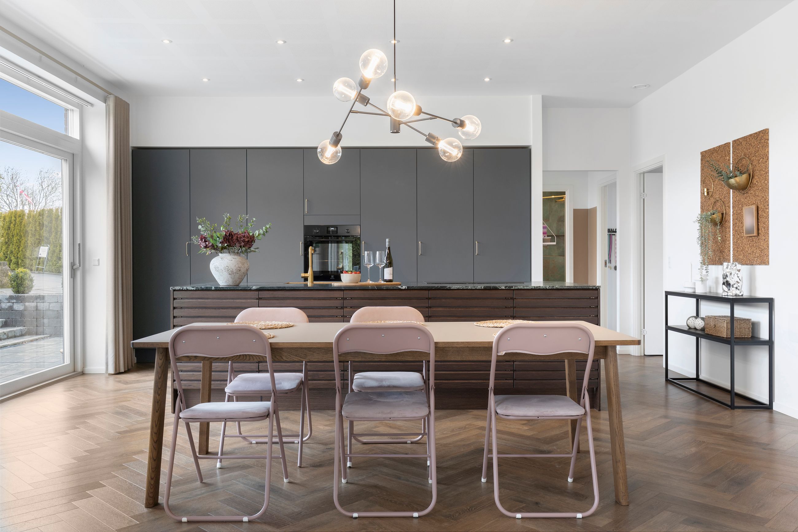 Det er så nyt som fra 2023. Wow, siger vi bare, sikken bolig. Alt er lækkert tænkt og bygget tæt på alt i byen. Stor er den ikke, byen, centrum og havnen er derfor lige om hjørnet. Her er højt til loftet, smukke parketgulve, lækkert køkken og ditto badeværelser med en planløsning, hvor forældrene har deres afdeling, børnene deres. Så er alle glade. Her er masser af lys og masser af sol på den 2.690 m2 store grund. Ikke alt er have, for søen fylder en del. Vi er ikke langt fra de rekreative områder i Ådalen, og der er stisystemer til institutioner og skole.
