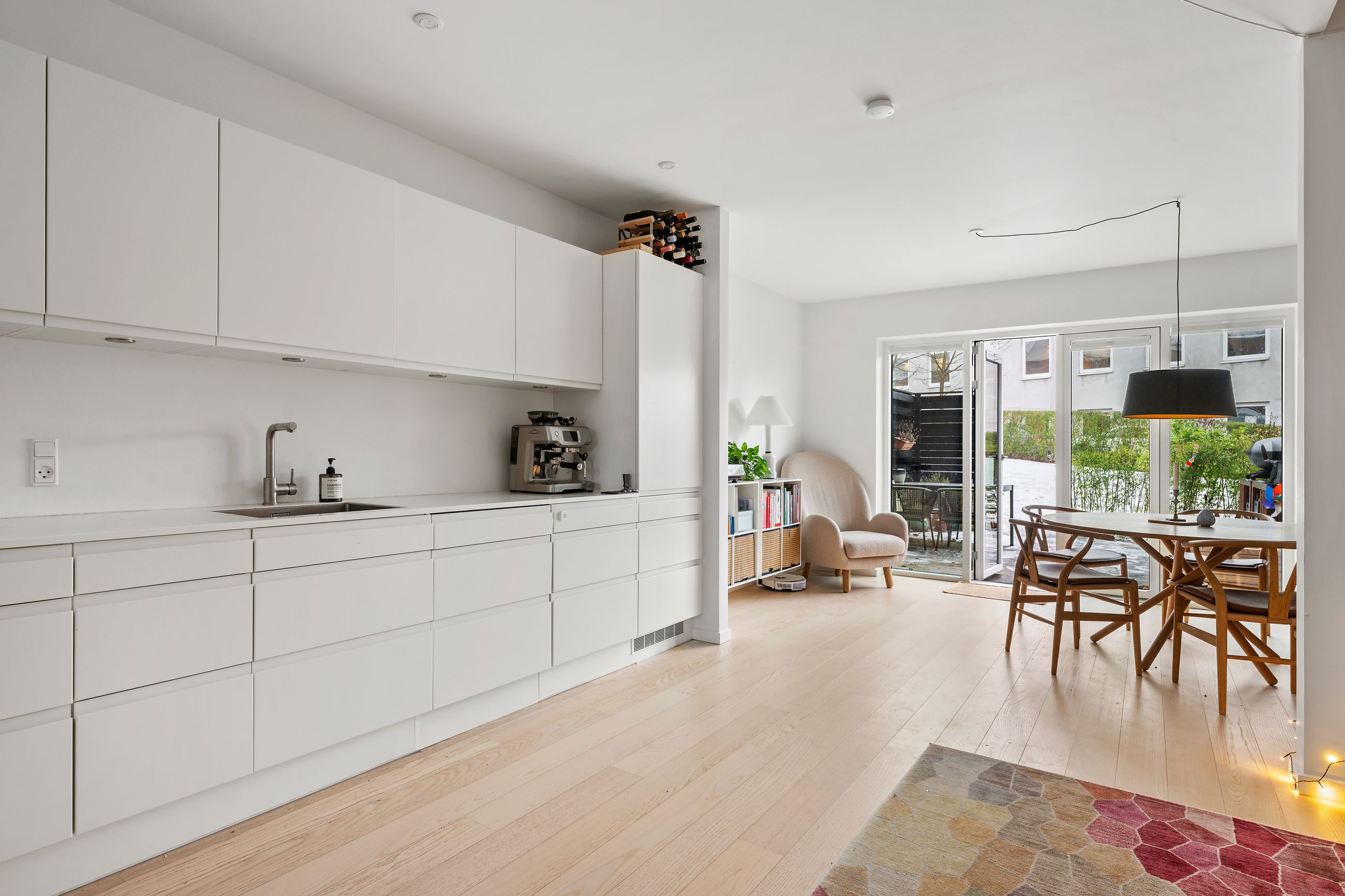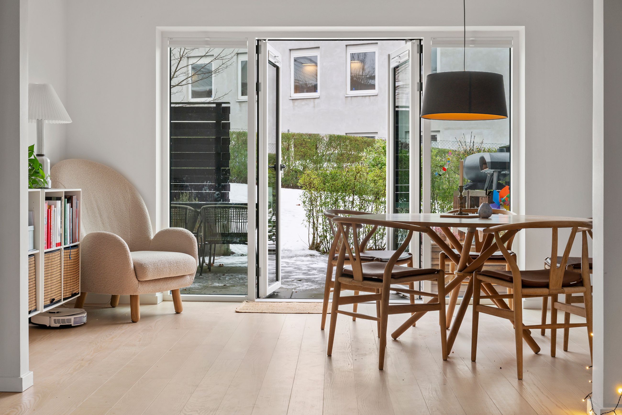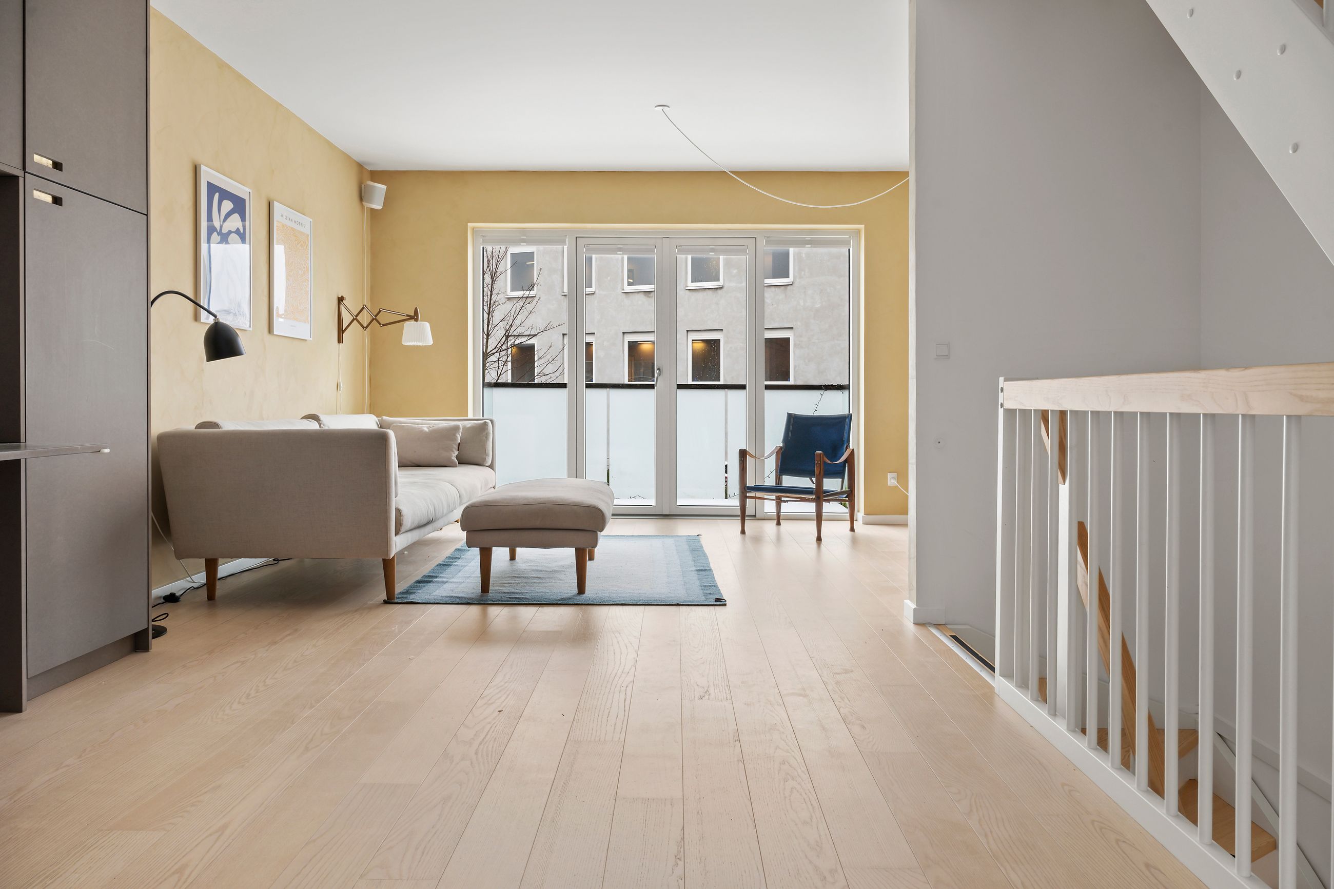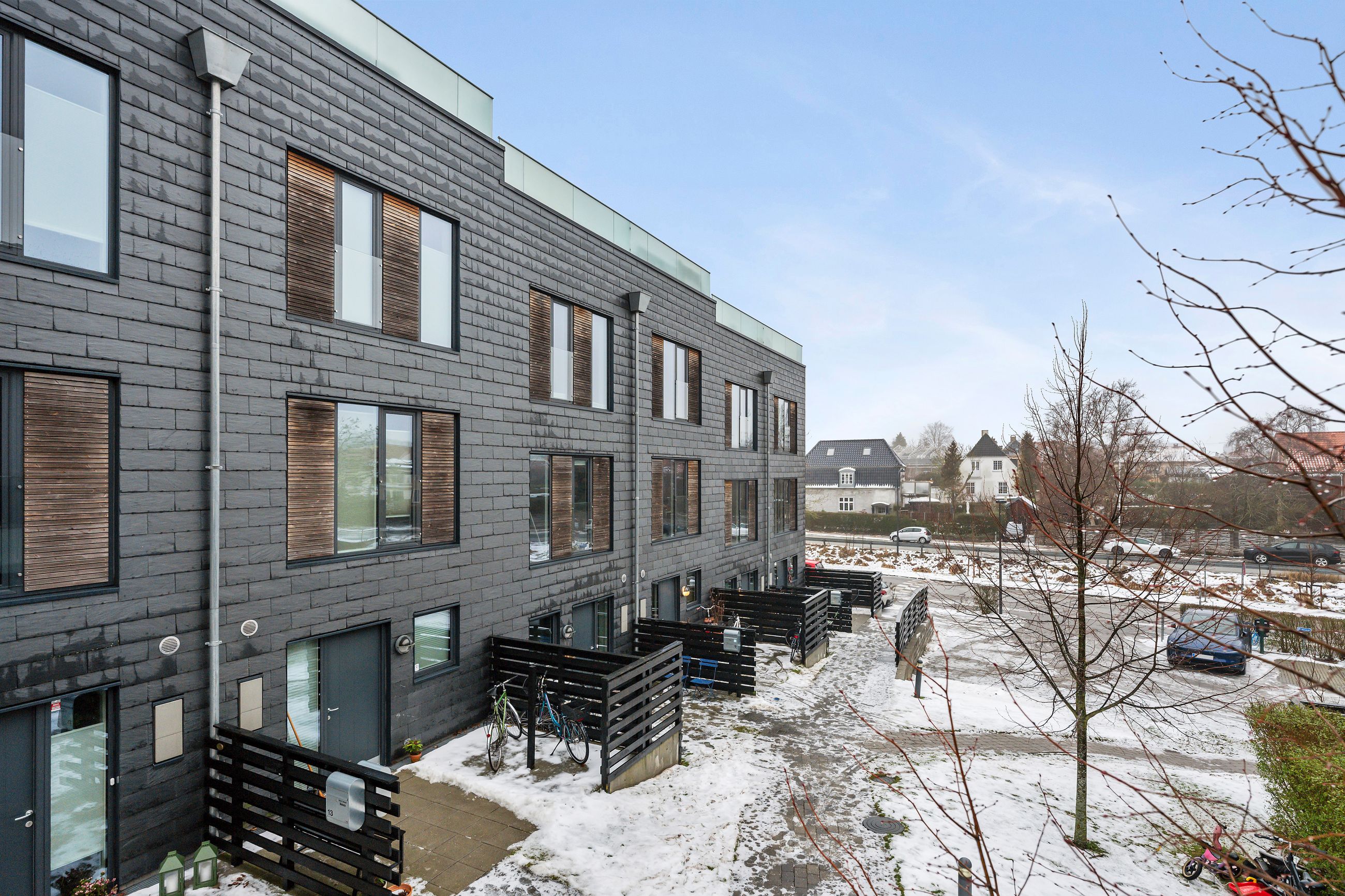 Med den private tagterrasse er byhuset i 4 plan med 138 m2 bolig fordelt på de 3 af etagerne. Der er eftermiddagssol og aftensol på terrassen mod de grønne fællesarealer, og der er bare 10 minutter til Utterslev Mose med legepladser og masser af fugle. Der er kort cykelafstand til stranden i Hellerup, det samme til Indre By. Vi er i et kvarter med institutioner, skoler, gymnasier og sportsfaciliteter. Emdrup var oprindelig en landsby med en historie helt tilbage til 1100-tallet. I 1800-tallet opførte folk fra det københavnske borgerskab et par landsteder ved Emdrup Sø, og området udviklede sig voldsomt op gennem samme århundrede. I 1901 blev Emdrup sammen med Brønshøj indlemmet i Københavns Kommune.