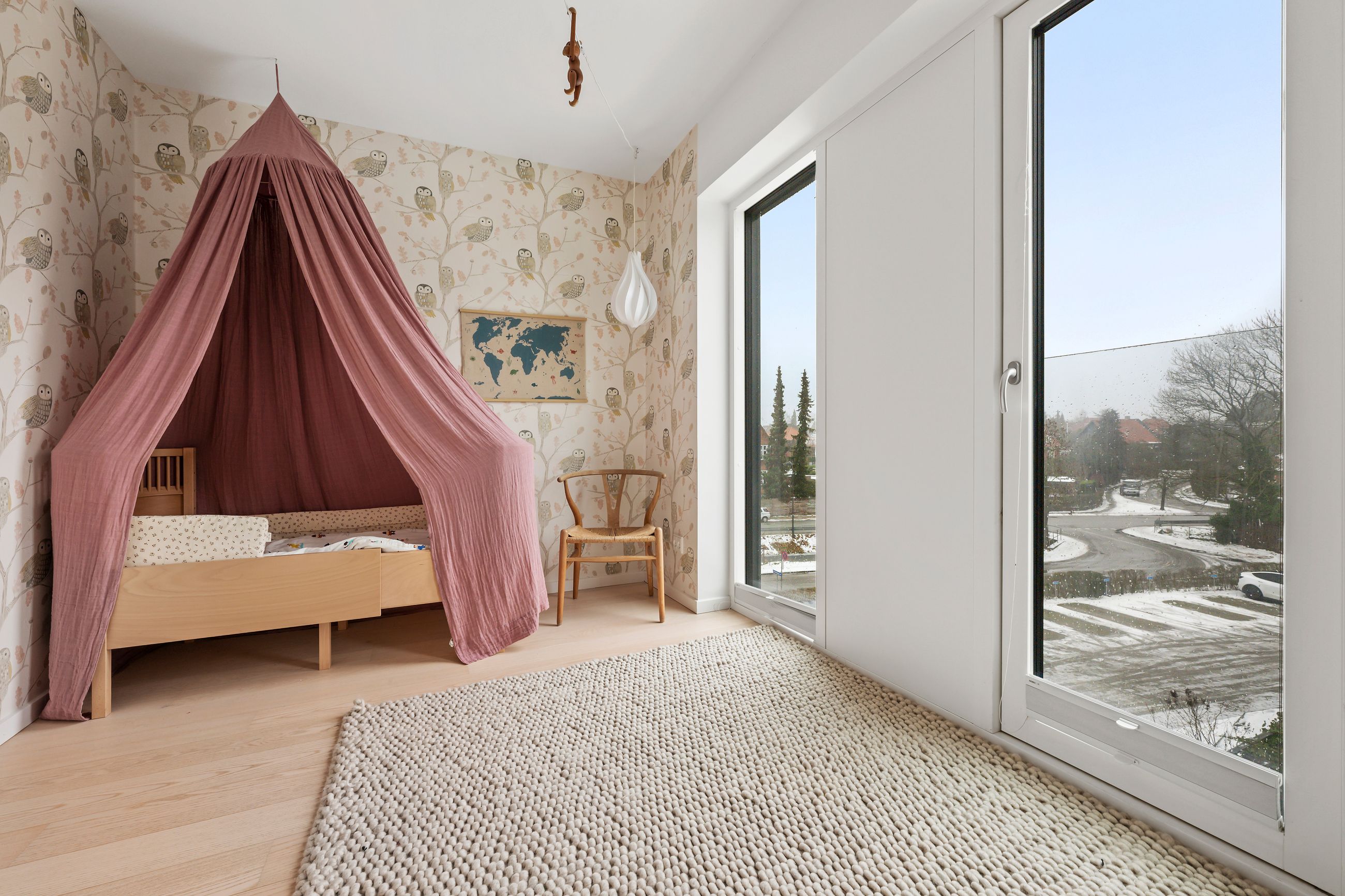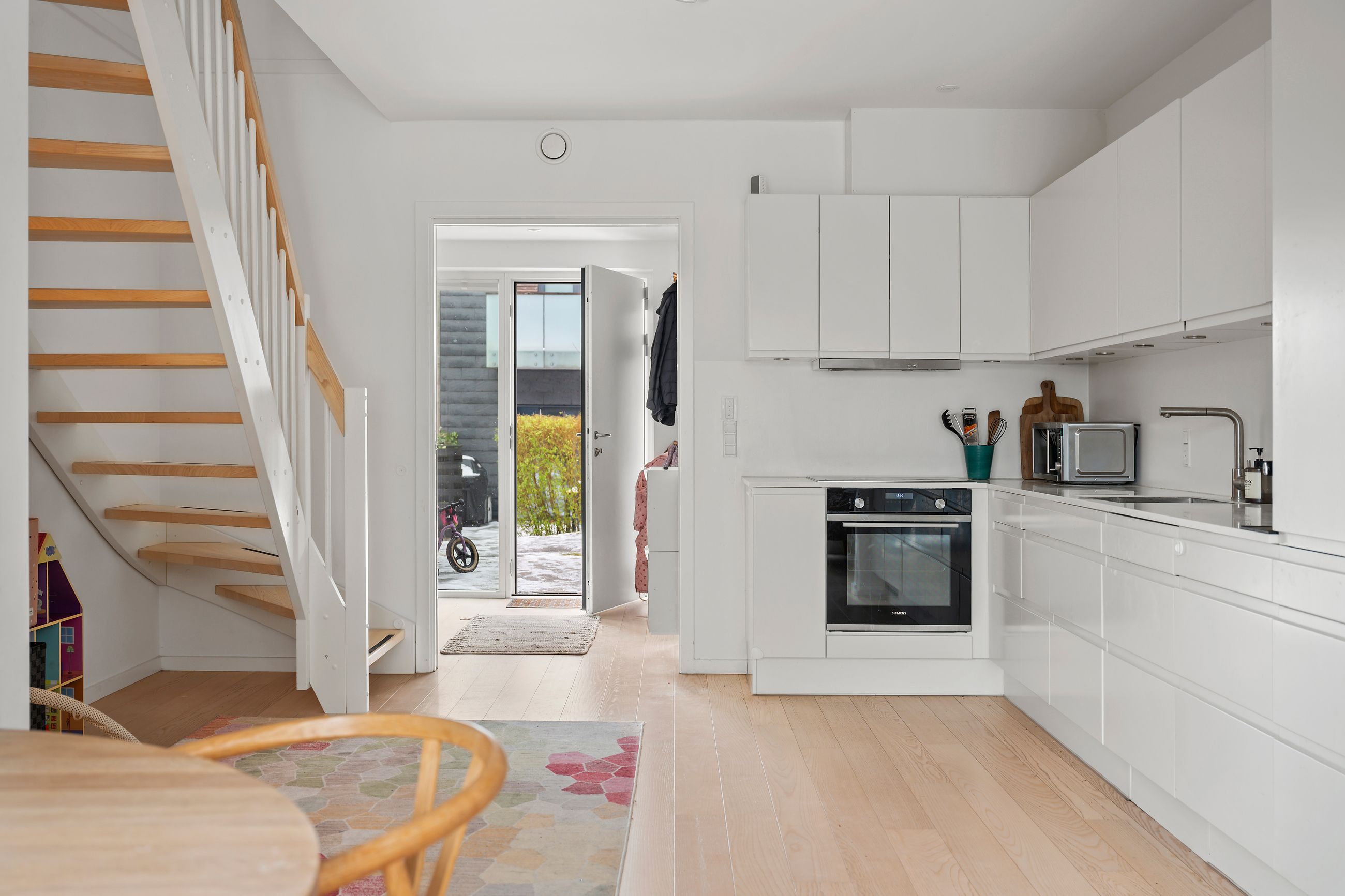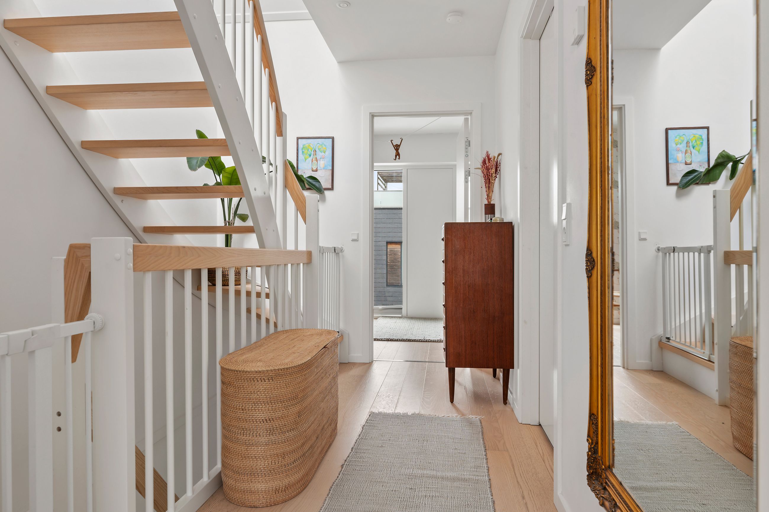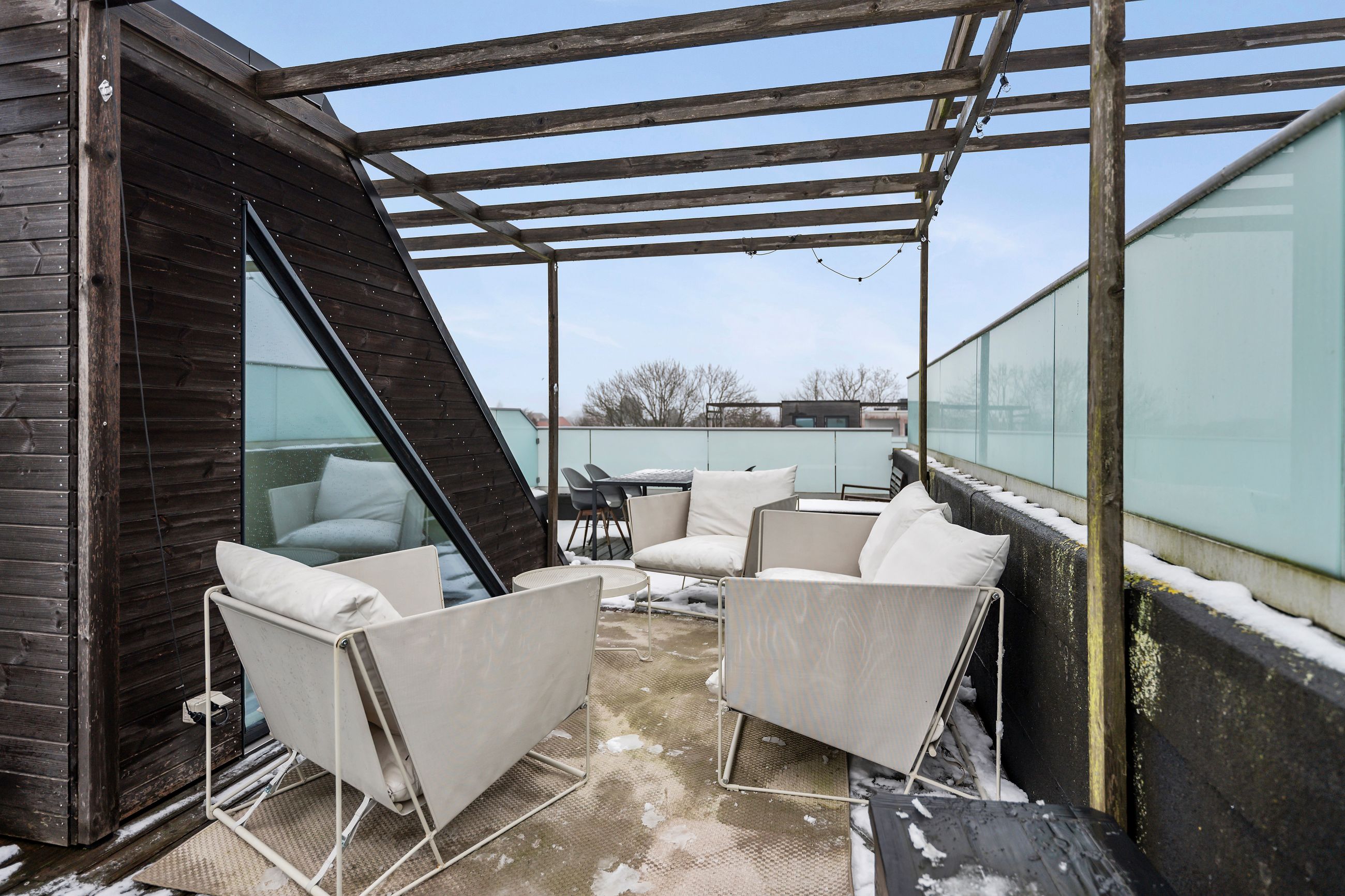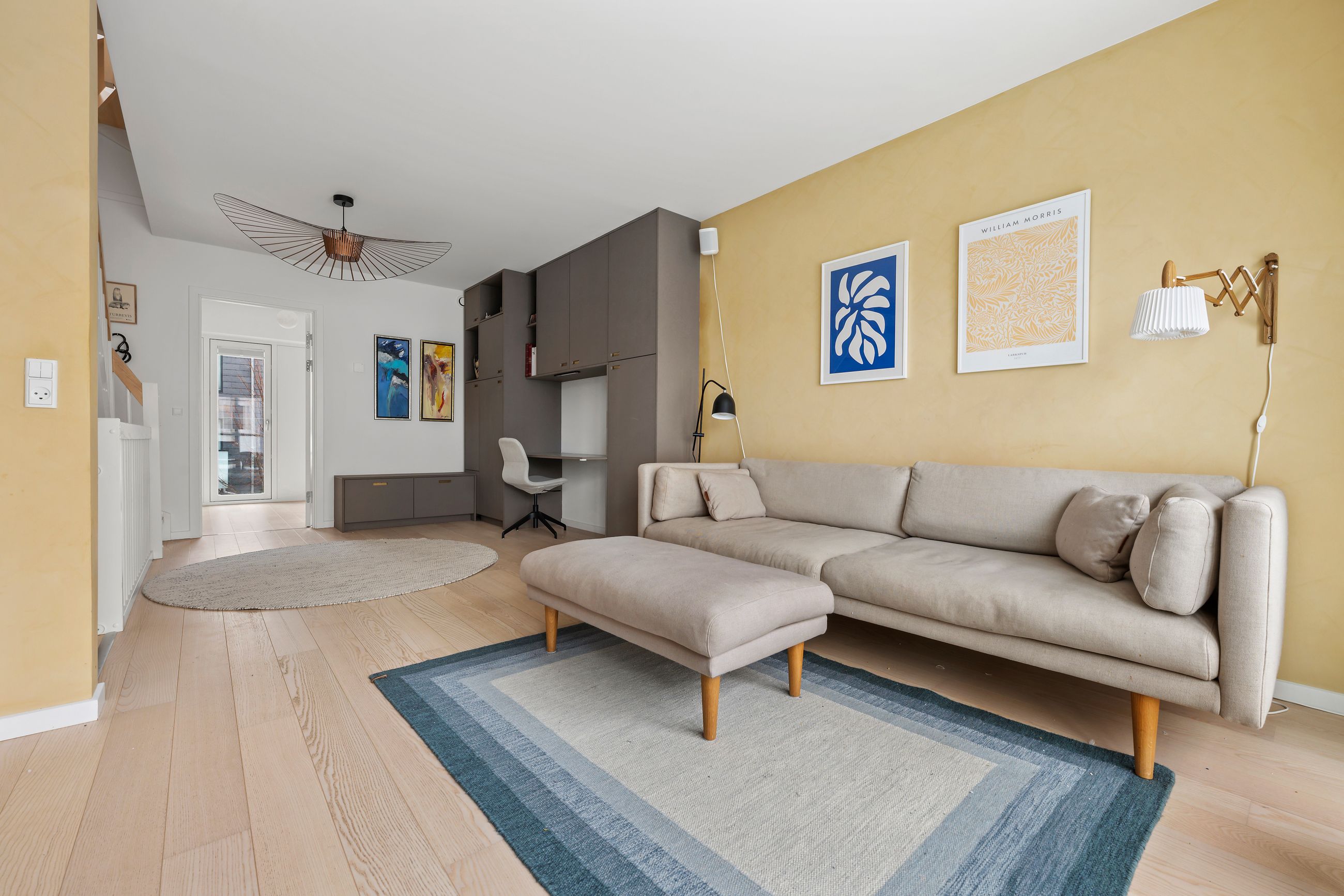 Med den private tagterrasse er byhuset i 4 plan med 138 m2 bolig fordelt på de 3 af etagerne. Der er eftermiddagssol og aftensol på terrassen mod de grønne fællesarealer, og der er bare 10 minutter til Utterslev Mose med legepladser og masser af fugle. Der er kort cykelafstand til stranden i Hellerup, det samme til Indre By. Vi er i et kvarter med institutioner, skoler, gymnasier og sportsfaciliteter. Emdrup var oprindelig en landsby med en historie helt tilbage til 1100-tallet. I 1800-tallet opførte folk fra det københavnske borgerskab et par landsteder ved Emdrup Sø, og området udviklede sig voldsomt op gennem samme århundrede. I 1901 blev Emdrup sammen med Brønshøj indlemmet i Københavns Kommune.