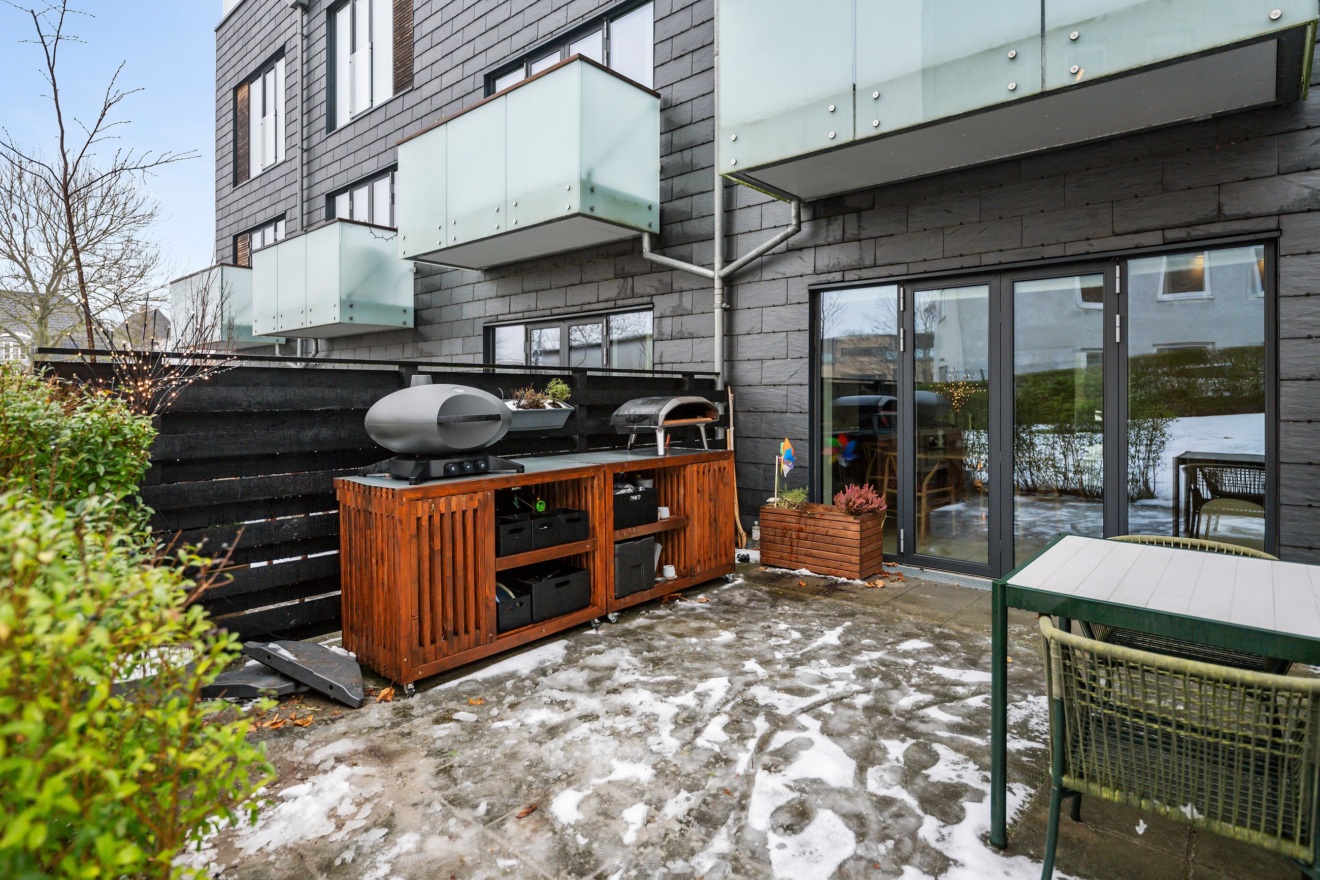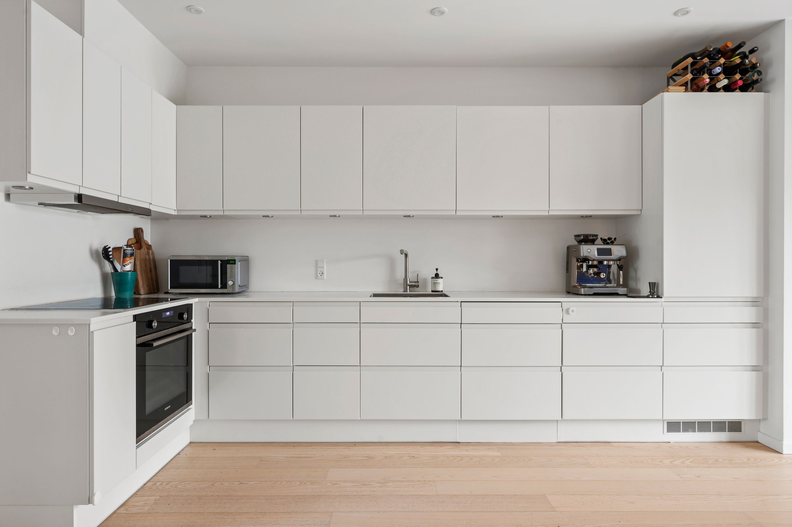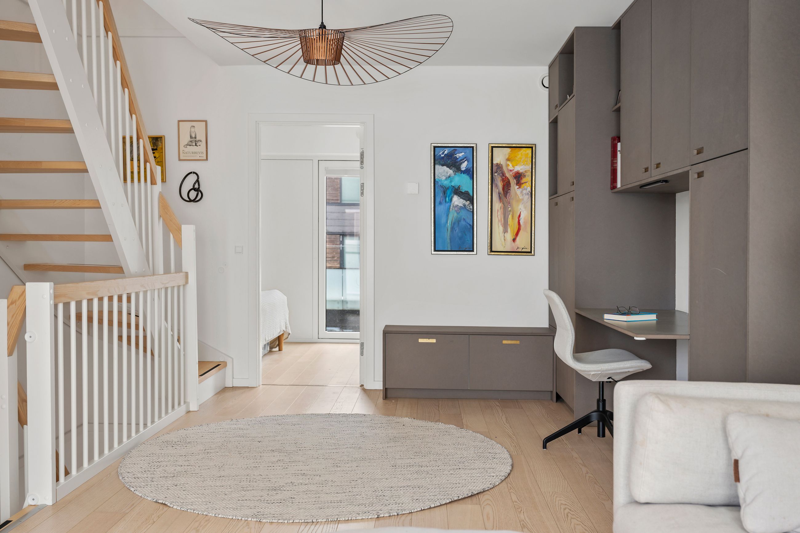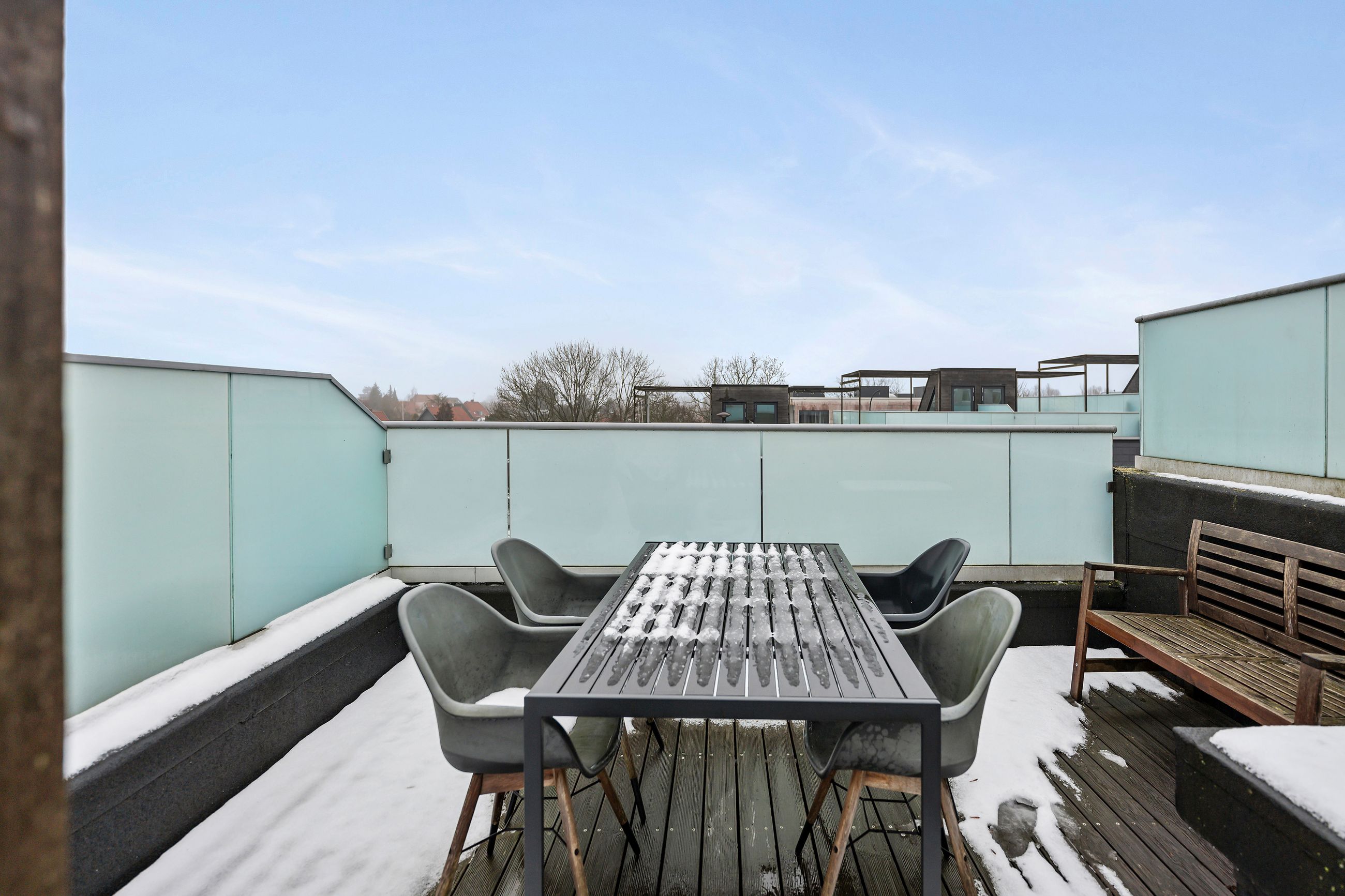 Med den private tagterrasse er byhuset i 4 plan med 138 m2 bolig fordelt på de 3 af etagerne. Der er eftermiddagssol og aftensol på terrassen mod de grønne fællesarealer, og der er bare 10 minutter til Utterslev Mose med legepladser og masser af fugle. Der er kort cykelafstand til stranden i Hellerup, det samme til Indre By. Vi er i et kvarter med institutioner, skoler, gymnasier og sportsfaciliteter. Emdrup var oprindelig en landsby med en historie helt tilbage til 1100-tallet. I 1800-tallet opførte folk fra det københavnske borgerskab et par landsteder ved Emdrup Sø, og området udviklede sig voldsomt op gennem samme århundrede. I 1901 blev Emdrup sammen med Brønshøj indlemmet i Københavns Kommune.