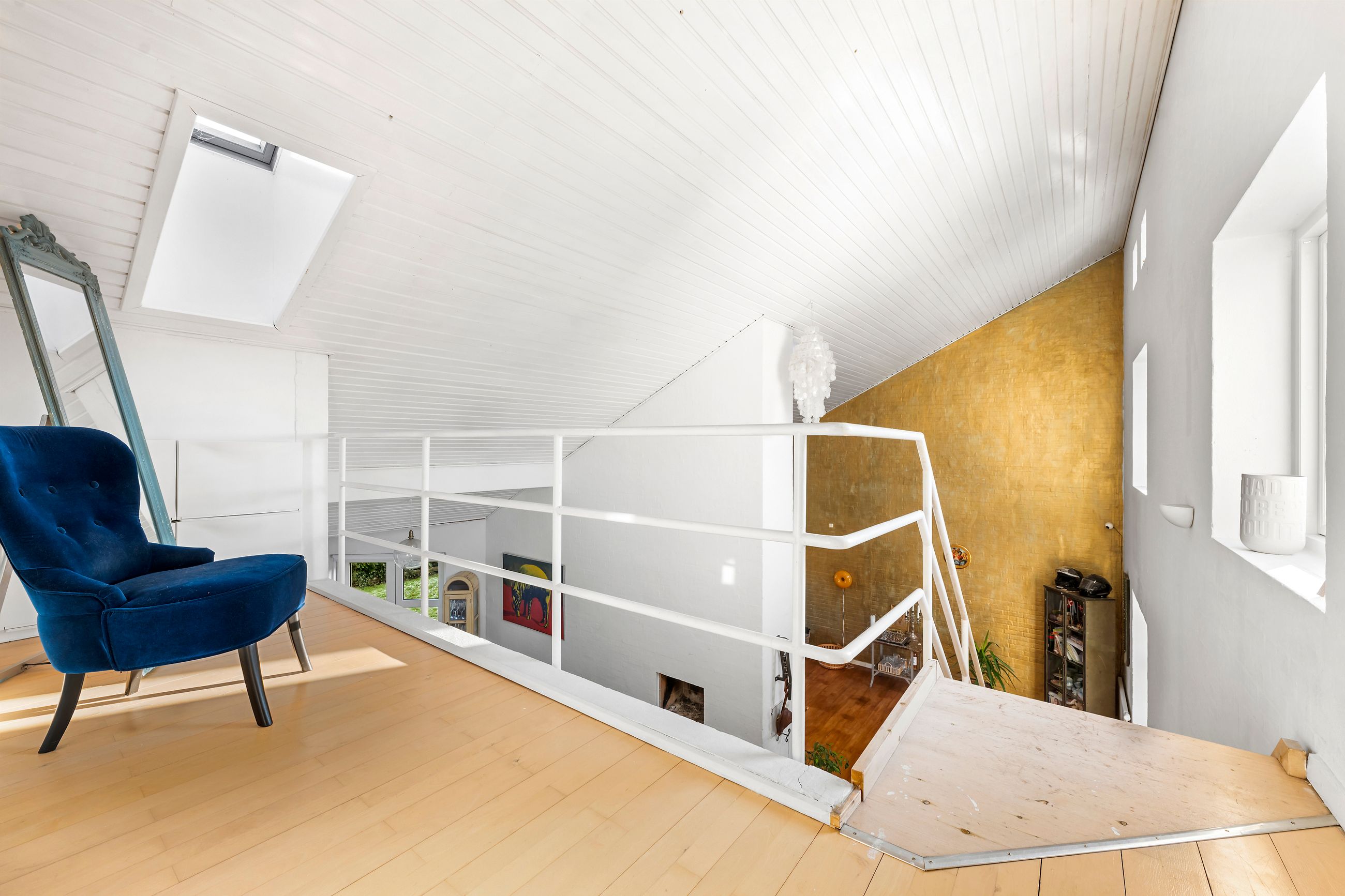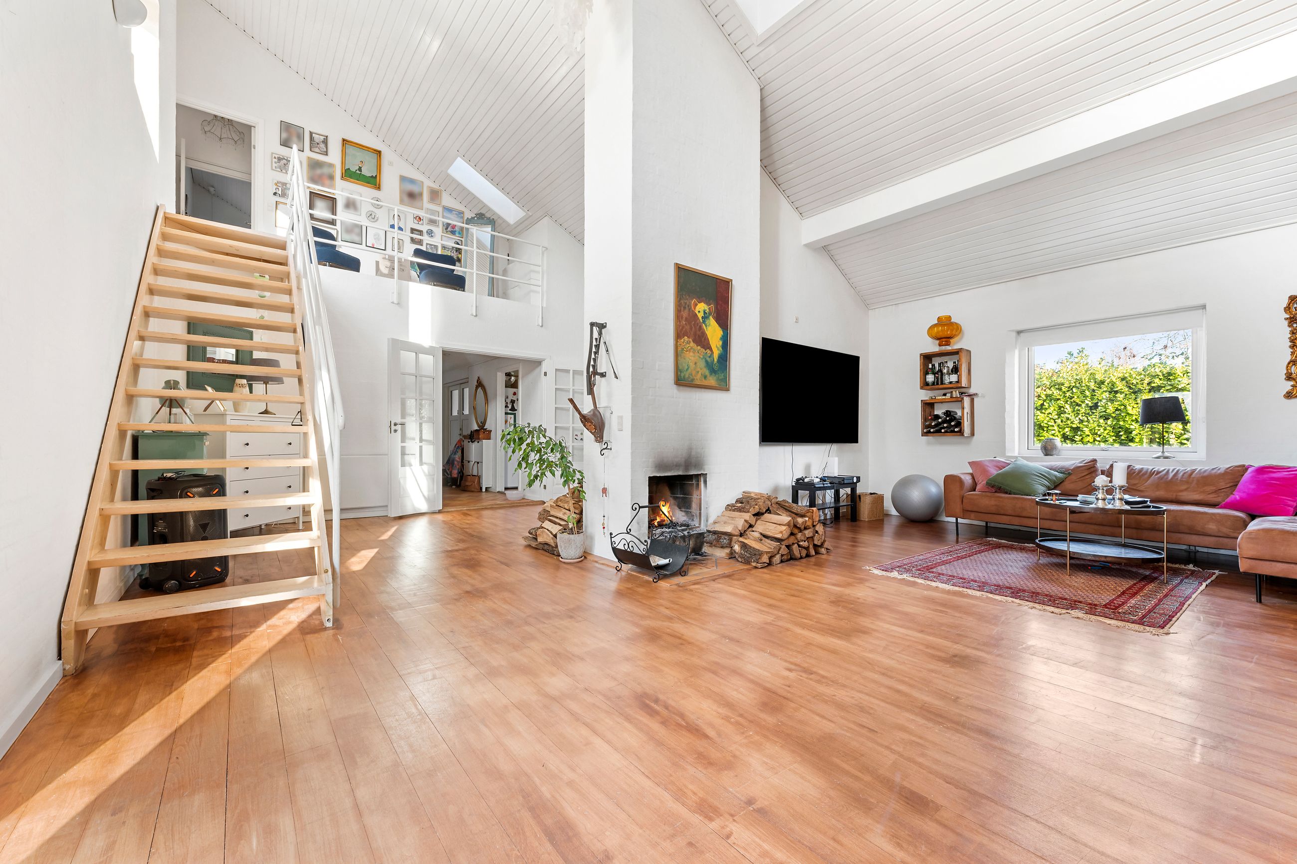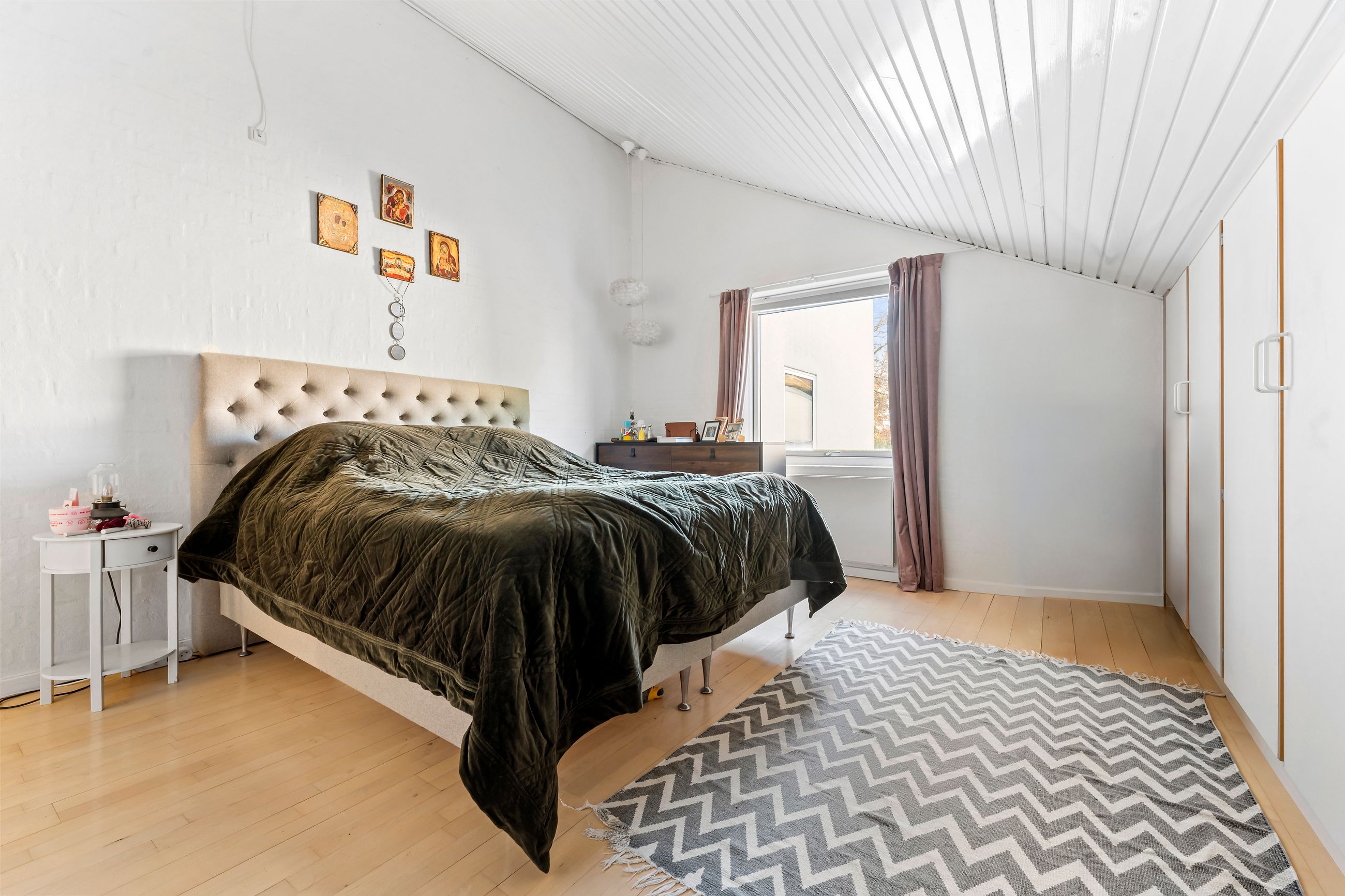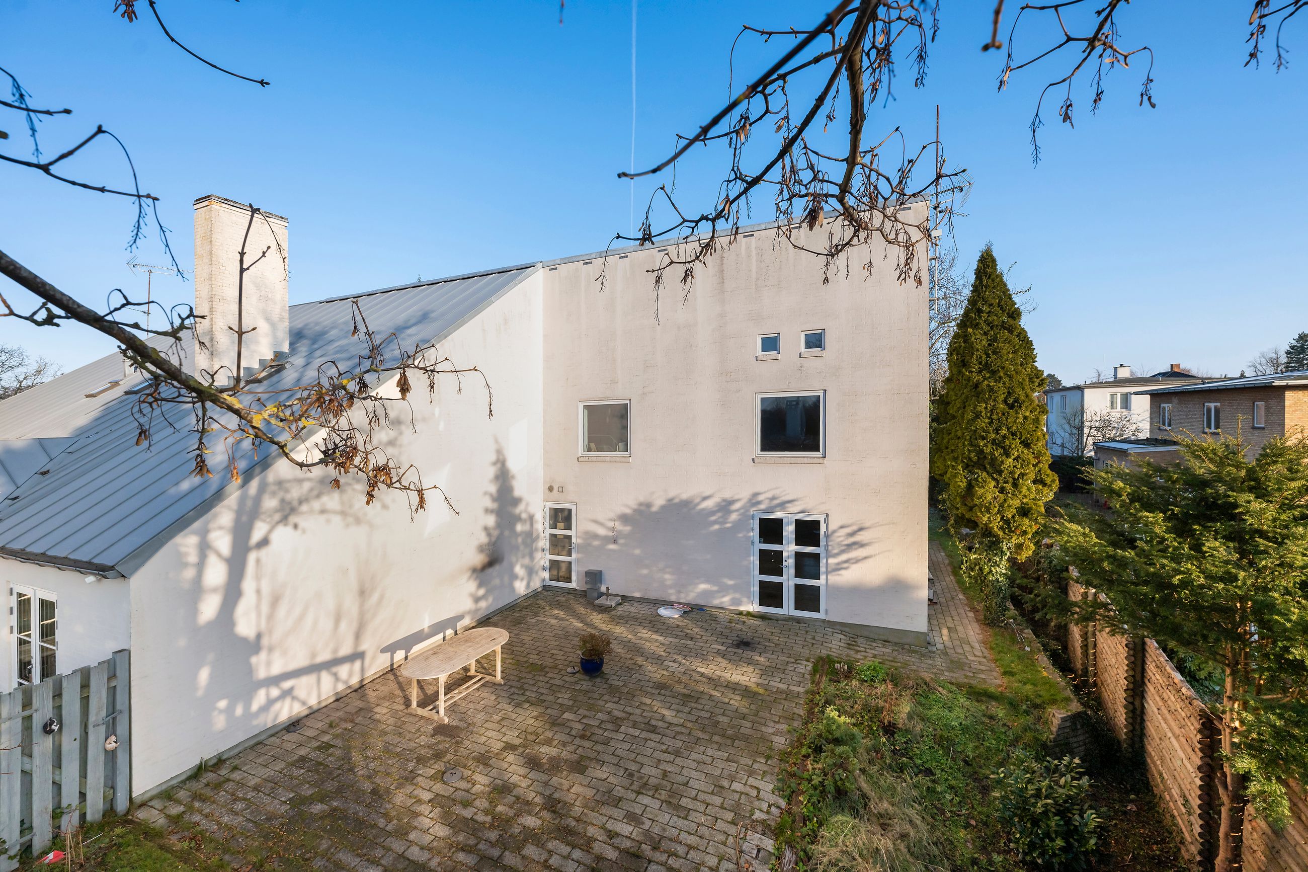 Rækkehuset på Lysagervej 21 i Vilvordevejskvarteret er fra 1989. Med 168 m2 bolig fordelt på 2 plan er det et oplagt rækkehus til familien med børn, hvor forældrene har deres afdeling, og børnene deres, så er alle glade. Med loft til kip er her usædvanligt højt til loftet med masser af lys, åbent ildsted, zinktag og det skønneste gårdmiljø med sol hele dagen. Det er et stille og roligt kvarter med mosenatur i Ellemosen og Bernstorffslot og hundepark tæt på. Matriklen er på 1.343 m2 og fælles med naborækkehuset, men opdelt i 2 selvstændige haver og terrasser.