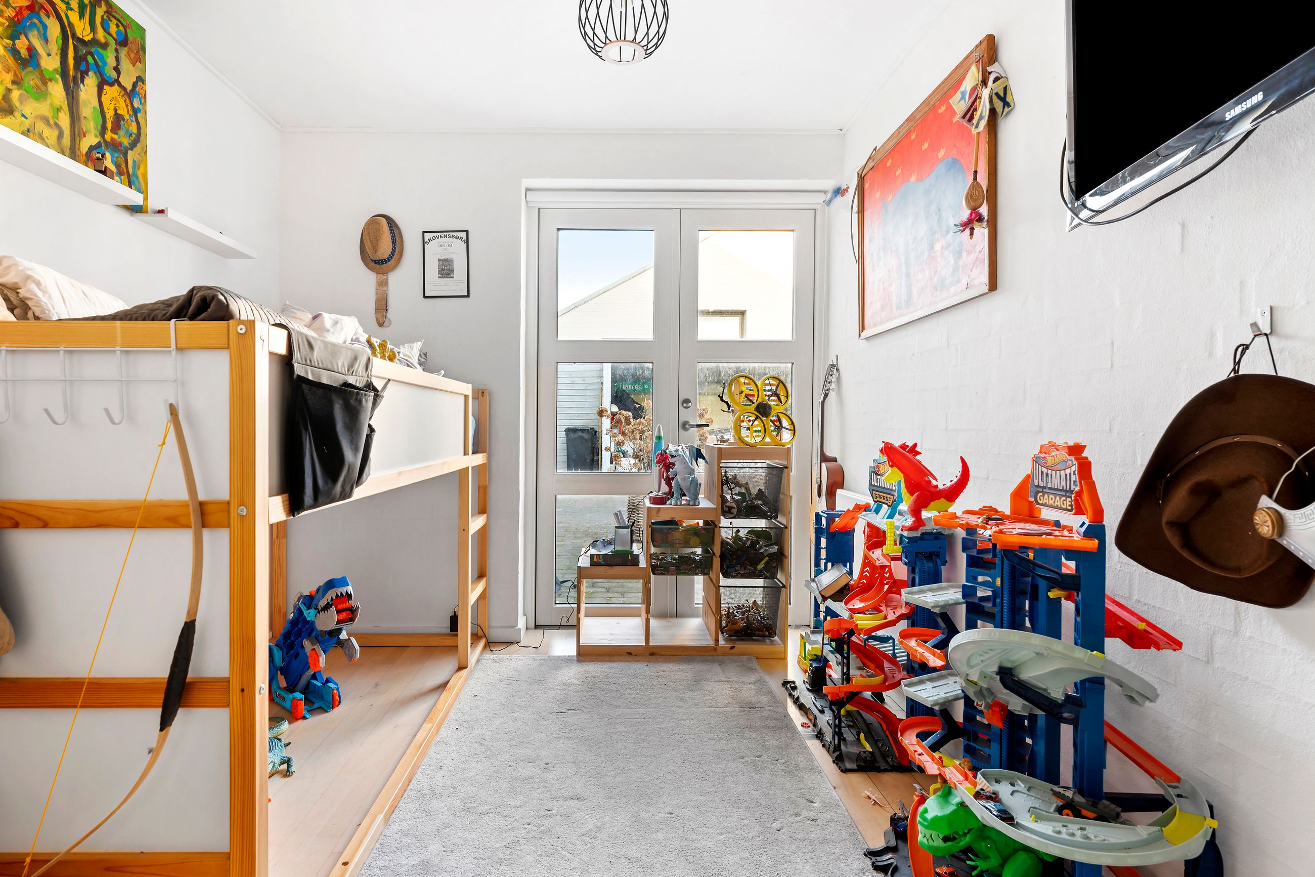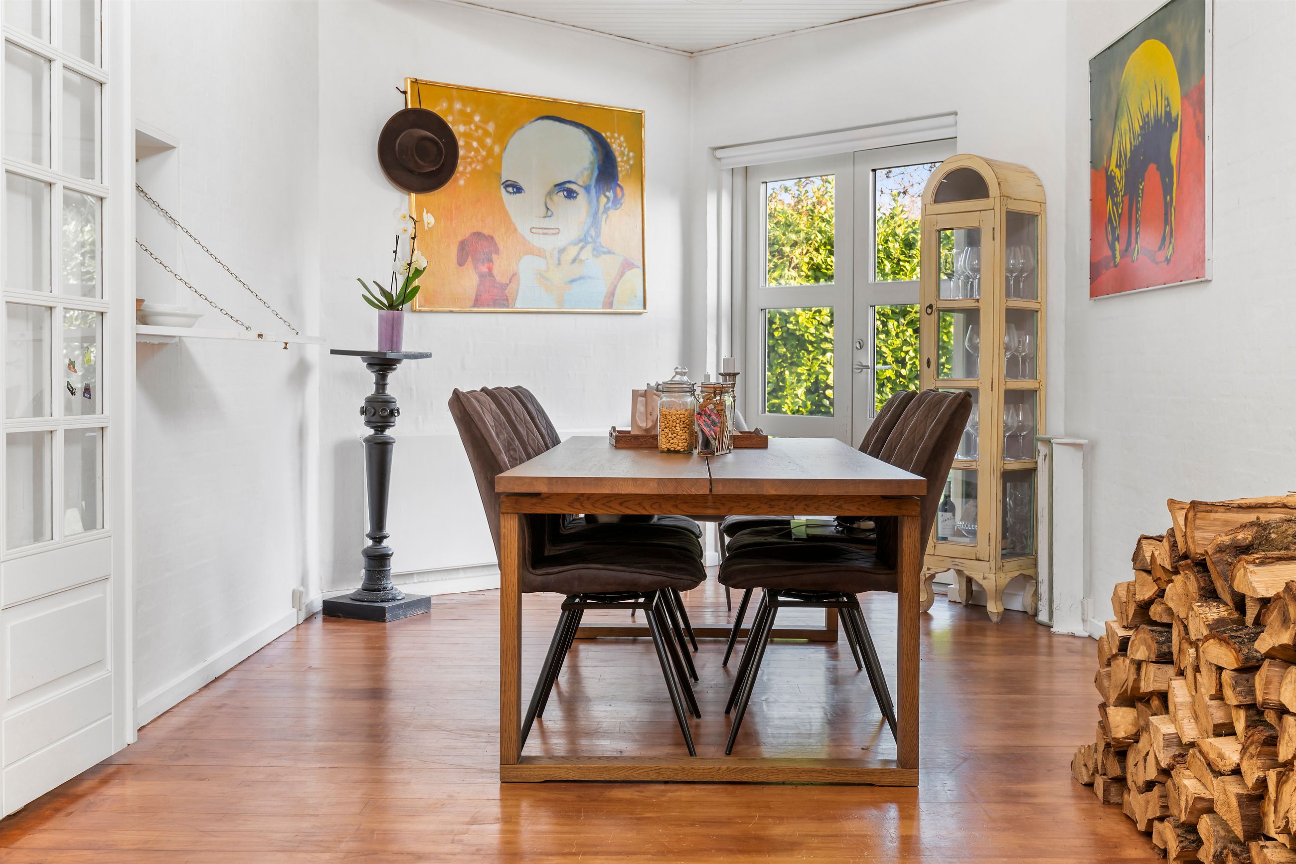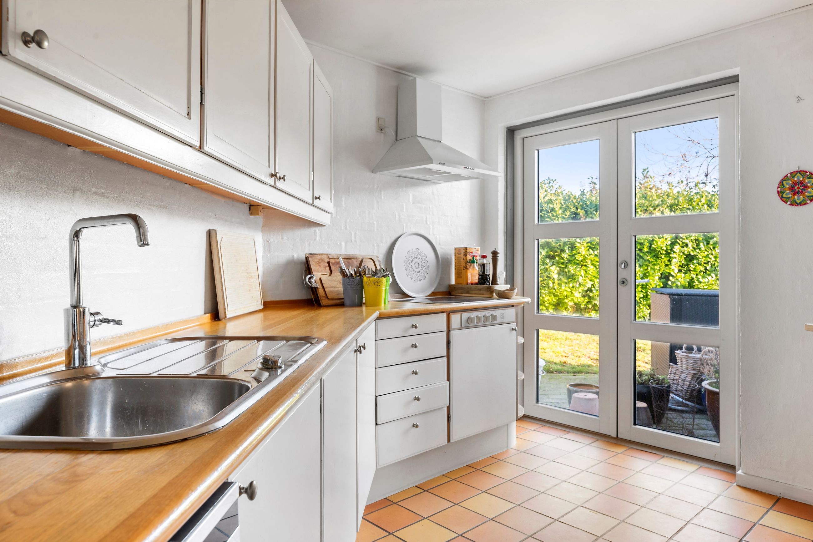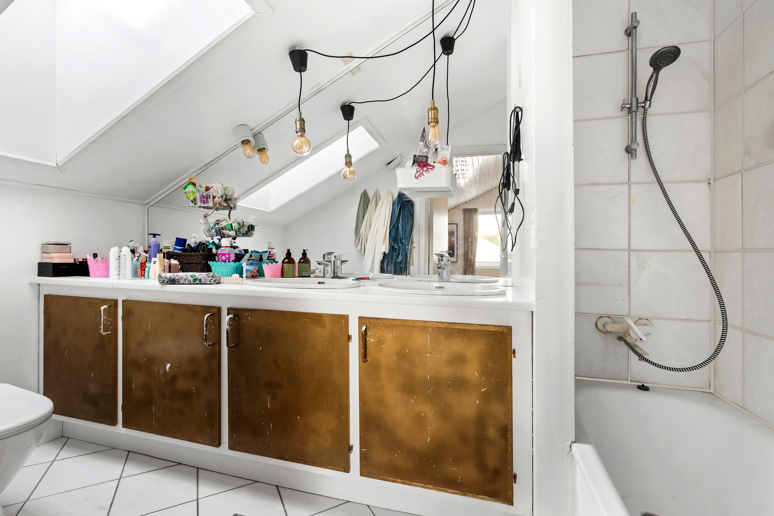 Rækkehuset på Lysagervej 21 i Vilvordevejskvarteret er fra 1989. Med 168 m2 bolig fordelt på 2 plan er det et oplagt rækkehus til familien med børn, hvor forældrene har deres afdeling, og børnene deres, så er alle glade. Med loft til kip er her usædvanligt højt til loftet med masser af lys, åbent ildsted, zinktag og det skønneste gårdmiljø med sol hele dagen. Det er et stille og roligt kvarter med mosenatur i Ellemosen og Bernstorffslot og hundepark tæt på. Matriklen er på 1.343 m2 og fælles med naborækkehuset, men opdelt i 2 selvstændige haver og terrasser.