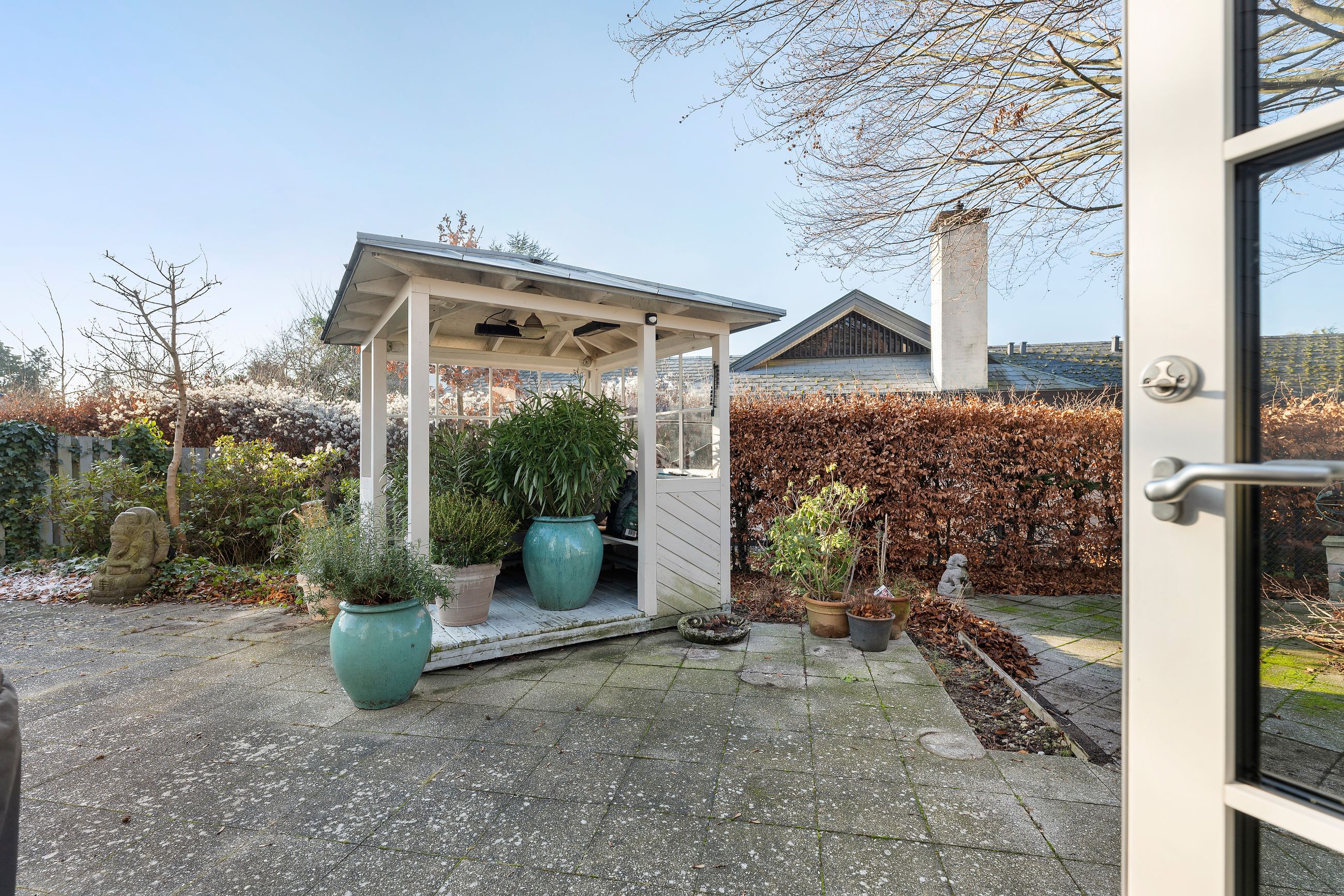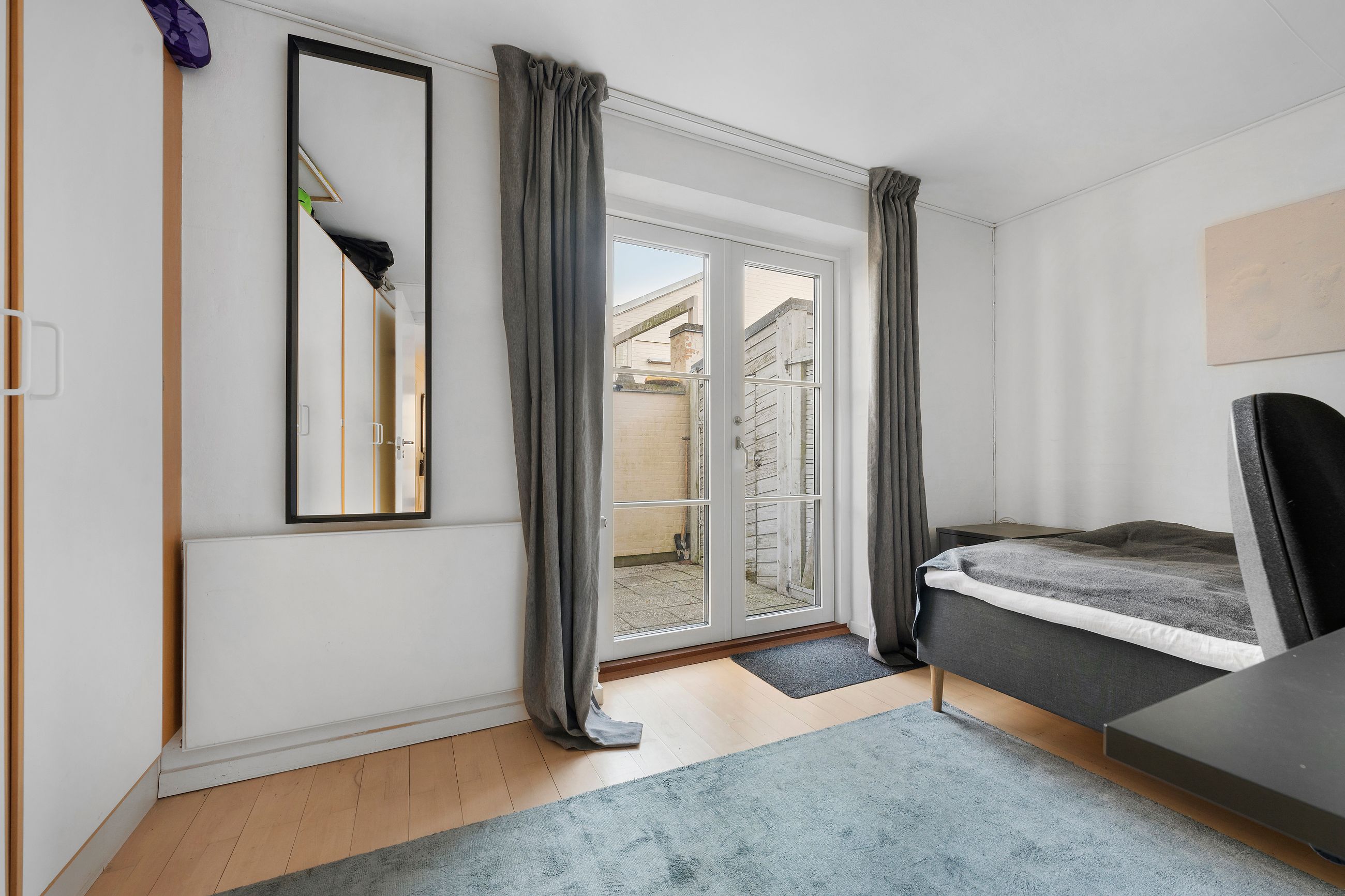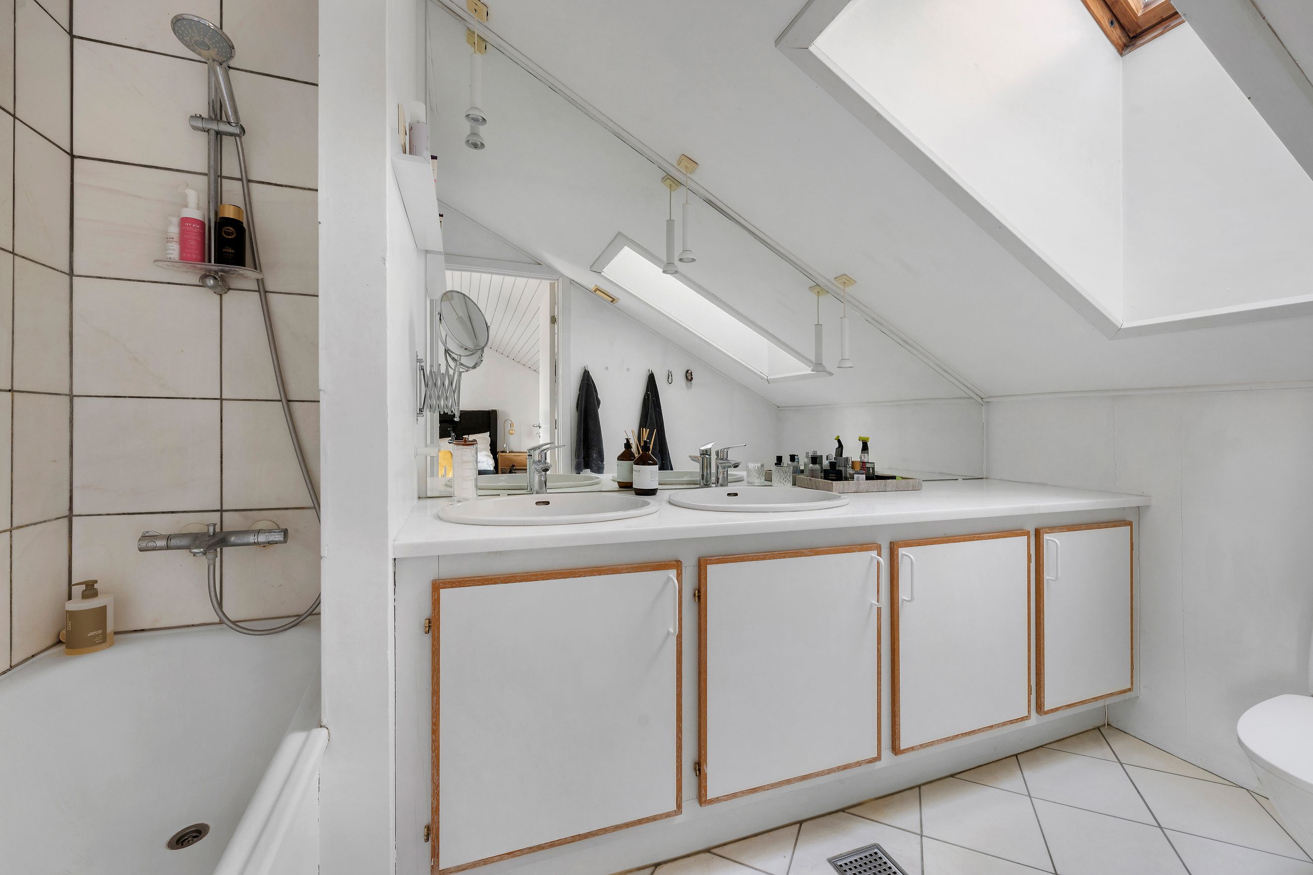 Hvis rækkehuset på Lysagervej 21 i Vilvordevejskvarteret så sig selv i spejlet som i brødrenes Grimms eventyr Snehvide, ville det se sig selv bare spejlvendt. Selvfølgelig. Men i virkeligheden ser det rækkehuset på Lysagervej 23, altså naboen, for de 2 rækkehuse er nemlig spejlvendt identiske. De er begge fra 1989. Med 168 m2 bolig fordelt på 2 plan er det et oplagt rækkehus til familien med børn, hvor forældrene har deres afdeling, og børnene deres. Med loft til kip er her usædvanligt højt til loftet med masser af lys, åbent ildsted, zinktag og det skønneste gårdmiljø med pavillon og sol hele dagen. Her er ingen trafik, det er et stille og roligt kvarter med mosenatur i Ellemosen og det historiske Bernstorffslot med hundepark tæt på. Matriklen er på 1.343 m2 og fælles med naborækkehuset, men opdelt i 2 selvstændige haver og terrasser.