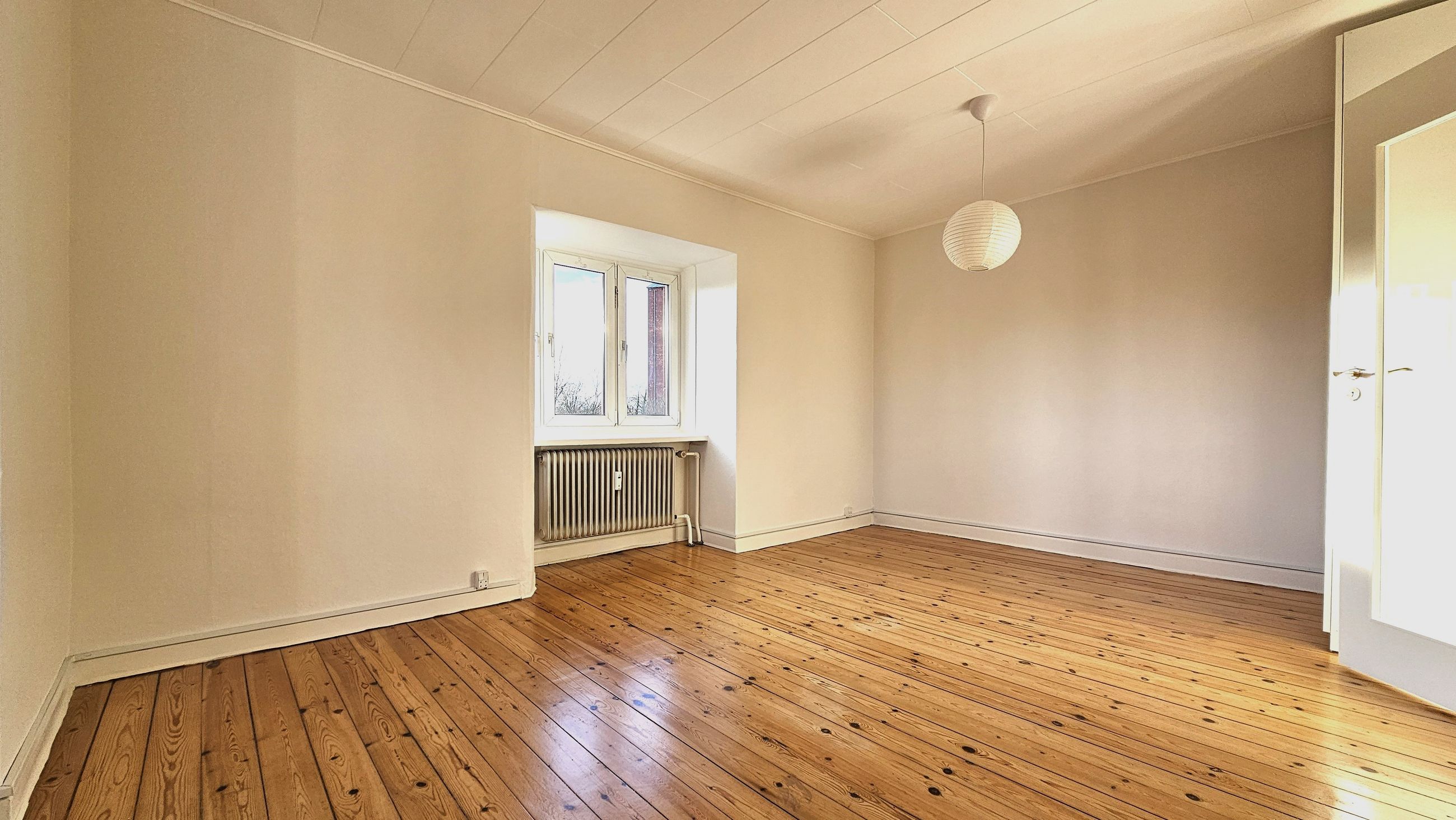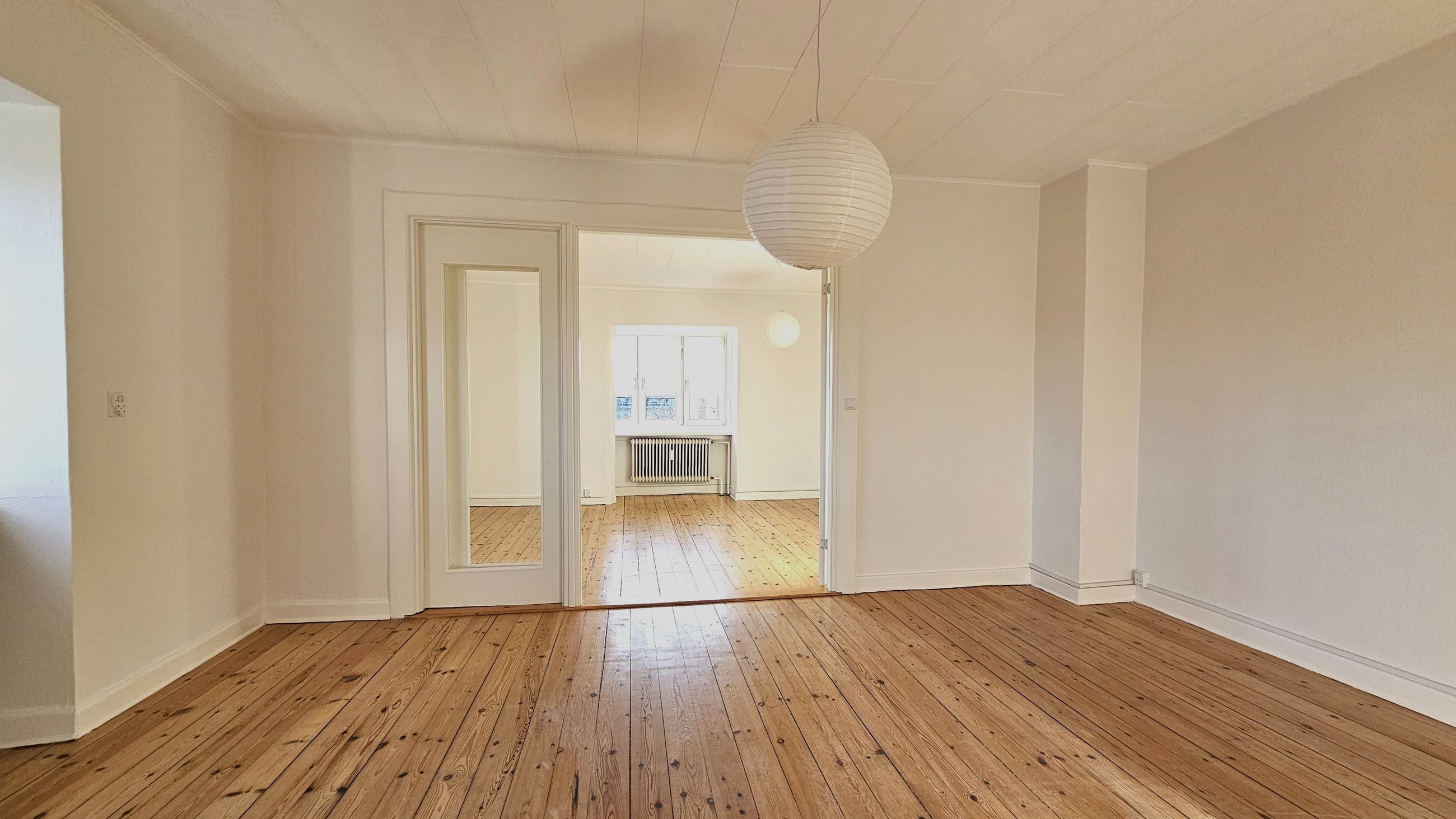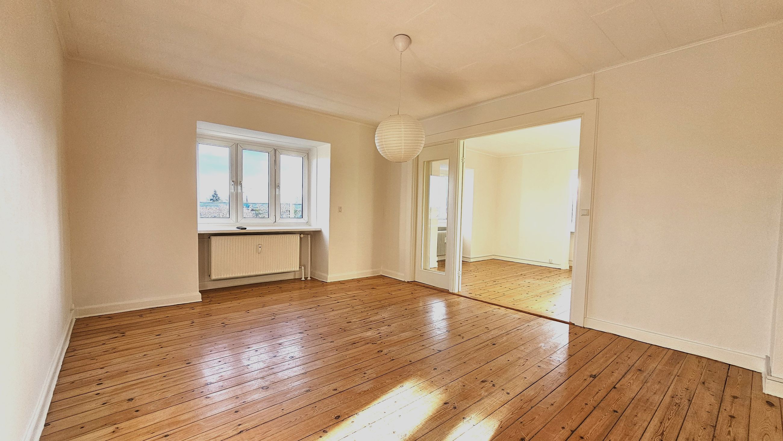 Lejligheden indeholder et helt nyt køkken med gulvvarme og nyt badeværelse, en stor stue samt to soveværelser.