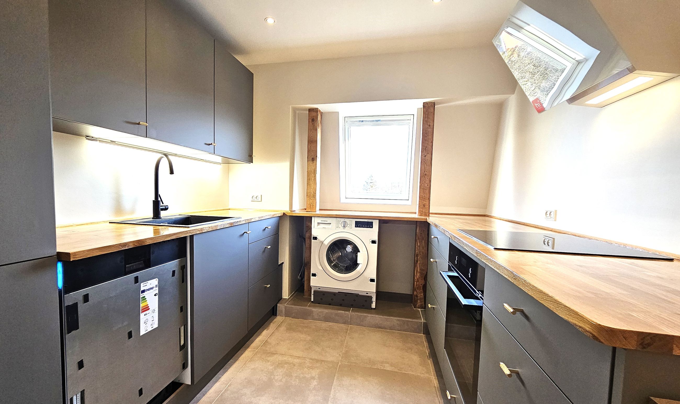 The apartment contains a brand new kitchen with underfloor heating and a new bathroom, a large living room and two bedrooms.