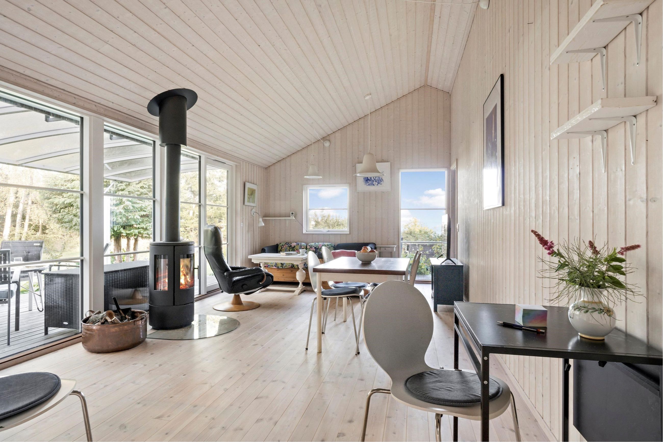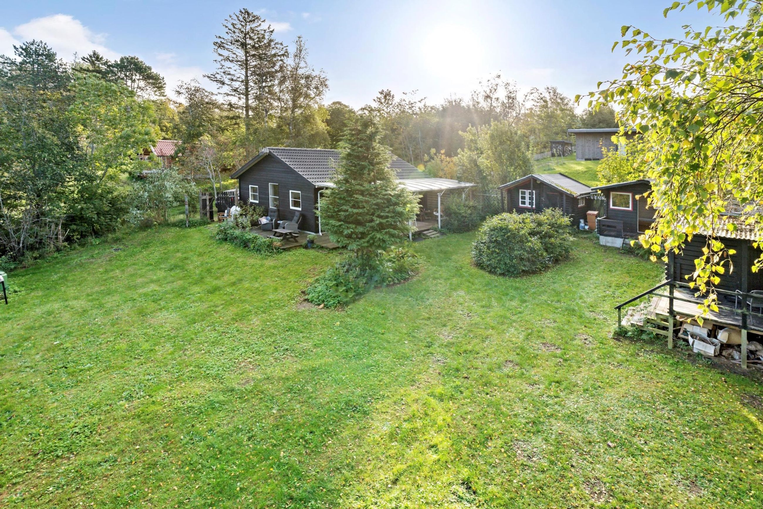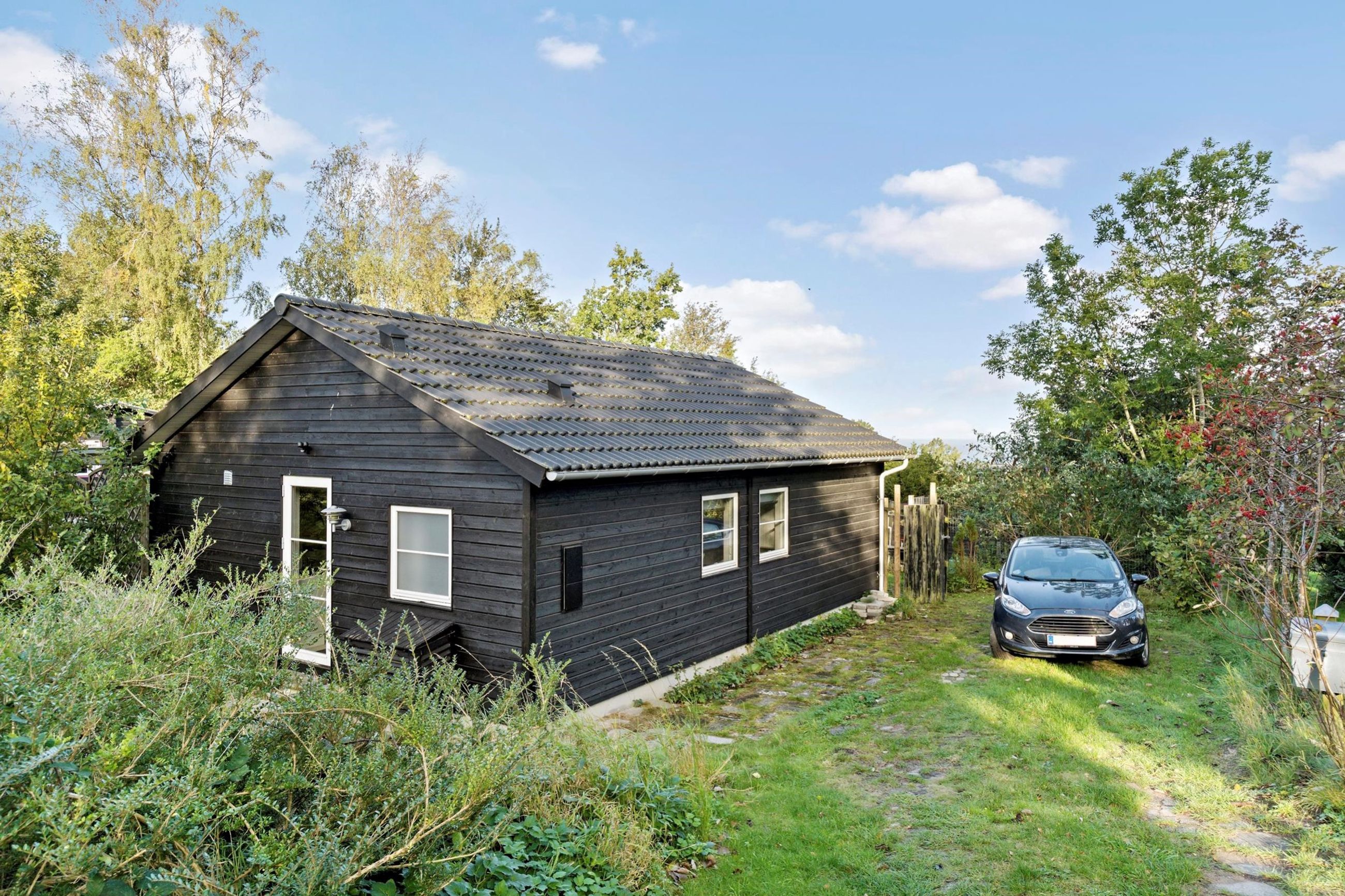 Ender et vejnavn på bakken i Odsherred, ligger det i Veddinge Bakker, det kan ikke være anderledes. Det sorte træhussommerhus på Nøddebakken 9 er bygget i 2016, ja, over 100 år efter nybyggerne byggede deres sommerhuse ind i bakkerne. Det er på 59 m2 med flere annekser og har, selvfølgelig, en mageløs udsigt til vandet i Kattegat. Det er her, Jorden drejer Solen ned. Grunden er på 1.317 m2 med en have, der stort set passer sig selv. Huset ligger højt i bakkerne. Turen ned ad bakkerne til en af Sjællands bedste badestrande tager 10 minutter, men regn med 15 minutter til vejen hjem. Veddinge Bakker er en del af de UNESCO-bevarede områder i Odsherred med gårdbutikker og boder. Bare en time fra København.