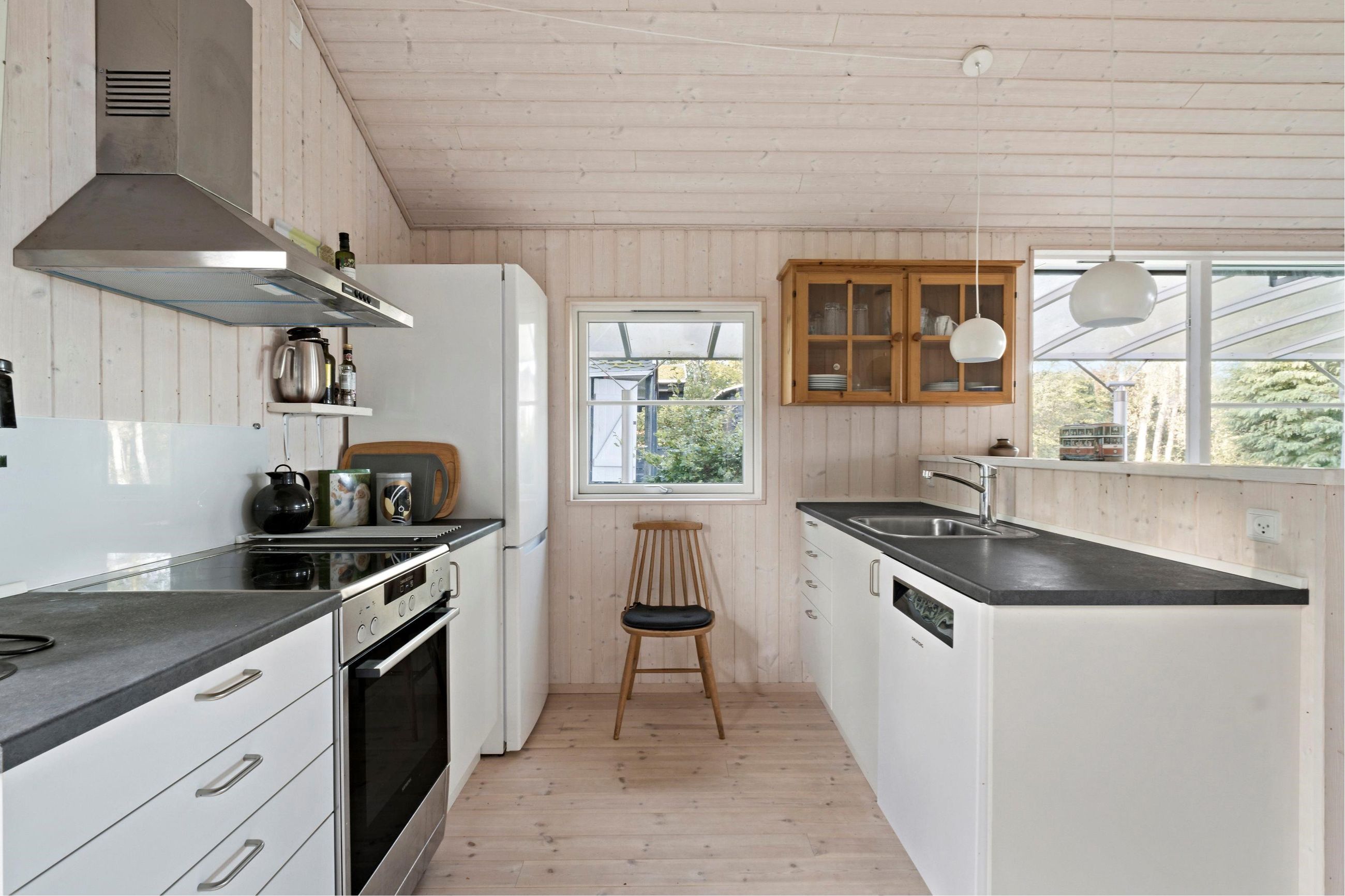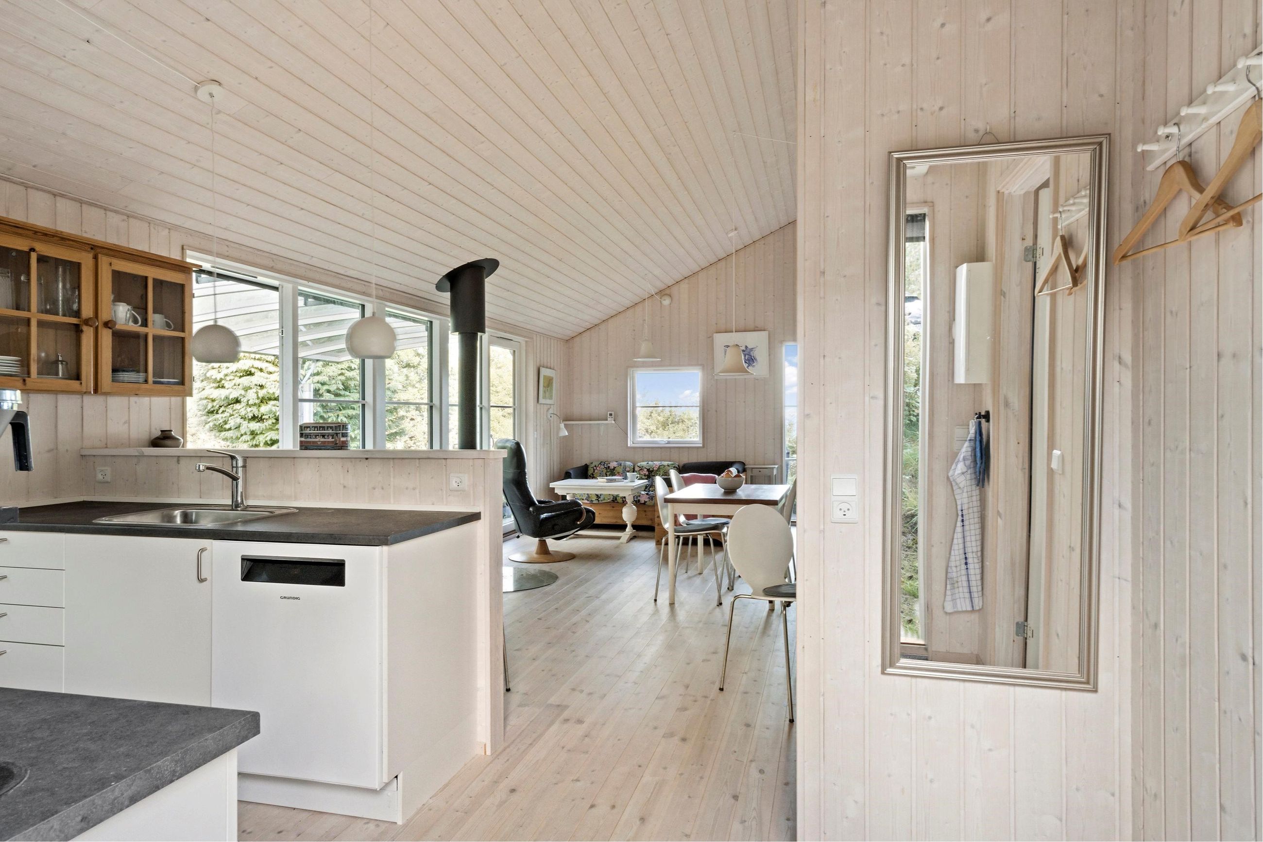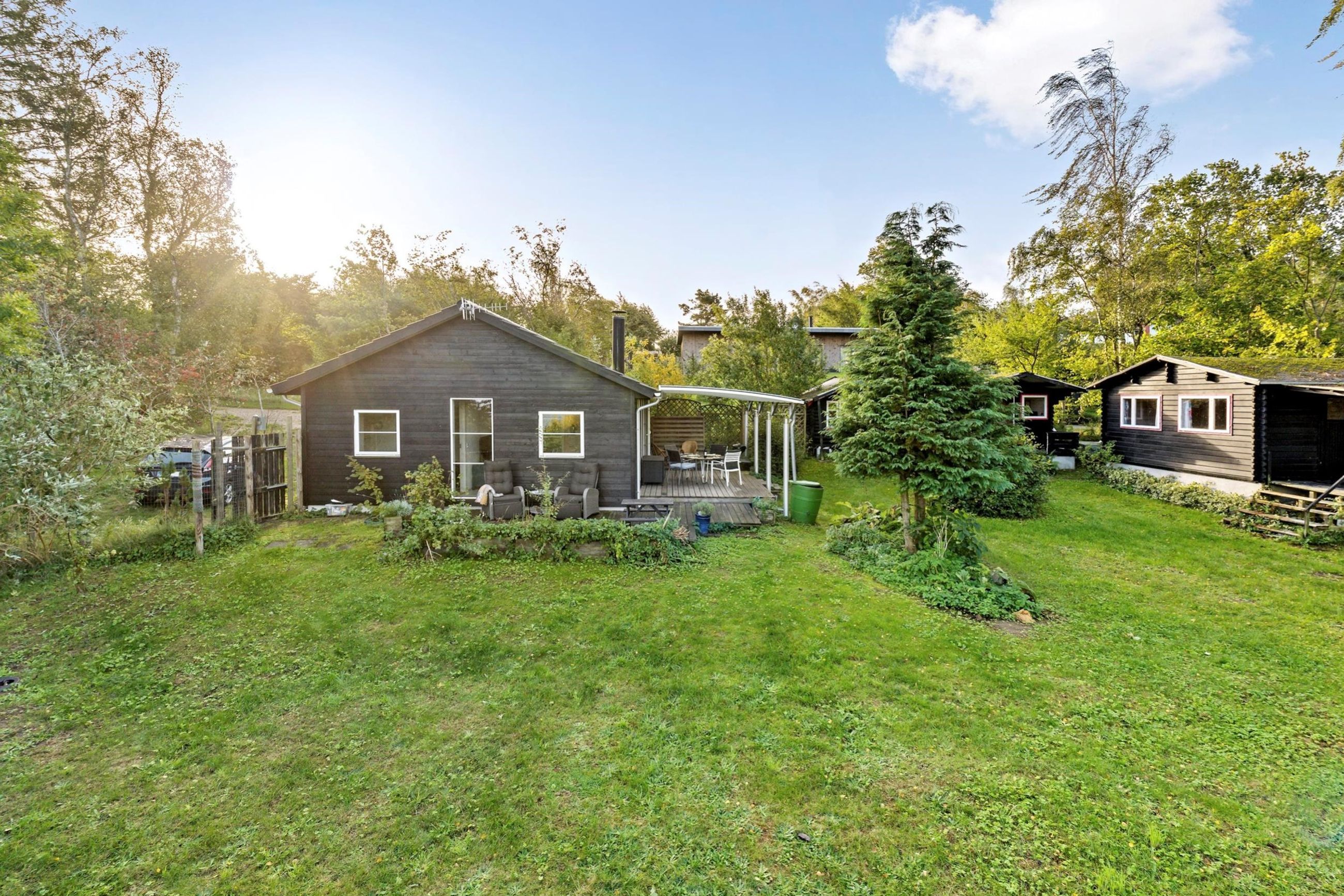 Ender et vejnavn på bakken i Odsherred, ligger det i Veddinge Bakker, det kan ikke være anderledes. Det sorte træhussommerhus på Nøddebakken 9 er bygget i 2016, ja, over 100 år efter nybyggerne byggede deres sommerhuse ind i bakkerne. Det er på 59 m2 med flere annekser og har, selvfølgelig, en mageløs udsigt til vandet i Kattegat. Det er her, Jorden drejer Solen ned. Grunden er på 1.317 m2 med en have, der stort set passer sig selv. Huset ligger højt i bakkerne. Turen ned ad bakkerne til en af Sjællands bedste badestrande tager 10 minutter, men regn med 15 minutter til vejen hjem. Veddinge Bakker er en del af de UNESCO-bevarede områder i Odsherred med gårdbutikker og boder. Bare en time fra København.