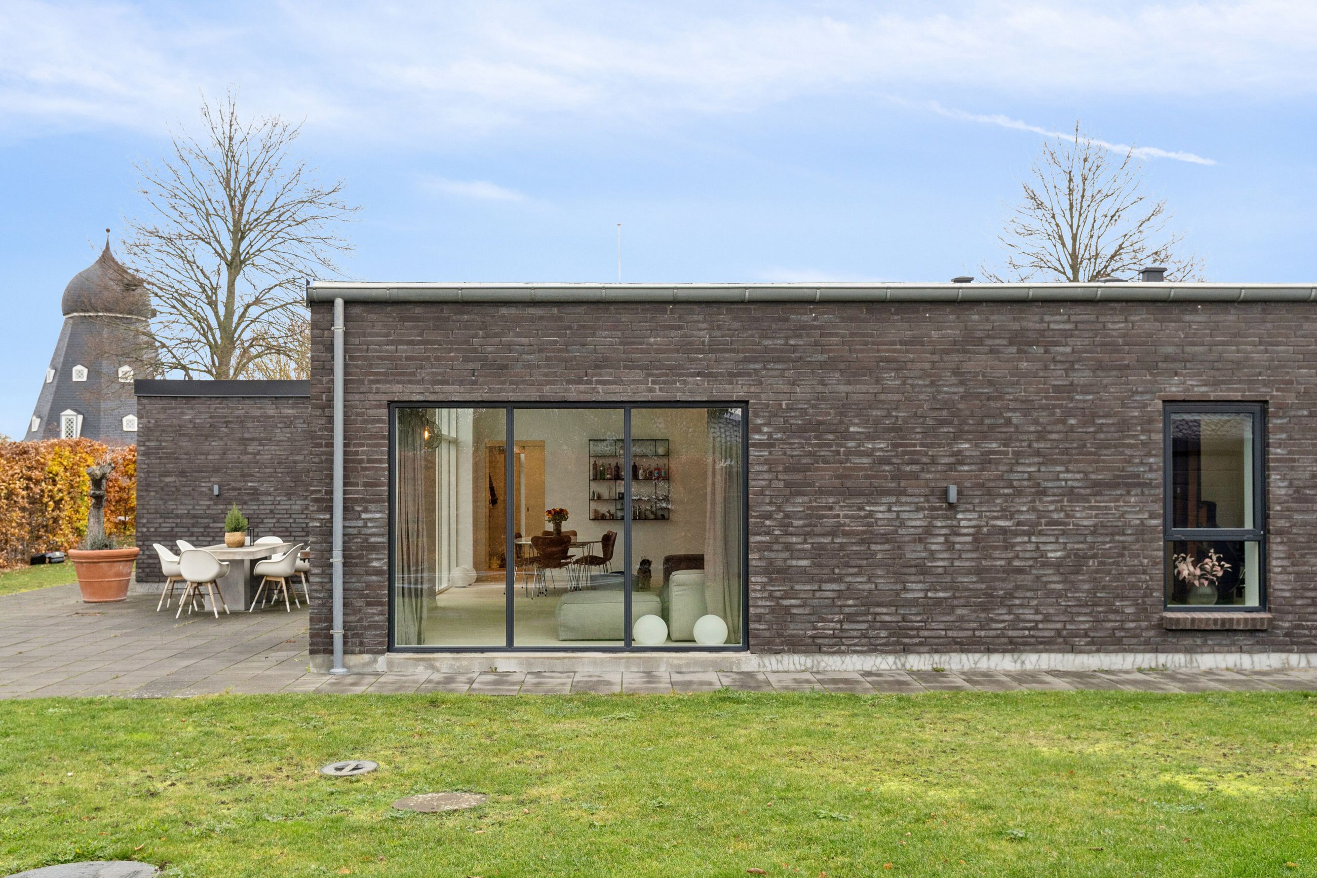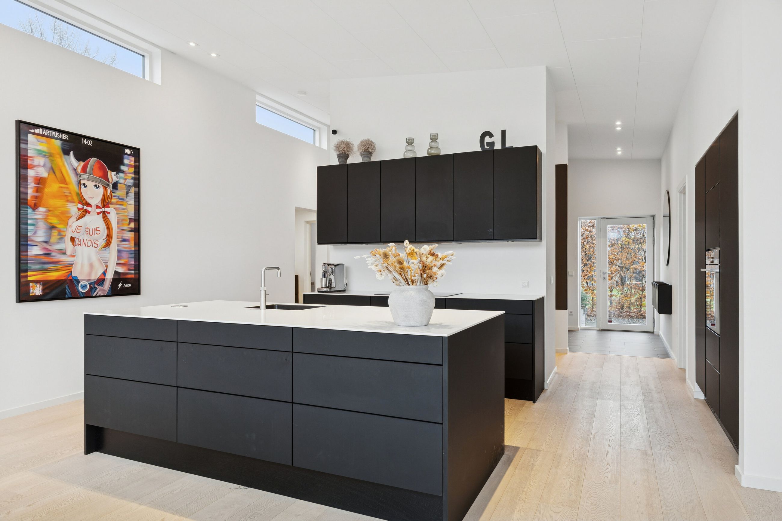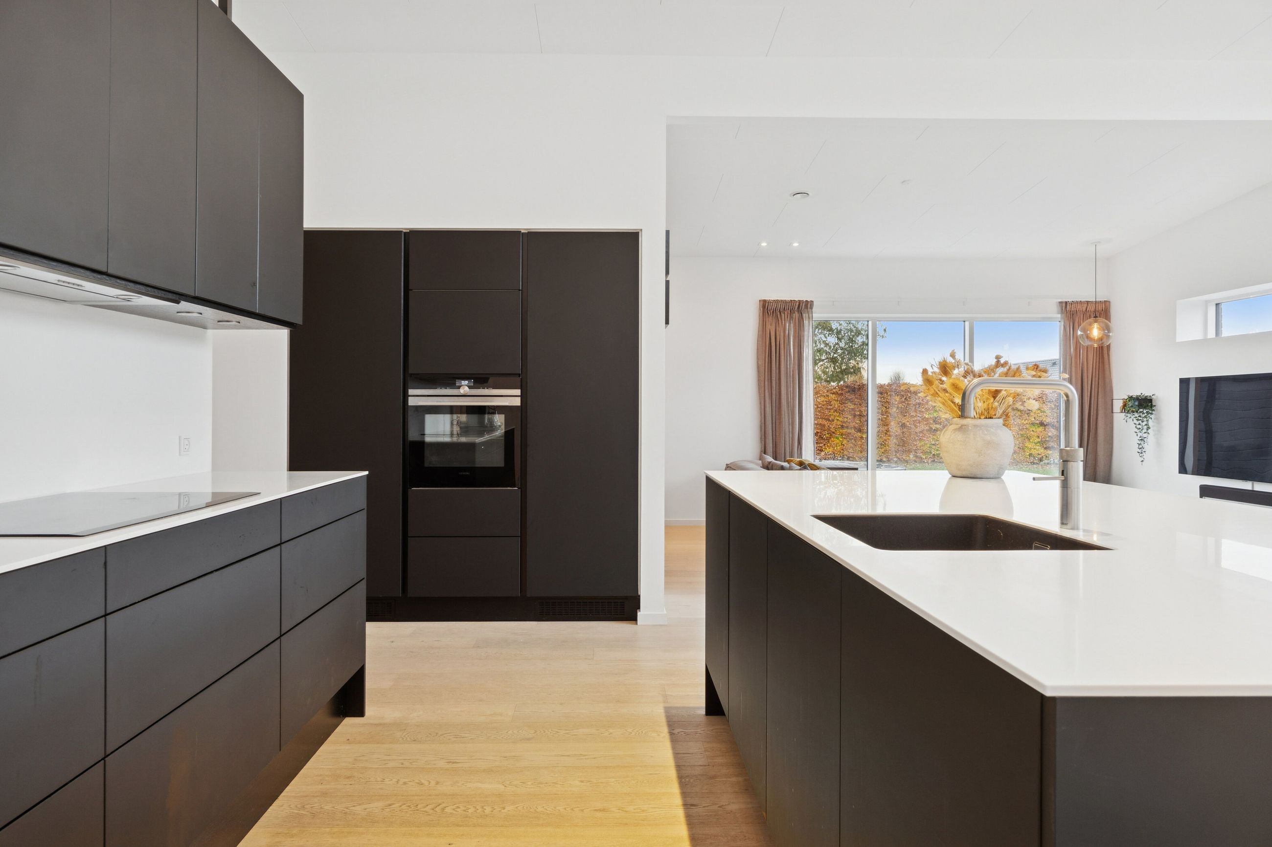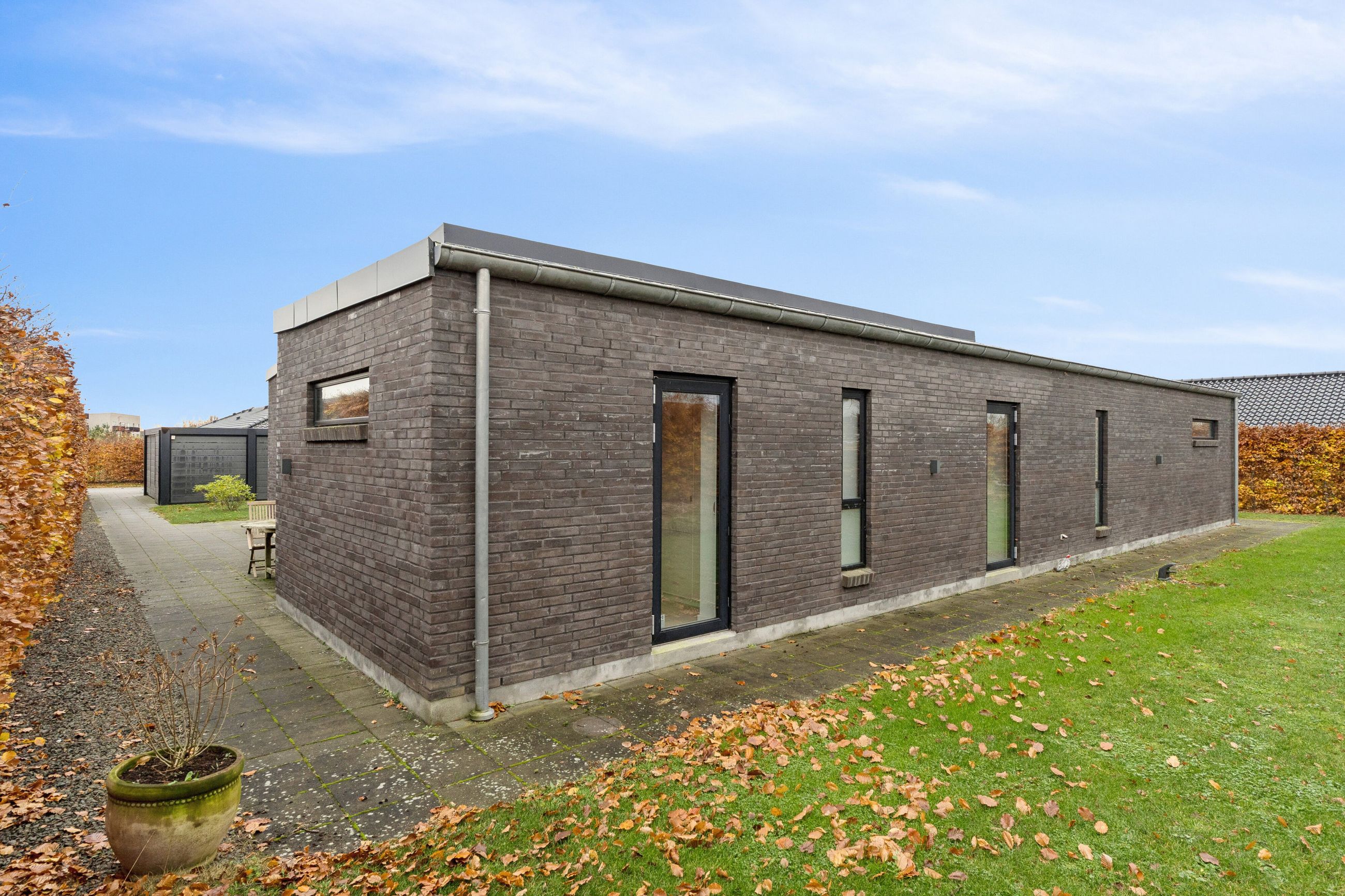Huset er bygget for 8 år siden og står klar med moderne, nem luksus. Den slags med motoriserede skuffer, smarte systemer til at programmere lyset, og kvalitet i materialerne. Alt er i orden og designet til det bekvemme, afslappede liv. Med kæmpe carport og en professionelt anlagt have, der med vilje er minimalistisk, så der ikke er havearbejde. Gennemtænkt til de, der hellere hygger med drinks på terrassen, end luger ukrudt. Afdelingerne til børn og voksne skaber privatliv, og køkkenalrummet evner at samle hele familien, inklusive teenageren der ellers hellere ser på TikTok.