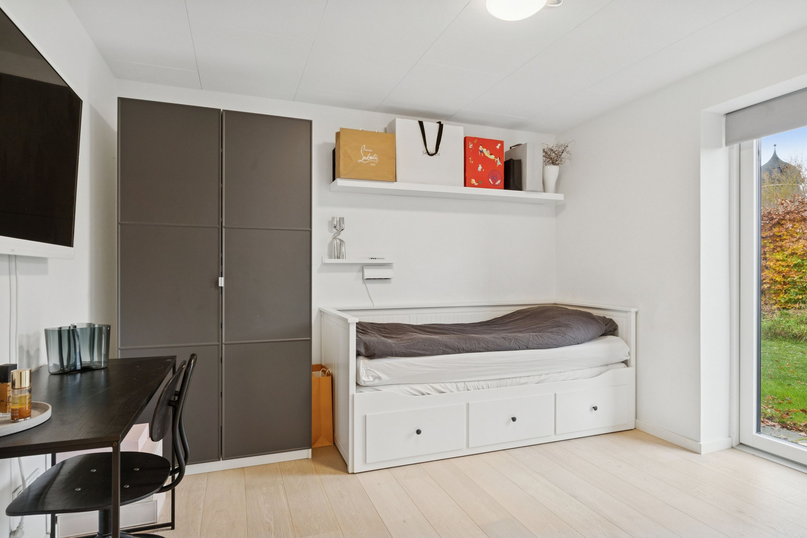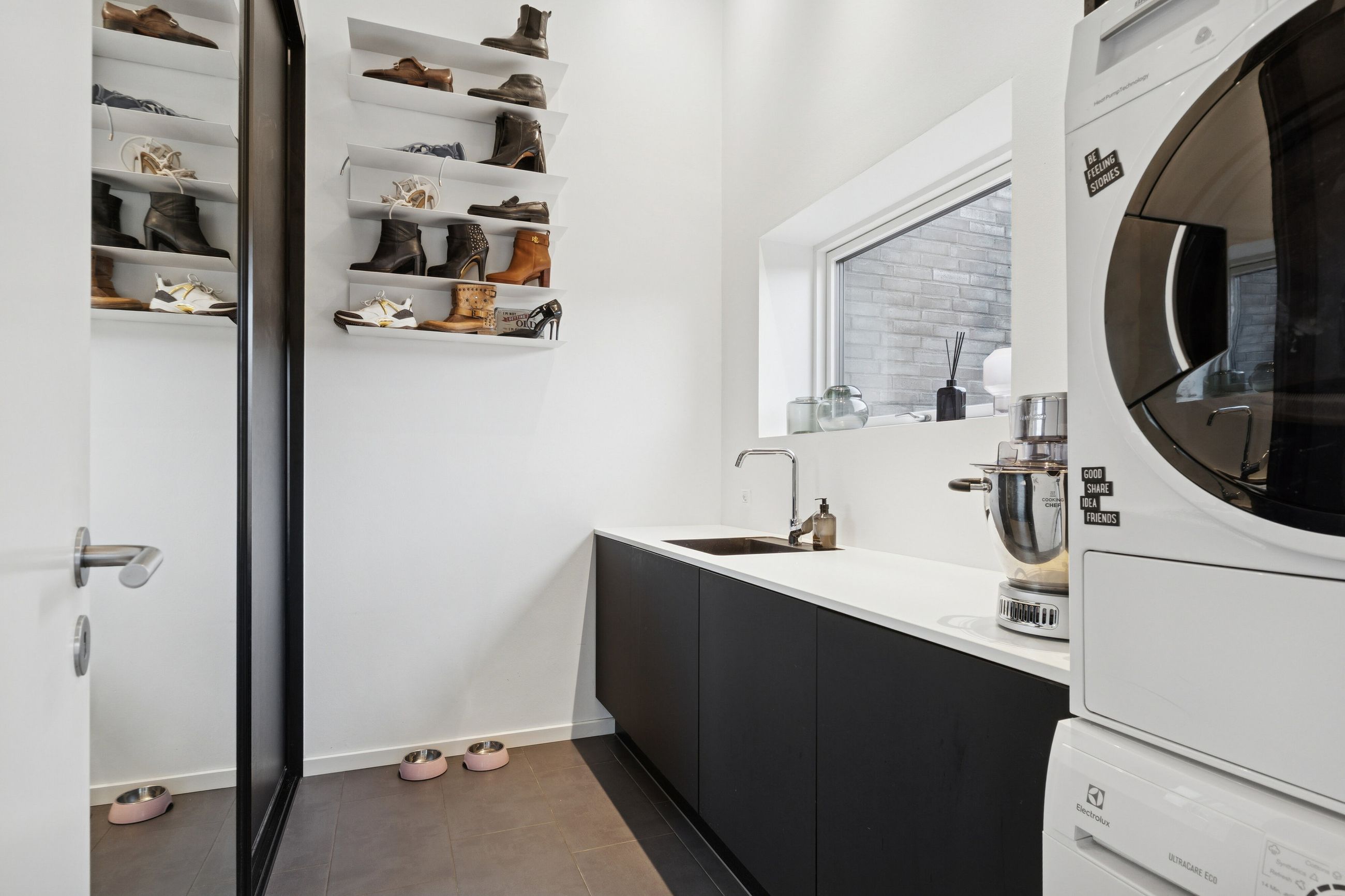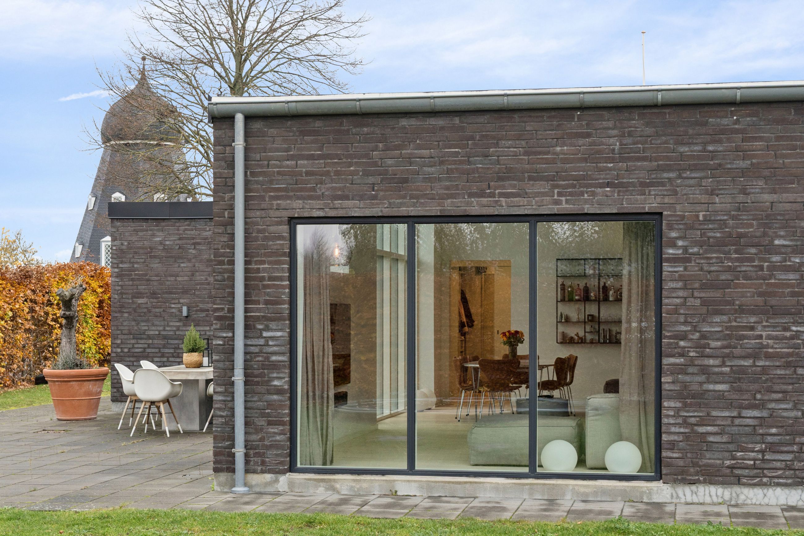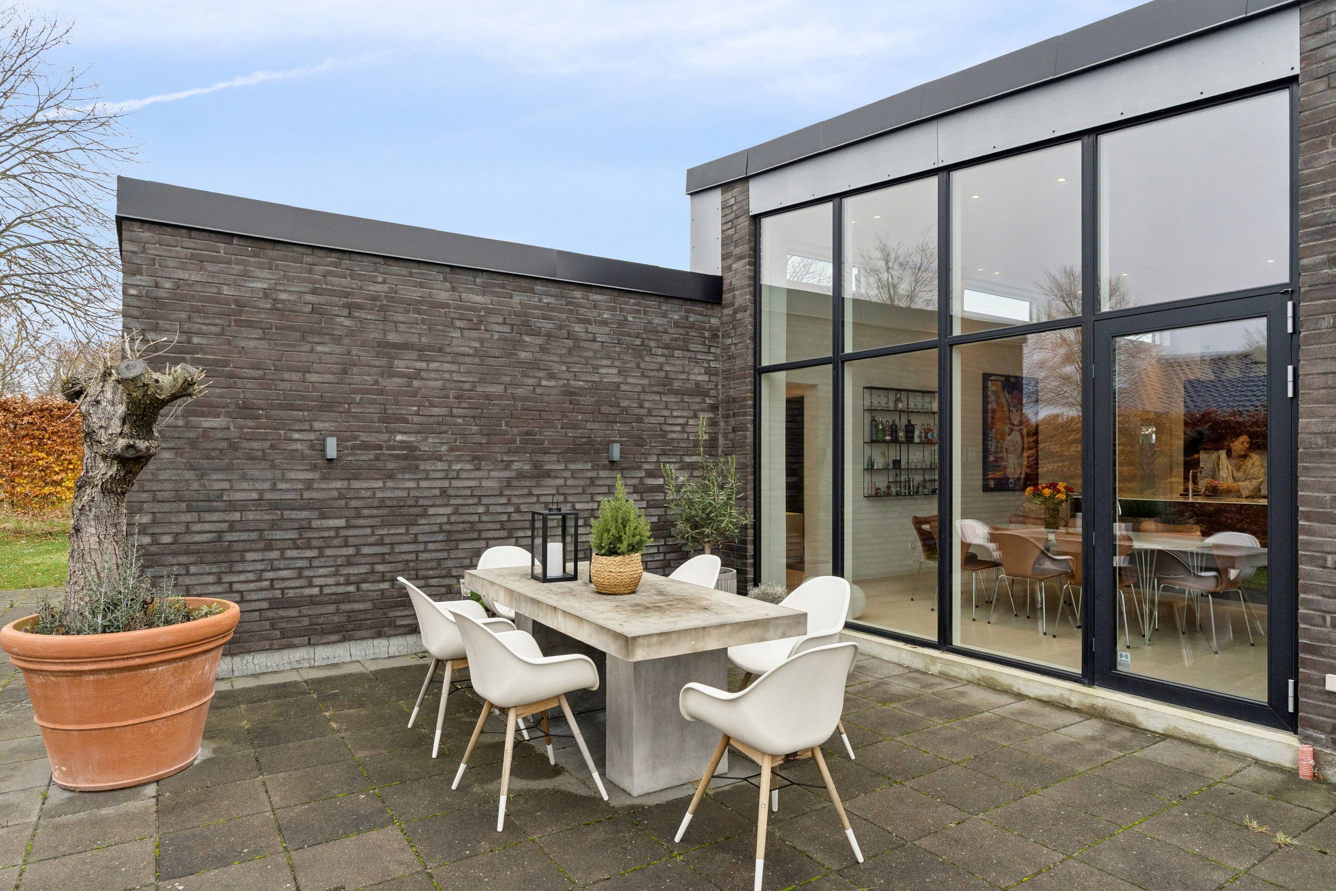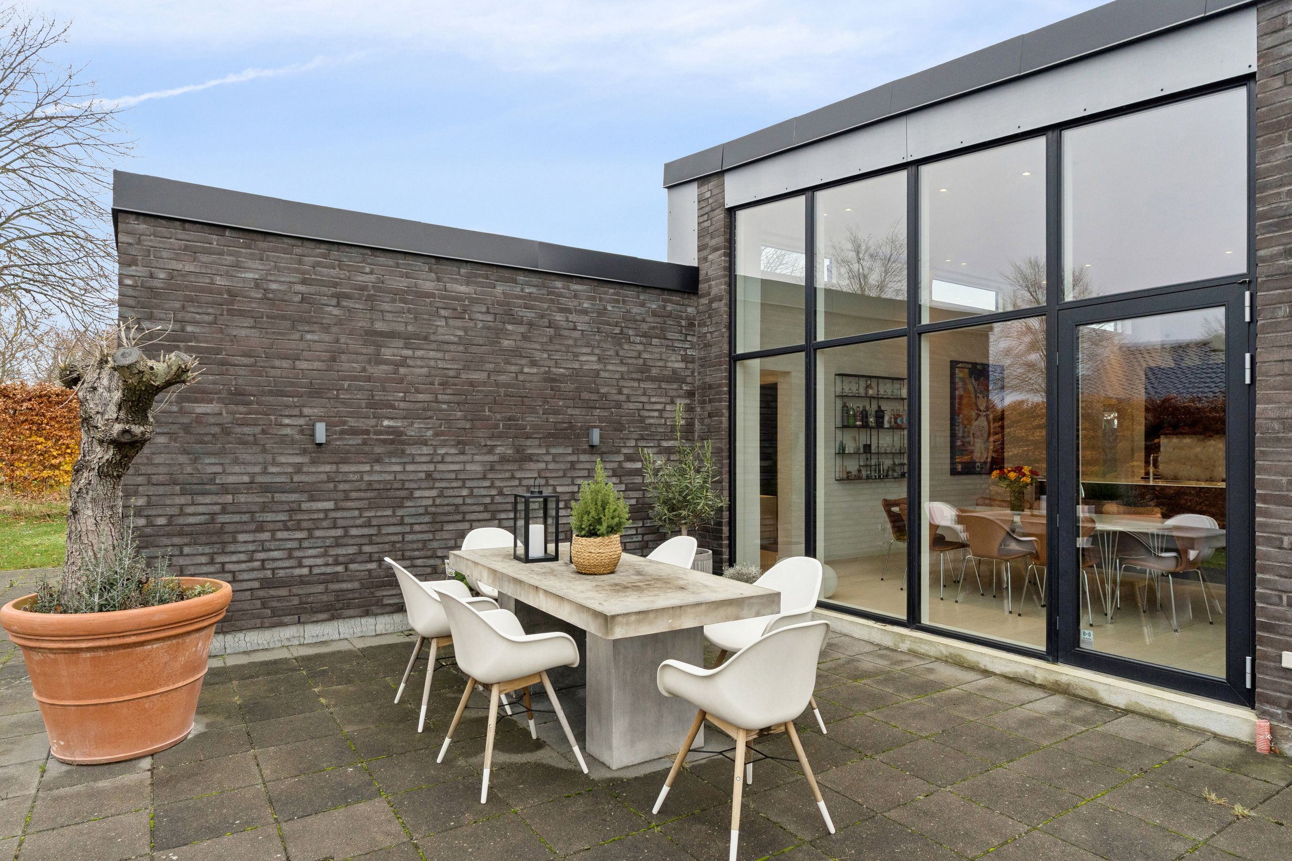 Huset er bygget for 8 år siden og står klar med moderne, nem luksus. Den slags med motoriserede skuffer, smarte systemer til at programmere lyset, og kvalitet i materialerne. Alt er i orden og designet til det bekvemme, afslappede liv. Med kæmpe carport og en professionelt anlagt have, der med vilje er minimalistisk, så der ikke er havearbejde. Gennemtænkt til de, der hellere hygger med drinks på terrassen, end luger ukrudt. Afdelingerne til børn og voksne skaber privatliv, og køkkenalrummet evner at samle hele familien, inklusive teenageren der ellers hellere ser på TikTok.