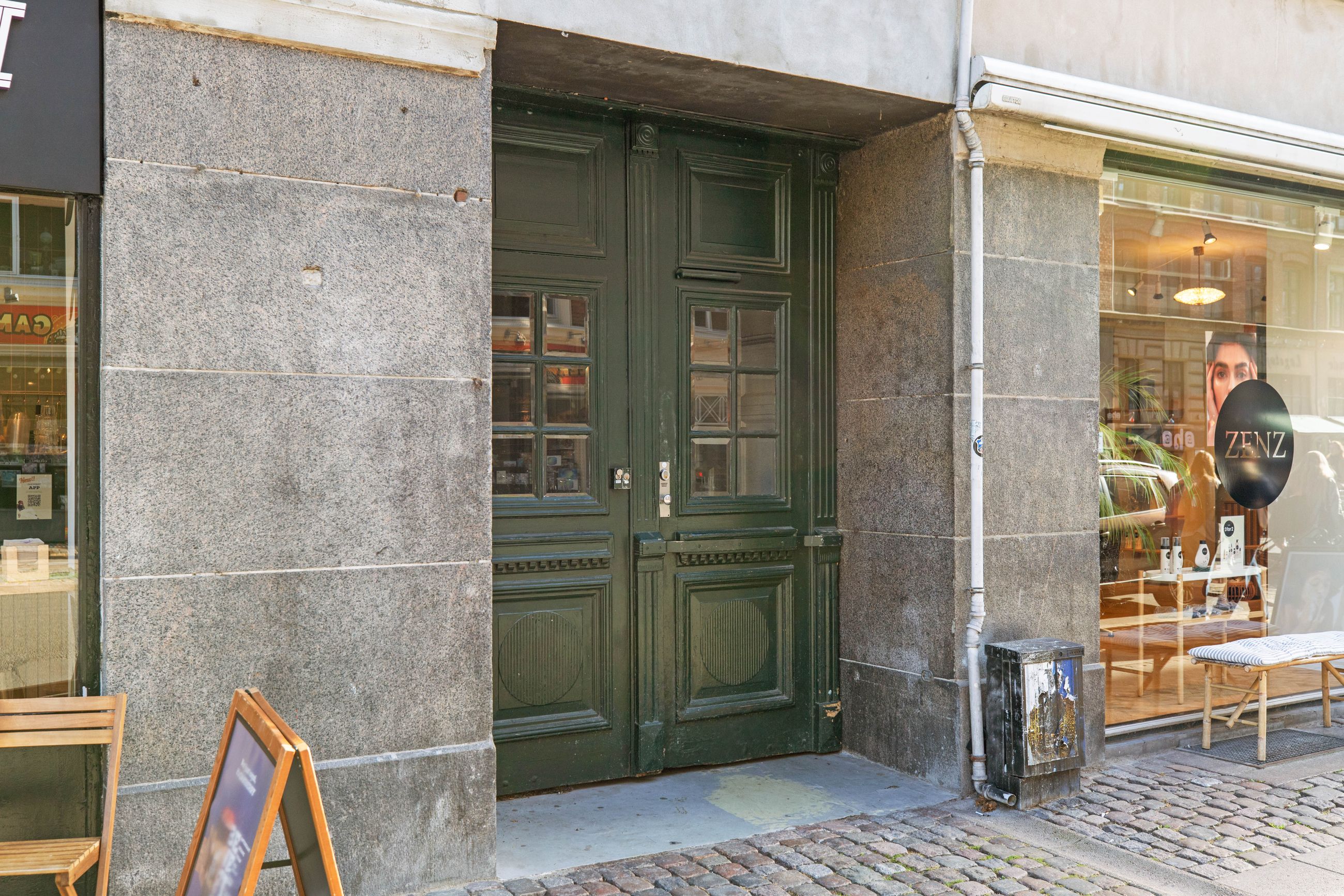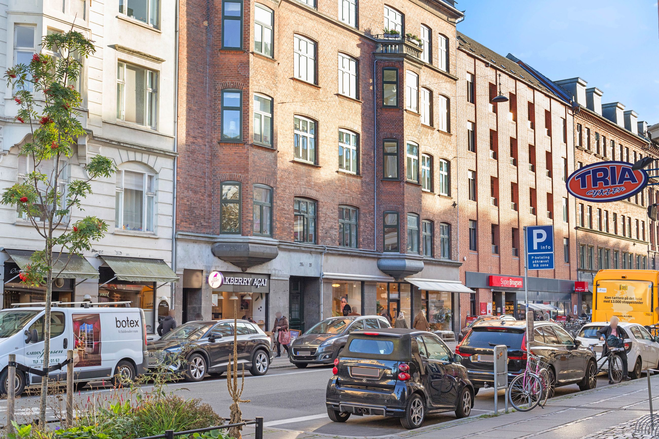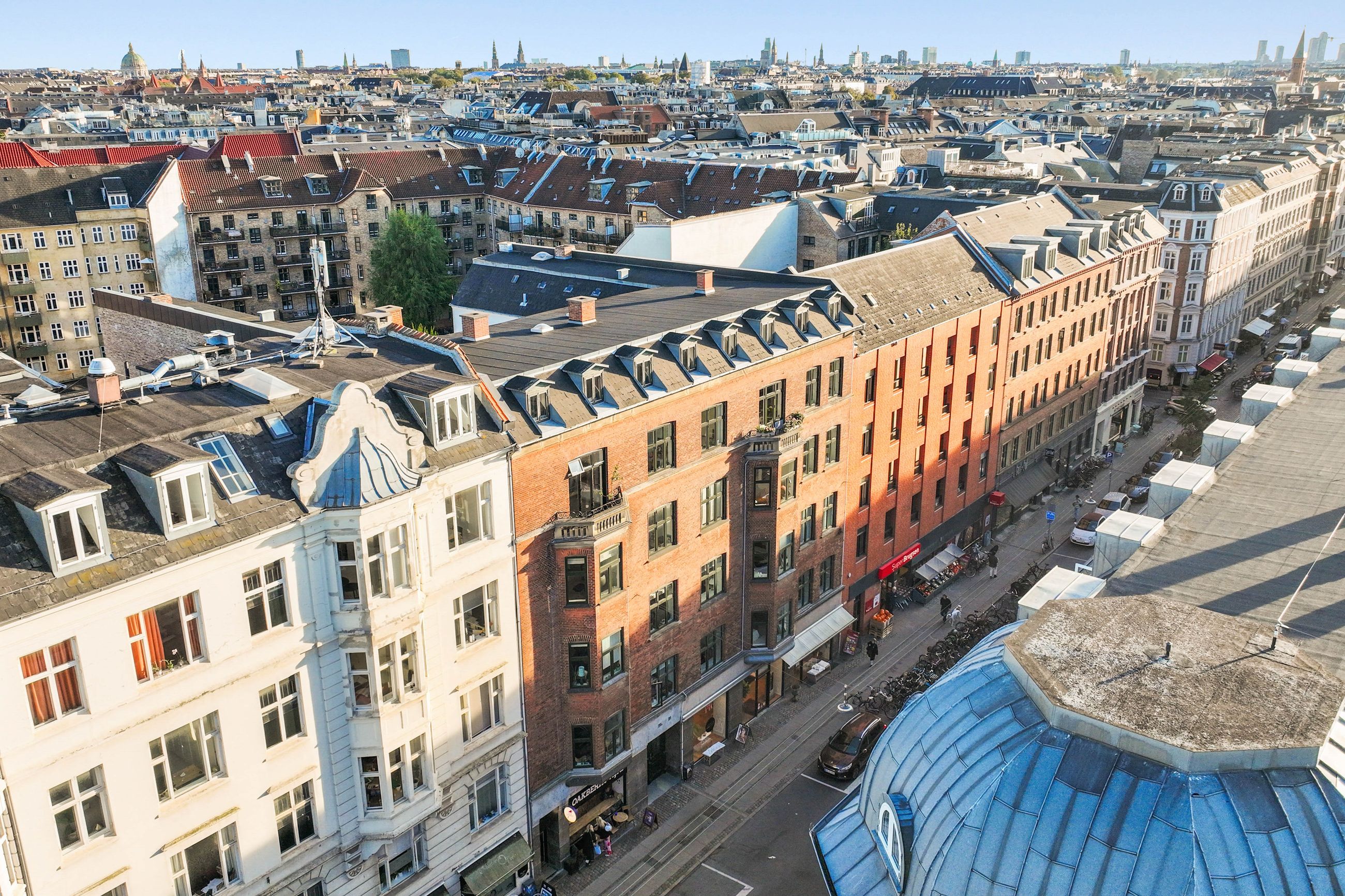Beliggenheden i København bliver ikke meget bedre. Metro lige om hjørnet, fra Trianglen ligger ejendommen et par hundrede meter nede ad Nordre Frihavnsgade, altså i den rolige ende med det aktive og interessante butiks- og caféliv. Søerne og Fælledparken ligger tæt på. Det samme gør Bopa Plads, Hjertepladsen og markedet på Sankt Jakobs Plads. Østerbro er i dag kvarteret med de bedste restauranter og caféer. Her er parisiske pladser forenet med landsbyens kultur med samvær og nærvær. Og så er det her, nogle af de store og bedste lejligheder i København ligger. Resten af København er tæt på. Det gælder kulturen med gallerierne, balletten i Det Kongelige Teater, skuespillet i Skuespilhuset, de grønne væresteder som Sankt Annæ Plads og Kongens Have.