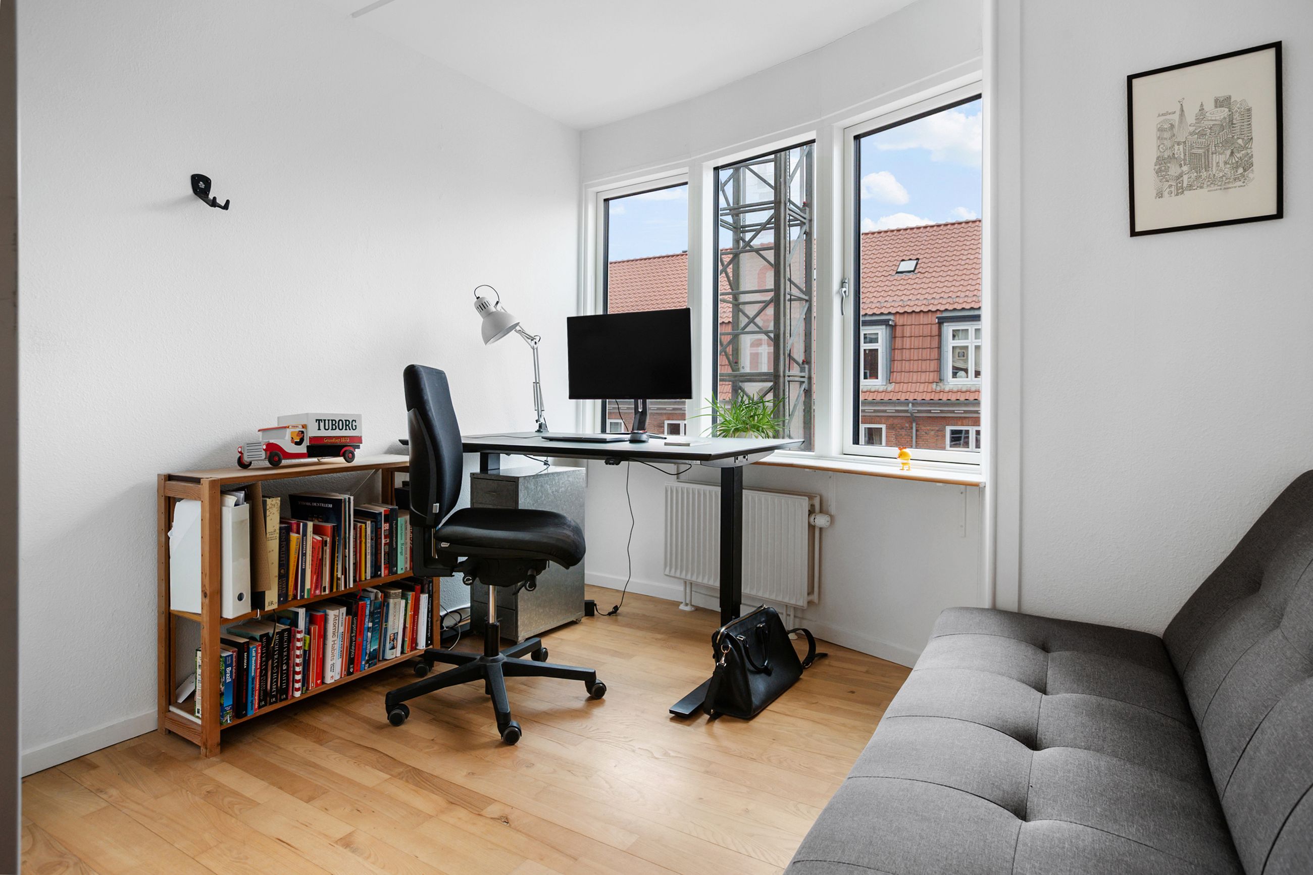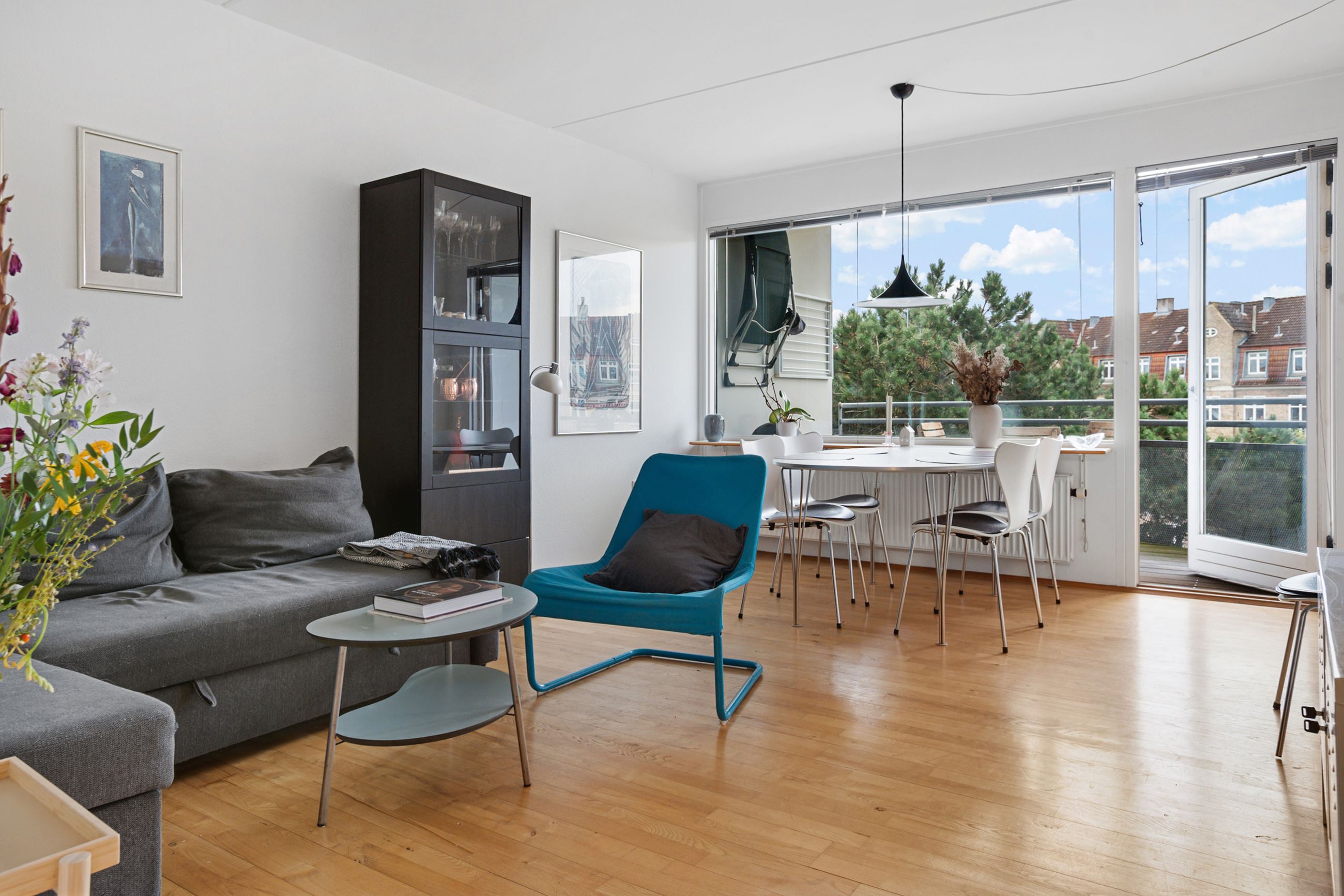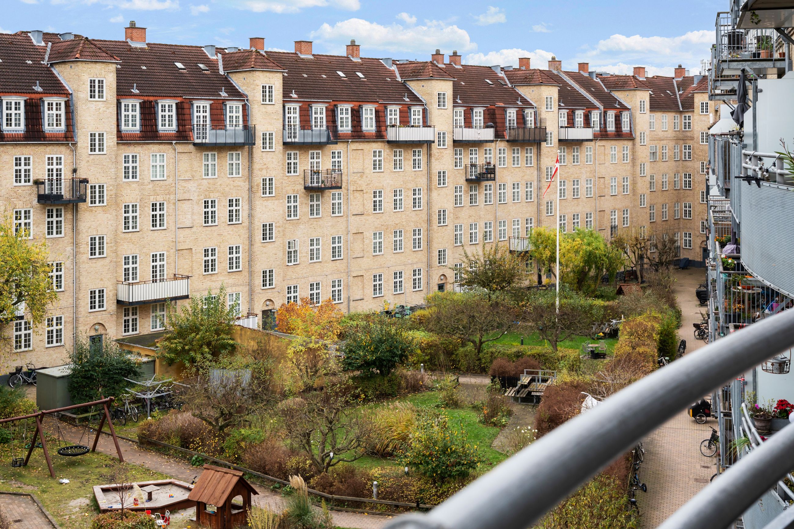 Lejligheden på Nygårdsvej ligger i det attraktive Klimakvarter på 4. sal i en ejendom fra 1991. Puha, vil nogle måske gispe over etagen, men bare rolig, her er elevator hele vejen. Højt er godt, for det er her, lyset fra himlen er fra de sydvendte vinduer. For ikke at tale om stilheden, som slet ikke har noget med livet i gården og mylderet nede på gaden at gøre. Lejligheden er på 78 velholdte m2 med nye vinduer, sol hele dagen og et ordentligt badeværelse, man ikke skal bakke ind i med bukserne nede. Og så er den delevenlig, som man siger, når der er mindst 2 soveværelser. Altså ideel til ældre og forældrekøb, så 2 studerende kan dele huslejen. Stor sydvendt terrasse ud til, hvad der må være en af Østerbros, hvis ikke Københavns, største og mest charmerende gårde. Det populære Klimakvarter er i udvikling med nye caféer, vinbarer og Metro tæt på. Her bor mange unge, par som enlige, og små, nye familier.