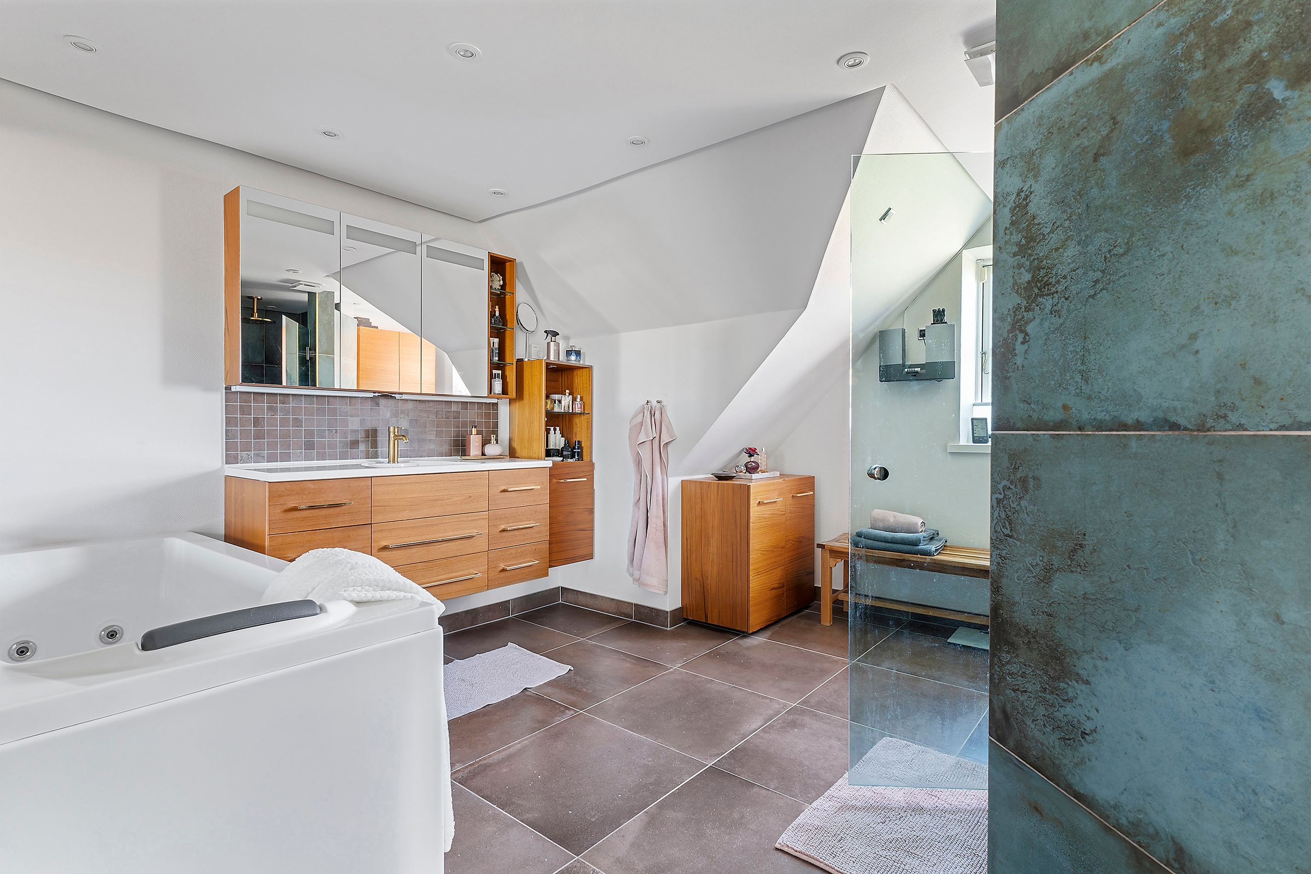 Helårsbolig. Nyrupvej 5C er bygget i 1947. Med 430 m2 bolig er det i dag så stort et hus, at det som en Schweizerkniv kan tilbyde lidt af hvert. Eksempel som flergenerationshus, for her er 2 selvstændige boliger under samme tag. Lej den ene ud, flyt sammen med børnebørnene eller brug det hele selv med dine, mine og vores børn. Her er også plads til en kunstner, som ønsker sit eget atelier. Det et hus med masser af lækkerier, masser af lys og masser af plads til erhverv. Kom bare an. At flytte hertil fra København, ja, det er utroligt så meget mere, man får for pengene. Grunden er på over 5,6 tønder land med en terrasse, man med god samvittighed kan kalde en lounge. Med energi A10 og solceller er alt godt isoleret og energioptimeret. Alt er til at kramme, alt er lige til at flytte ind i. Bare 50 minutter fra København, så står flyttevognen her.
