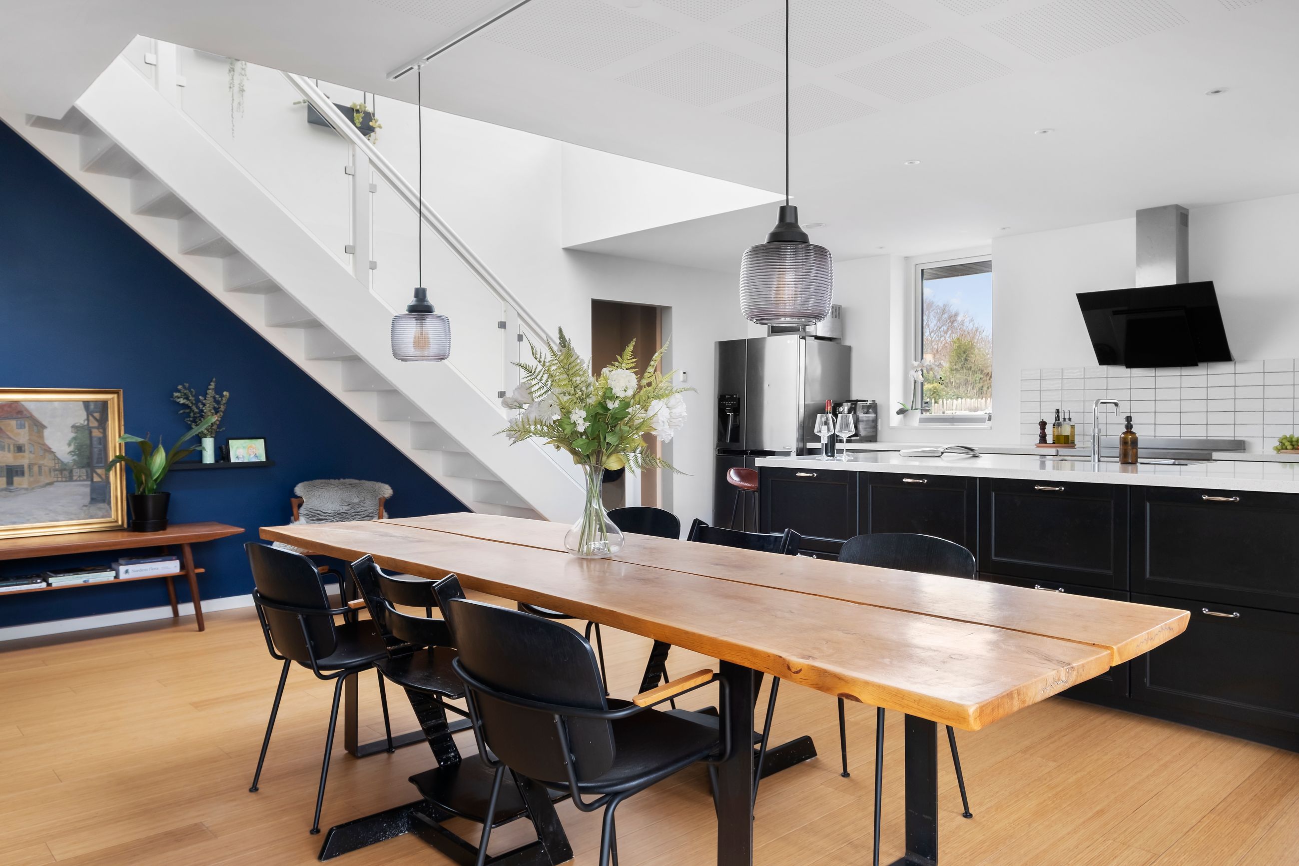 Huset på Øreholmvej 14 ligger i Lyndby. Det er et hus på 166 m2 bygget i 2017. Ikke meget vedligeholdelse her, til gengæld masser af charme og masser af lys med vinduer fra gulv til loft. Alt er lige til at flytte ind i. Med en Sky Box på taget er der den mest fantastiske udsigt til hele den sydlige del af fjorden, spektakulært er det at sidde her og opleve solopgangen og se vandet i skarp konkurrere med stjernerne på himlen. Festerne på den store sydvendte terrasse skal man selv have lov til at sætte ord på.
