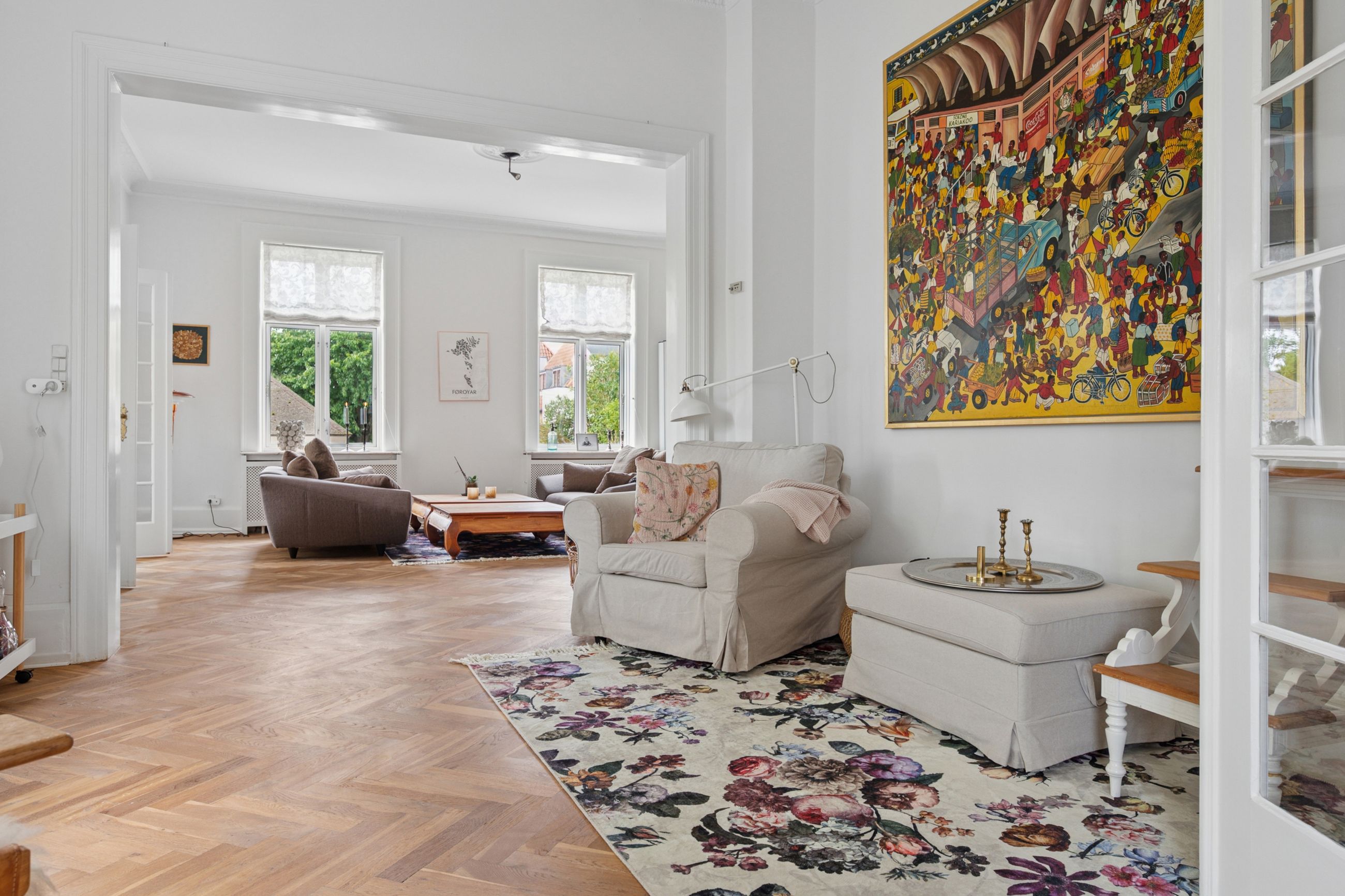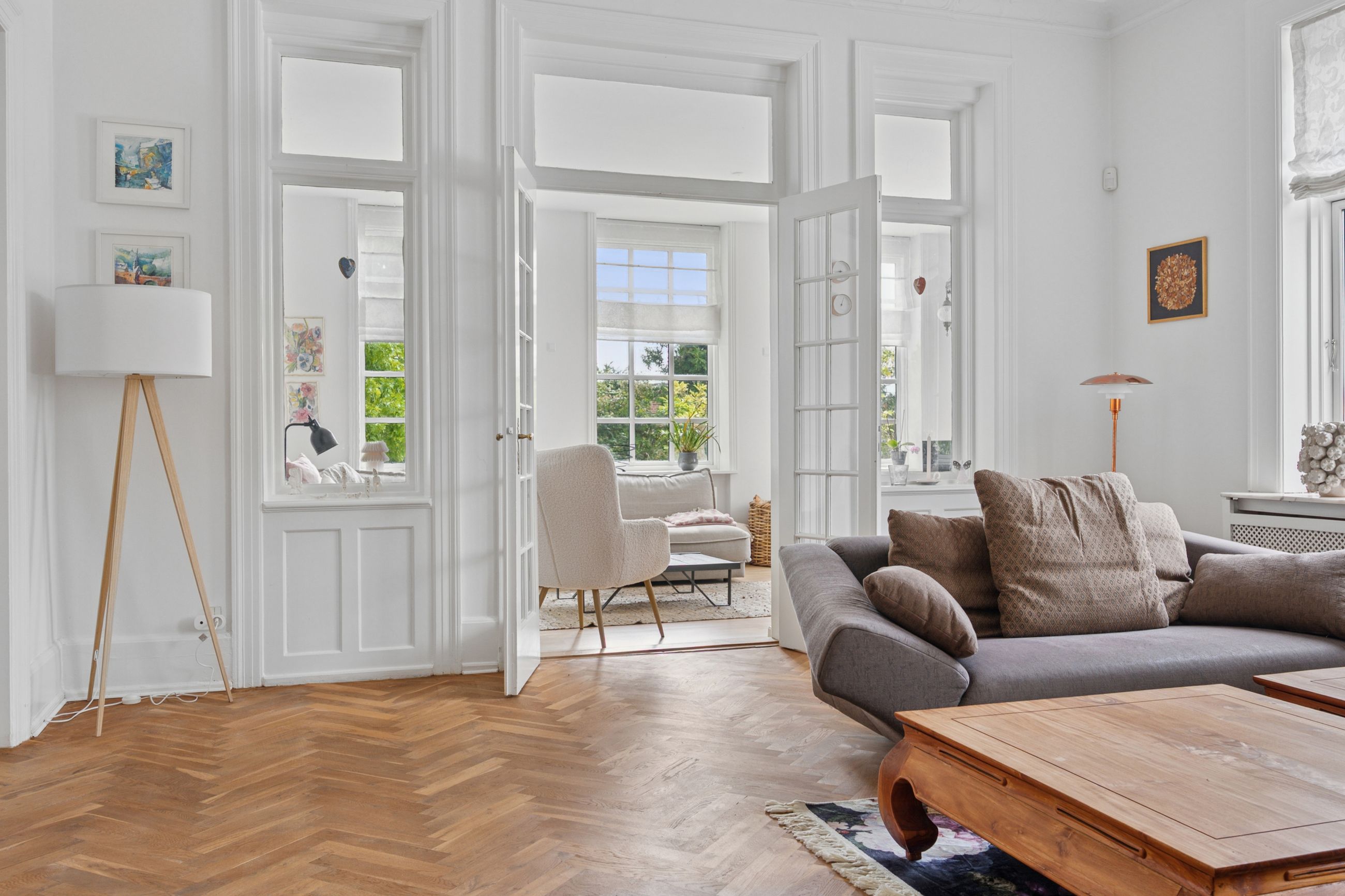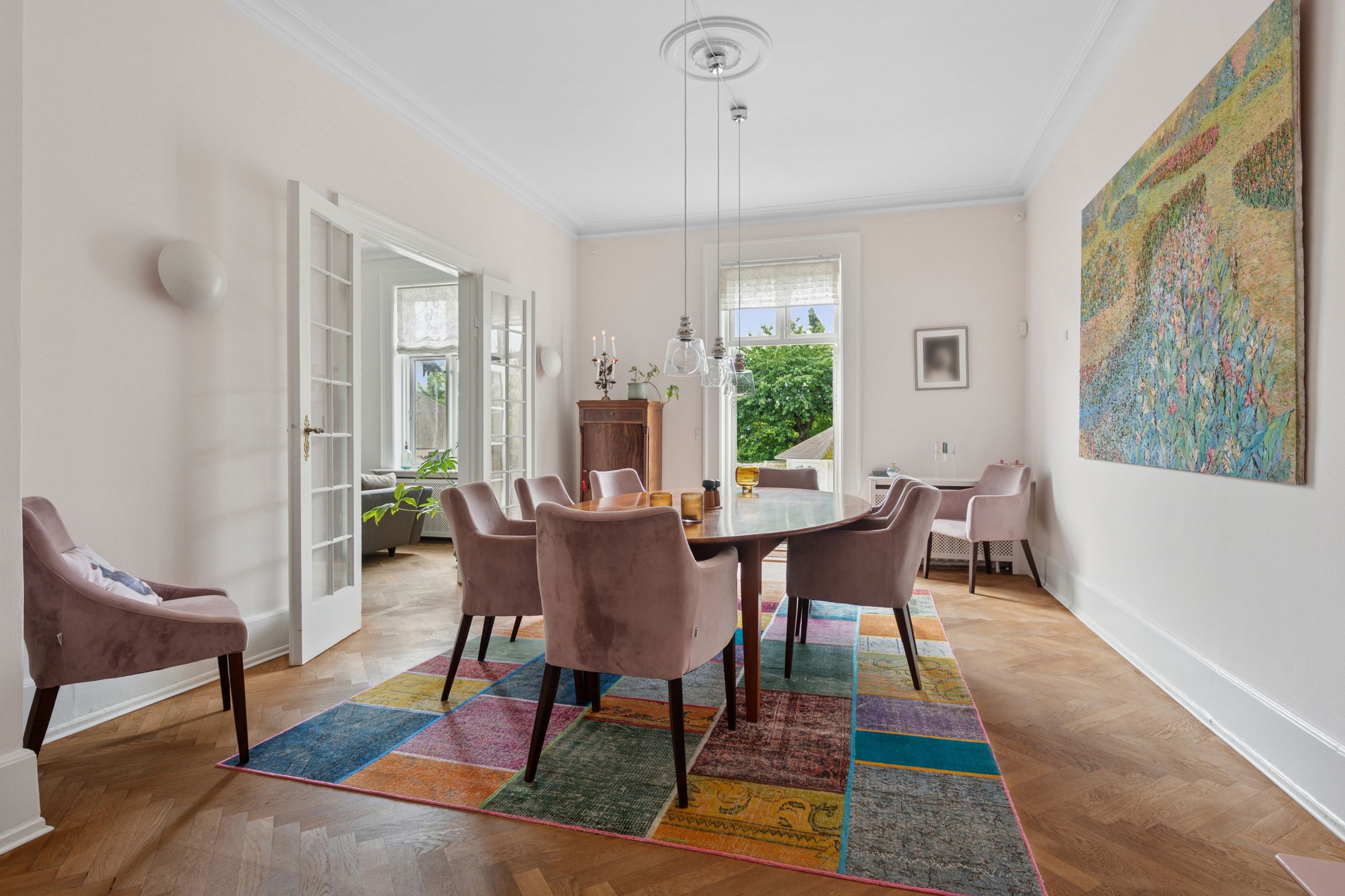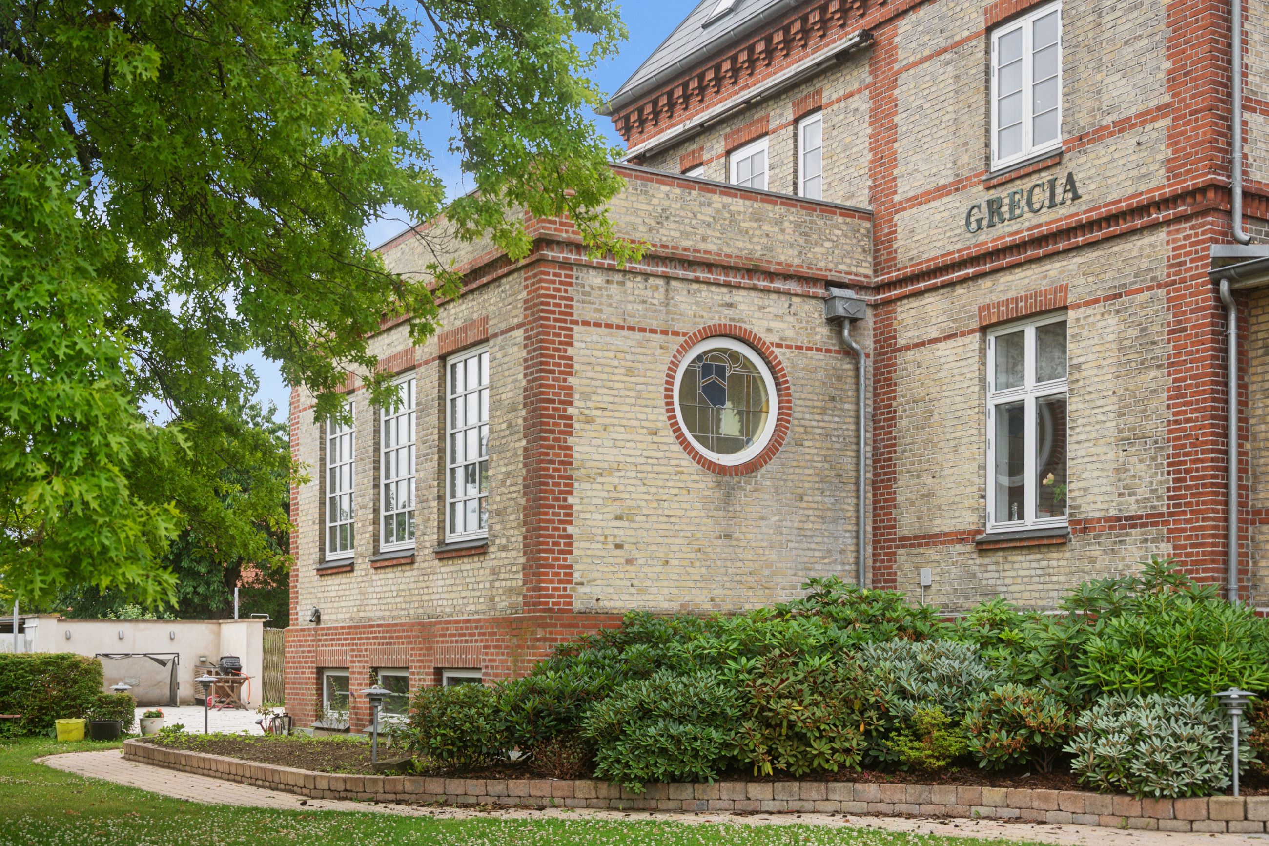 Grecia, står der på facaden til ejendommen på Øresundshøj 3B, som på latin, spansk og italiensk betyder Grækenland. Den er bygget i 1884 i den historicistiske periode, hvor arkitekterne hentede inspiration fra barokken, rokokoen og renæssancen, som igen hentede inspiration fra den antikke verden i Rom og Grækenland. Ejendommen er stor, matriklen er stor, udsigten over Øresund er dyb og stor. Her er 321 m2 bolig og en kælder på 163 m2. Grunden er på 1.155 m2 og nem at holde. Det er en markant og meget velholdt ejendom, og alt er lige til at flytte ind i. Med mange soveværelser og et uudnyttet, stort loftsrum er det et ideelt hus til familien med børn på en stille vej bare små 15 minutter fra al balladen i København.