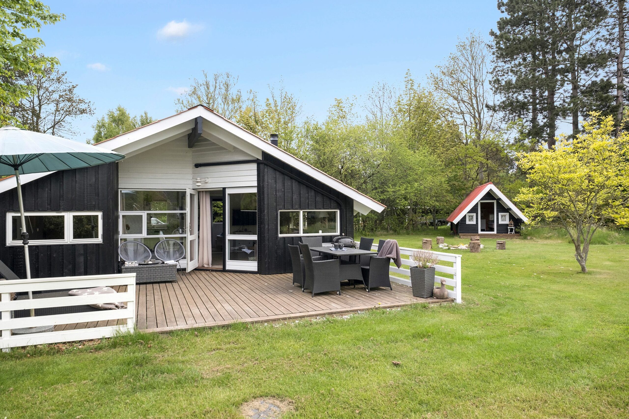 Altså spitzenklasse, som de siger nede sydpå, når de skal til Danmark for at holde ferie. Ved udlejning kan alle udgifter dækkes, endda også lån til køb af sommerhuset. Juli og august er lejet ud i år, gode sommerhuse er der bud efter. Både Klint Havn og Klint Strand med en fin badebro ligger tæt på sommerhuset. Det er bygget i 1992 og er på 61 m2 plus anneks til teenagere og venner på besøg. Det er et klassisk sort træhussommerhus med hvide vinduer, så her er der al den sommerhuscharme, der kan masseres ind i Odsherred. Det ligger helt rigtigt på grunden direkte på verdenshjørnerne, hvor terrassen er placeret stik syd med sol på bare maver og blege kinder hele dagen. Terrassen er havens store uderum, her er og fred. Grunden er på 1.293 m2 med både spa, skur og overdækket terrasse.