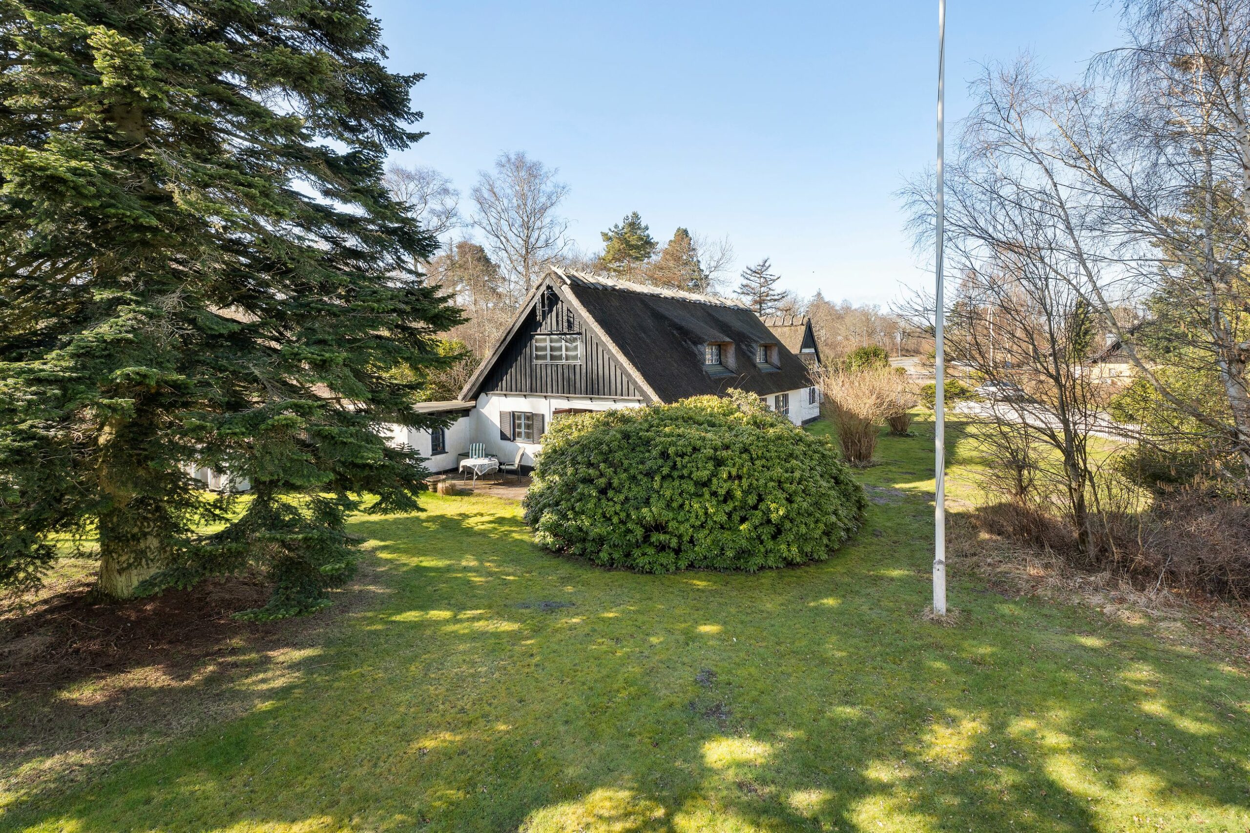 Børn, børnebørn, oldebørn: Det fine sommerhus uden nøgle under måtten på Østerlyngvej 110 ligger hist på vejen, som slår en bugt i svinget mod Rørvigvej til venstre og den store natur i Hov Vig mod højre. Mange fuglekiggere og fuglefotografer tager til det fredede fuglereservat i Hov Vig, som ligger lige om hjørnet. Her bliver der ikke bygget nyt. Det er et charmerende, klassisk landligt hus på 517 m2 med nyere varmepumpe, så her er der plads til familien med både børn, børnebørn, oldebørn og venner på besøg. Huset er fra 1963, og så er alderen på et stråtag jo ofte til debat, også her. Det er så nyt som fra 2022, så det skal nok holde de næste 50-60 år. Grunden er på 2.982 m2 med en have, som en robotklipper kan være flink til at slå.