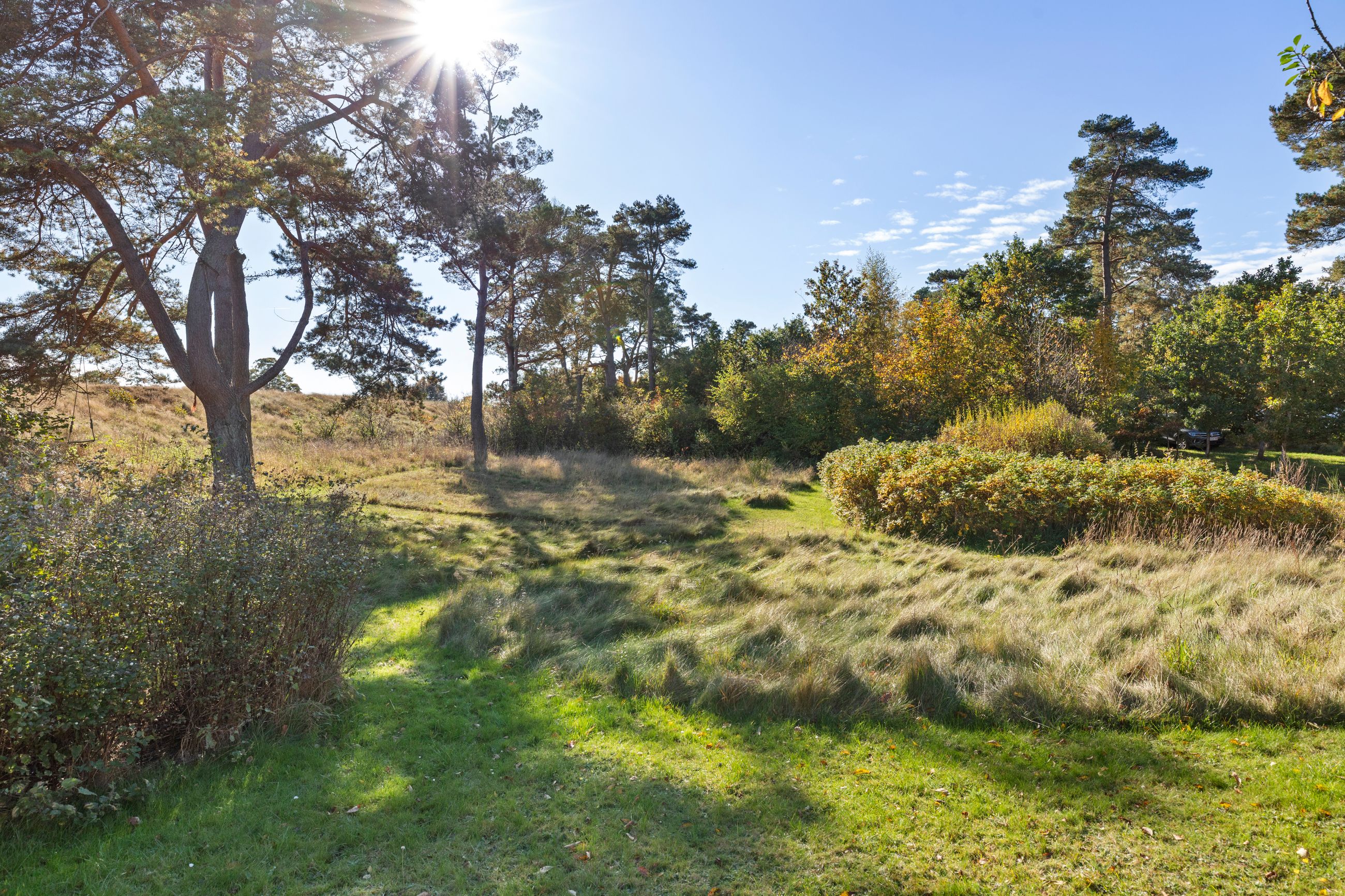 Familien på Øvrevænget 17 i Tisvilde Bakker har haft sommerhuset i 55 år. Det er fra 1930, men blev forlænget og udbygget til dobbelt størrelse i 1979 i samme arkitektur. Stort og harmonisk er det med alle sine 316 m2. Måske for stort til en enkelt familie, men her er 2 køkkener, ét i hver ende, og flere badeværelser, så det kan nemt og ligetil deles op til 2 familier. Den 10.018 m2 store grund forputter sig bag de smukke sanddiger. Ja, og den marehalm, der i sin tid blev plantet på digerne, den er her endnu med lyng og fylder det meste af grunden. Tak for det, smukt er det at kigge på.