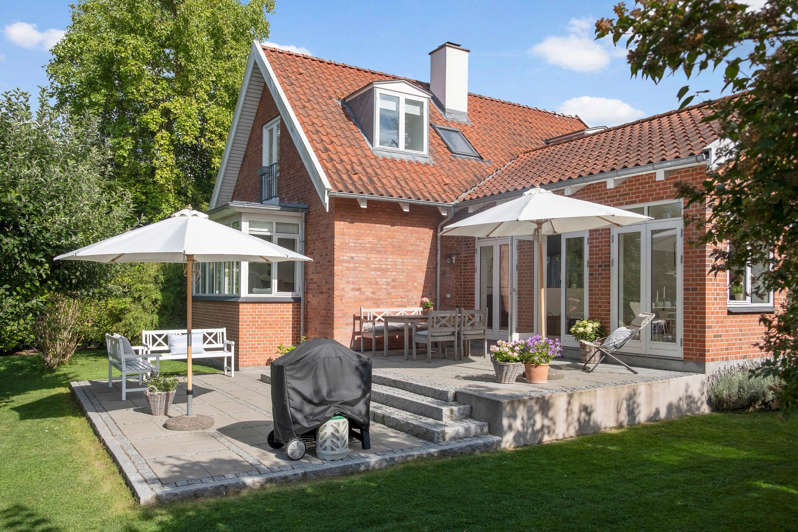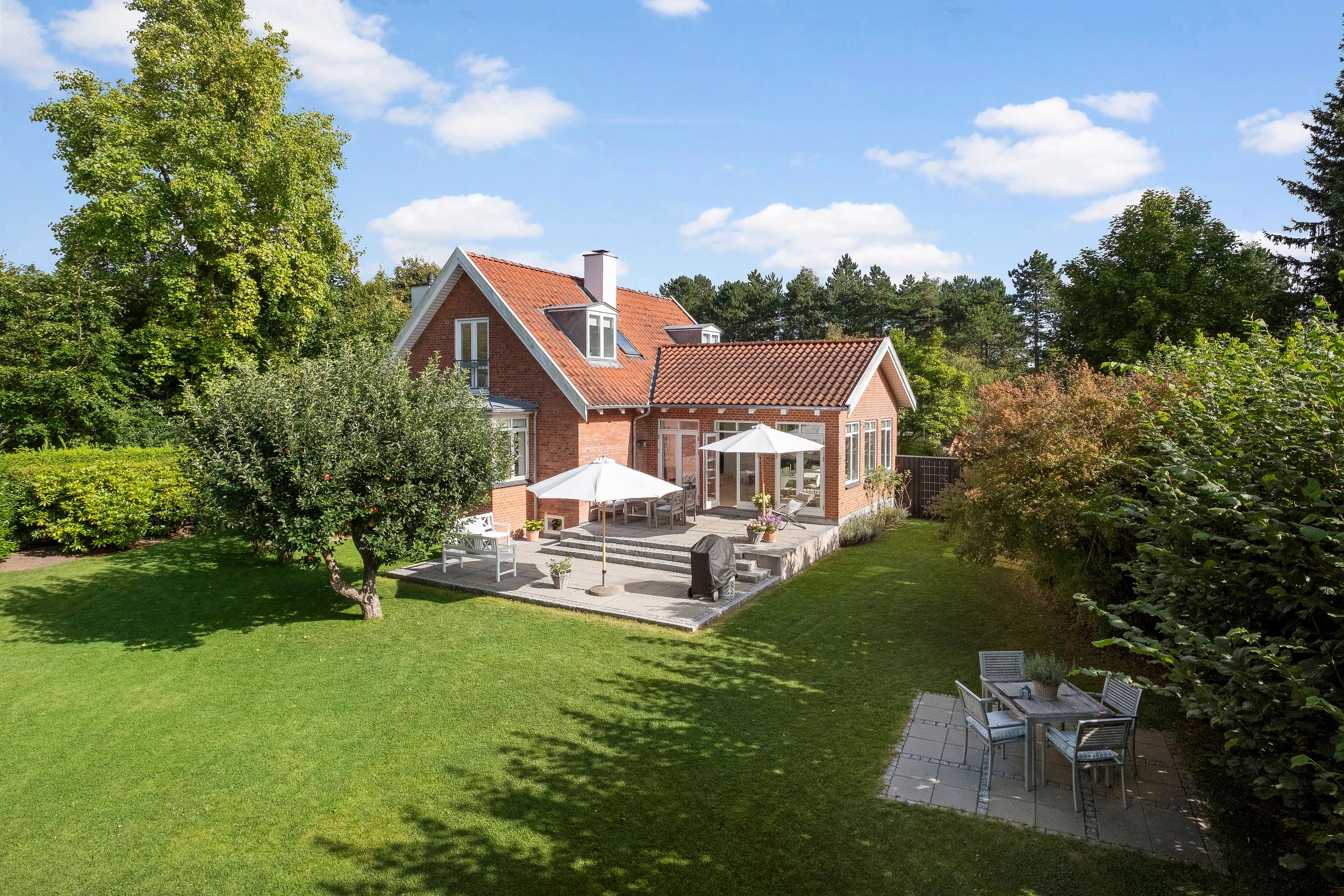 Den renoverede murermestervilla på Paludan Müllersvej 7 ligger midt i byen ikke langt fra slotshaven med stisystemer til det hele. Det er bygget i 1950 for enden af en blind vej. Underetagen er altid tør, altid masser lys, altid anvendelig uden lugtgener. Det er et meget velholdt hus, et hus med masser af lys og en rigtig god planløsning til familien med børn. Køkkenet er et snedkerkøkken fra 2023. Her er 233 etagemeter bolig, hvor de 72 m2 ligger i underetagen. Grunden er på 1.285 m2 med en fantastisk vestvendt terrasse med sol det meste af dagen. Dobbelt carport, dobbelt luksus.