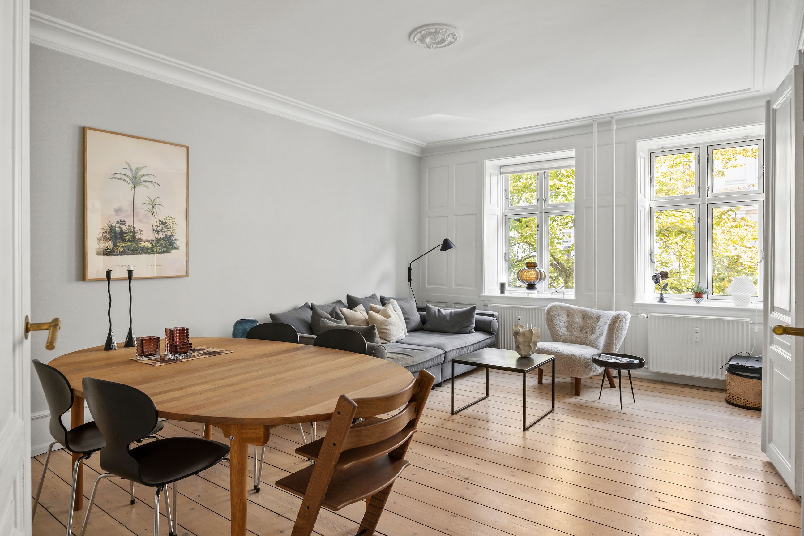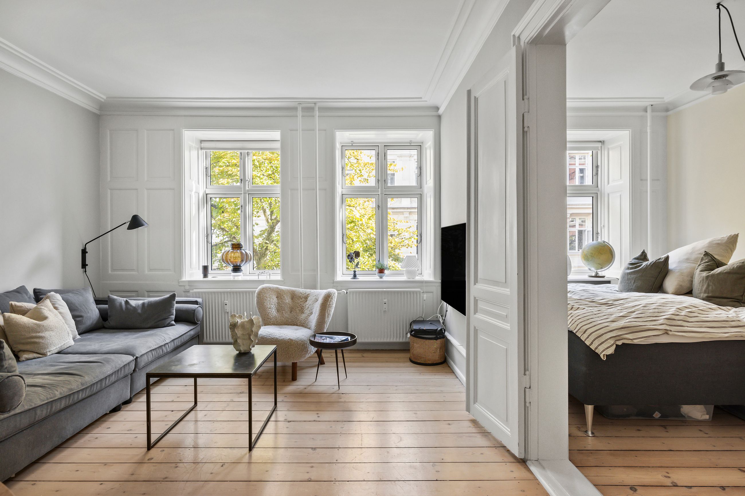Lejligheden i Peder Skrams Gade 10 ligger oppe på 1. sal, ikke mange trin fra gaden. Selv om gaden ligger i det københavnske smørhul, så er der fred og ro i lejligheden, selv på en fredag og lørdag aften. Lejligheden er klassisk lækker på 87 m2 i en ejendom fra 1872. Der kunne stå boheme på døren, men der kunne også stå velkommen til det unge par, som vil alt det bedste i byen. Hyggelig brostensbelagt gård, sådan skal det være i Indre By.