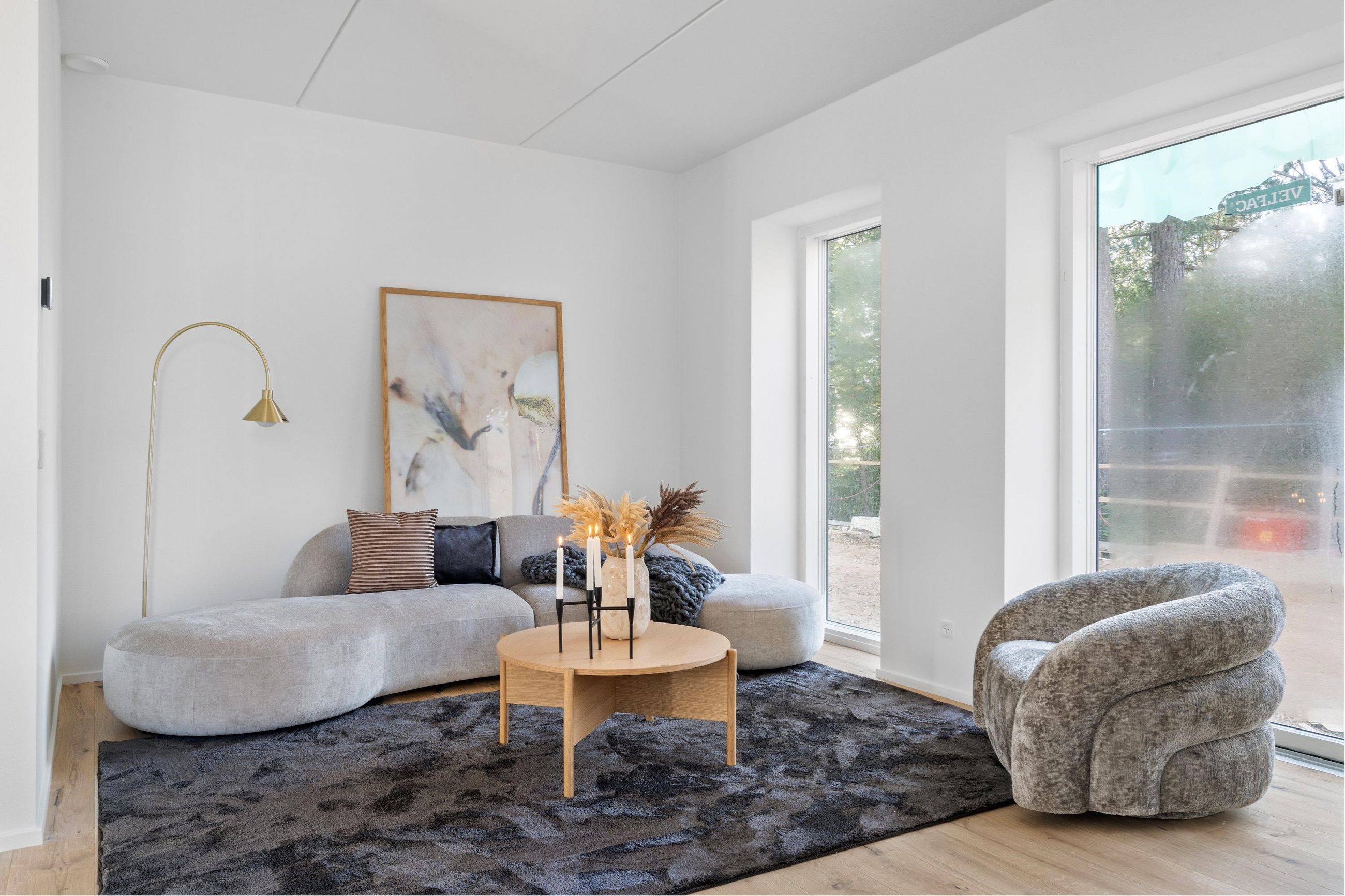 Rækkehuset byder på 2 etager fordelt på 124 m2 bolig, 34 m2 terrasse. I blandt de 124 m2 ligger 3 rumlige soveværelser placeret på 1. sal. Derudover rummer rækkehuset 2 super lækre badeværelser, det ene med vaskemaskine og tørretumbler. Rækkehuset har store panorama-vinduer hvor du i stille fred kan nyde udsigten til årstidernes skiften. Her omfavnes du af lyset og rummeligheden, både ude og inde.