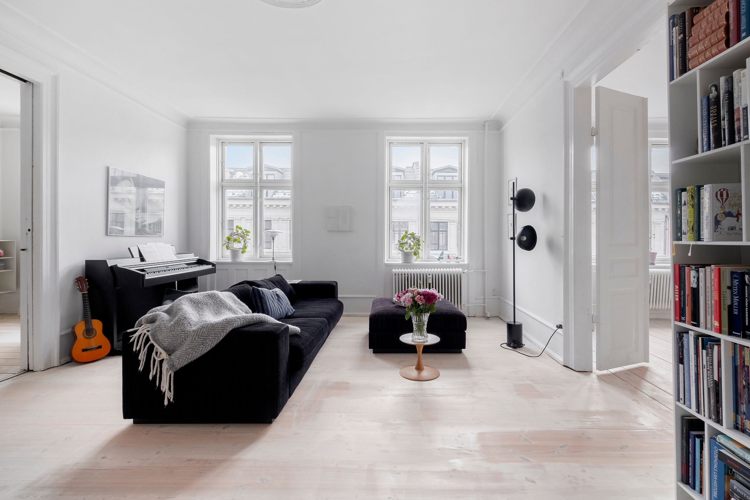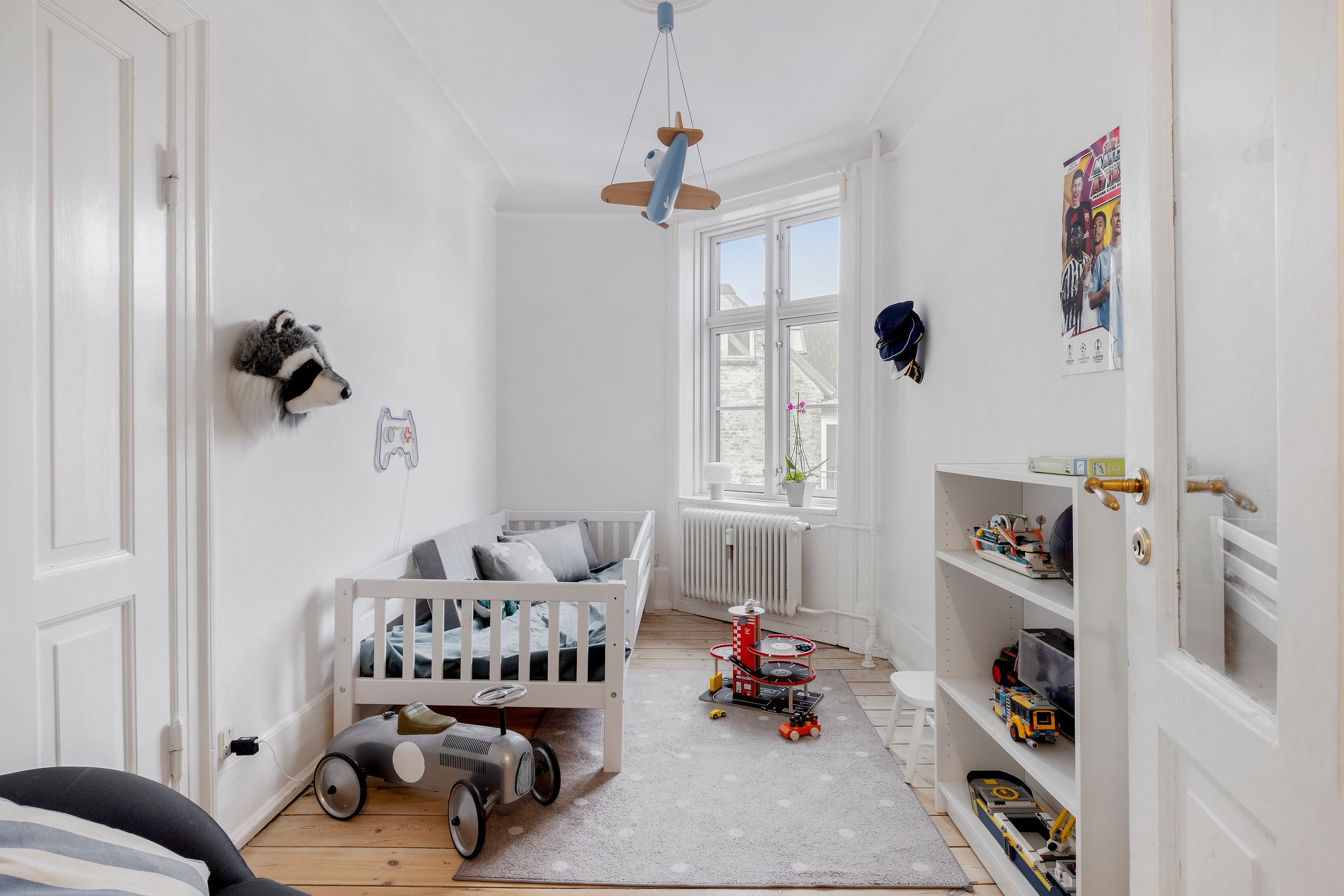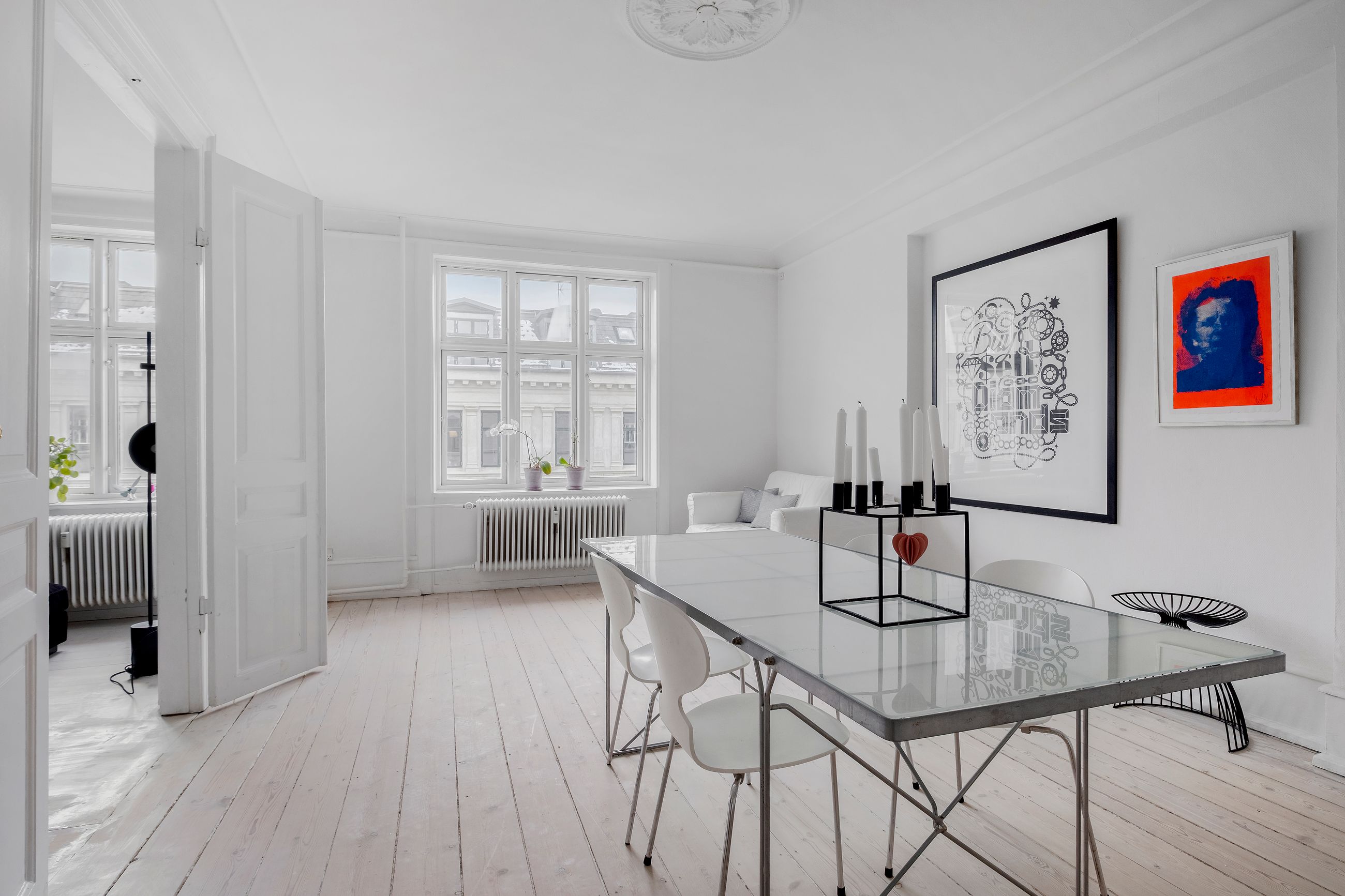 Ejendommen Rørholmsgade 14 er bygget i den historicistiske periode, som arkitekturen blev kaldt mellem 1820 og 1900. Det var tiden, som fandt inspiration i historiske stilarter i en ny udformning som nygotik og nyrenæssance med grundtanker fra arkitekturen i det gamle Rom. Med 3 trin fra køkken op til bryggers og flere soveværelser er rumfordelingen på de 133 m2 ideel til familien med børn. Vi er på 4. sal, deroppe, hvor lys, himmel og byens fugle flyver i flok, hvis de er mange nok. En smuk, klassisk københavnerlejlighed med højt til loftet og en skøn altan.