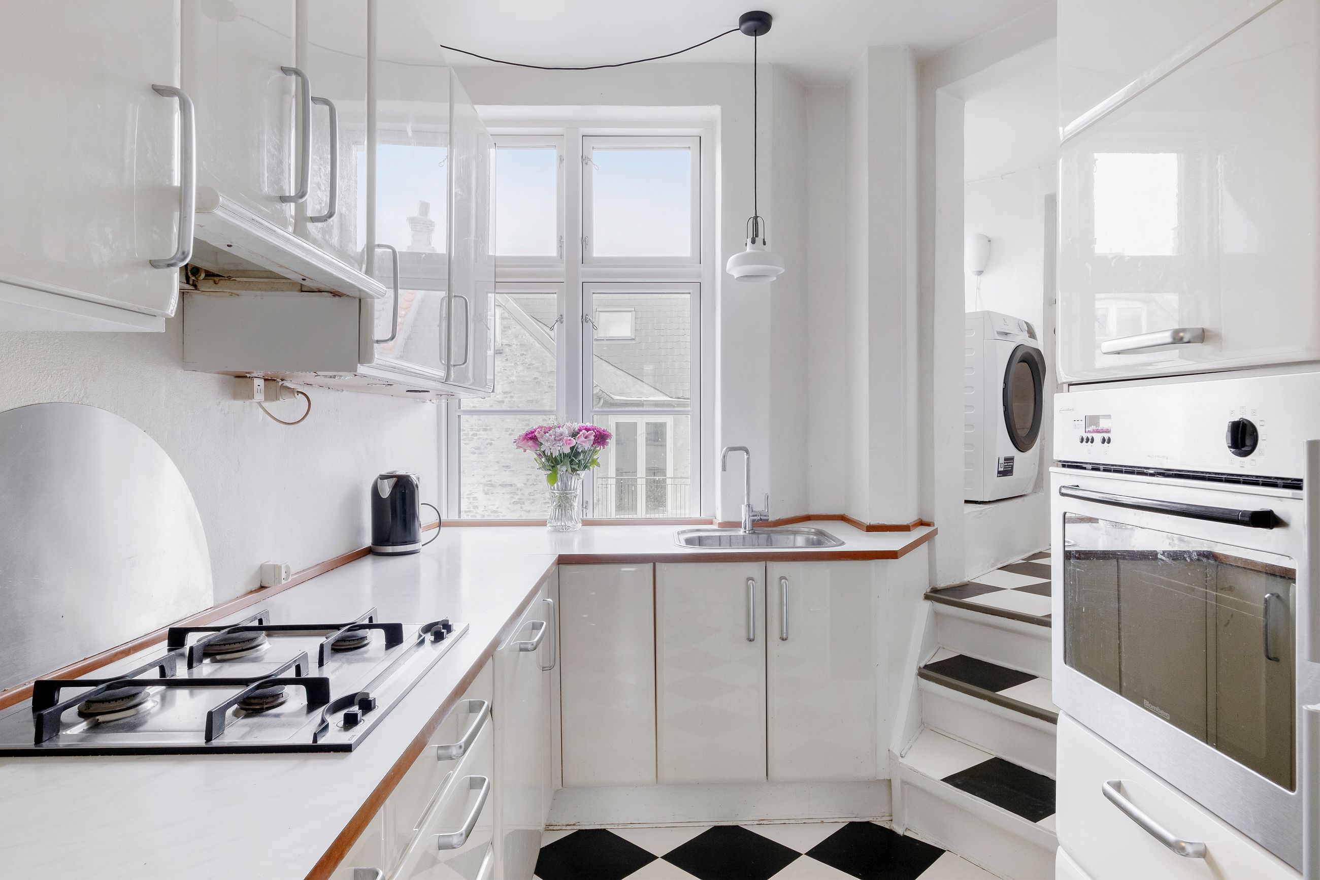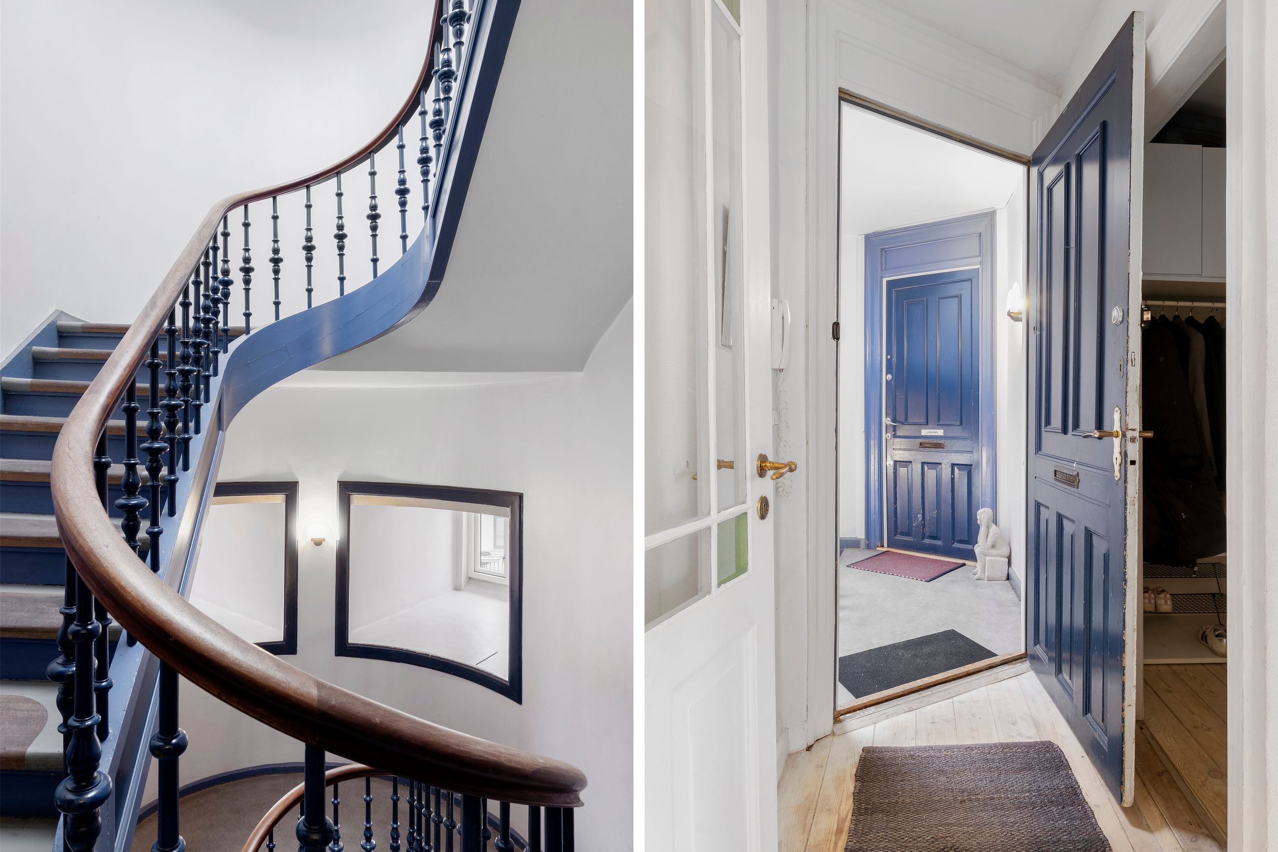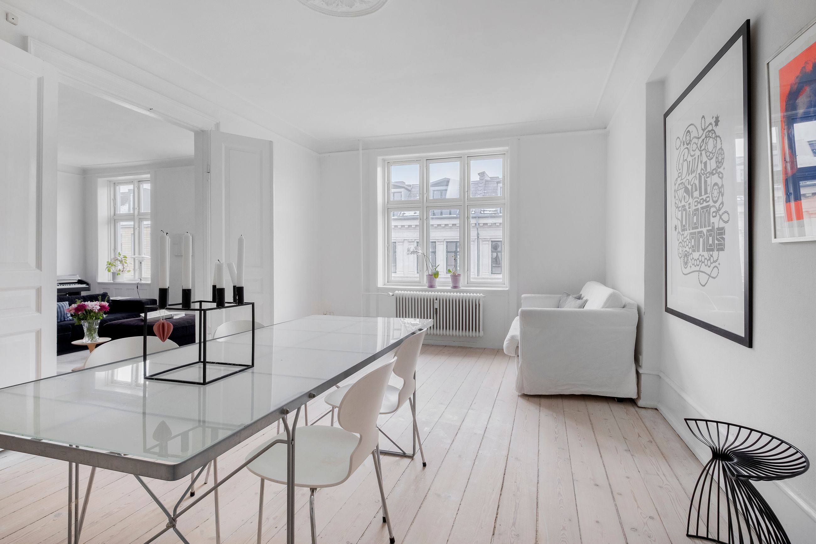 Ejendommen Rørholmsgade 14 er bygget i den historicistiske periode, som arkitekturen blev kaldt mellem 1820 og 1900. Det var tiden, som fandt inspiration i historiske stilarter i en ny udformning som nygotik og nyrenæssance med grundtanker fra arkitekturen i det gamle Rom. Med 3 trin fra køkken op til bryggers og flere soveværelser er rumfordelingen på de 133 m2 ideel til familien med børn. Vi er på 4. sal, deroppe, hvor lys, himmel og byens fugle flyver i flok, hvis de er mange nok. En smuk, klassisk københavnerlejlighed med højt til loftet og en skøn altan.