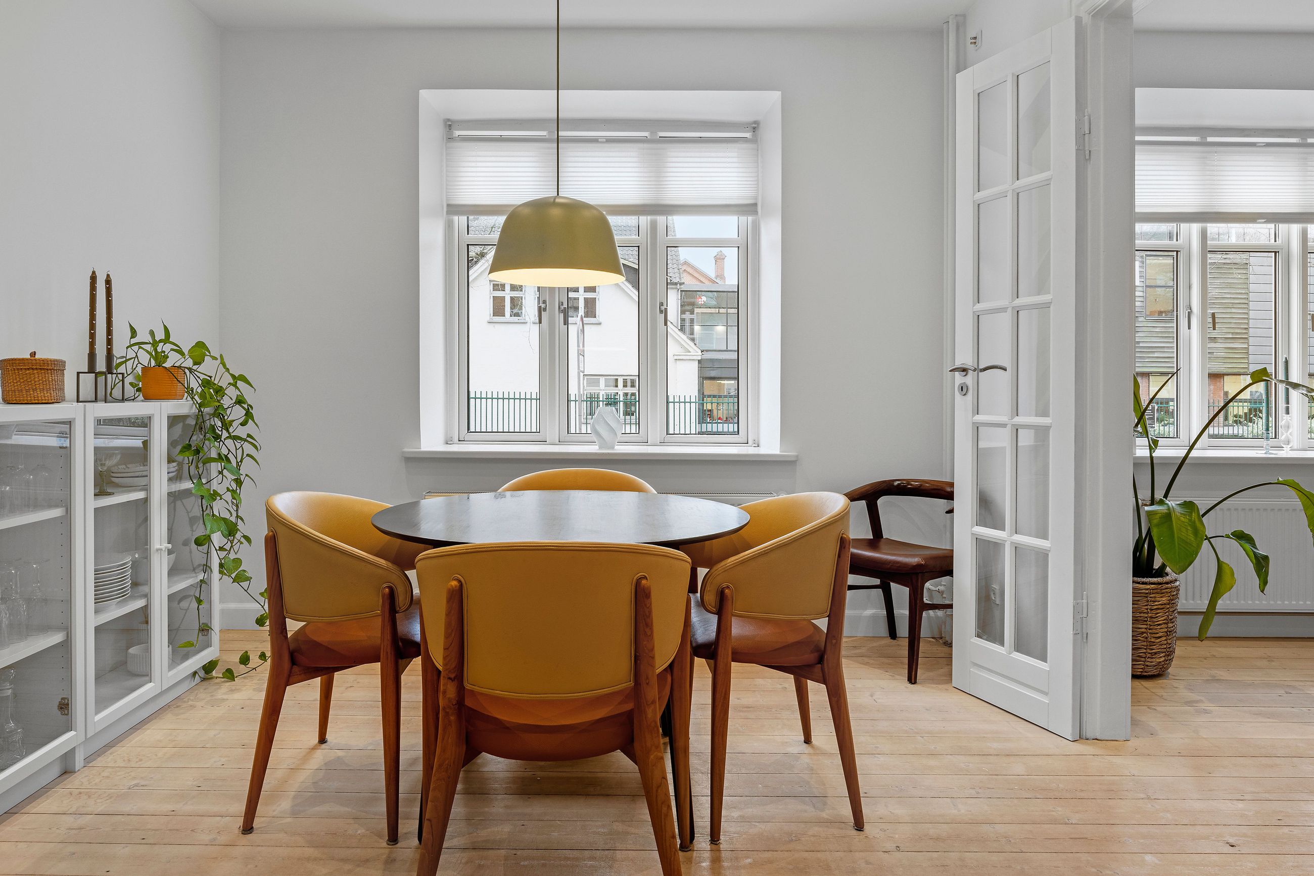 Med både Ansgars Kirke, Odense Å og letbane lige om hjørnet har Roersvej en rigtig god beliggenhed i byen. 5-10 gåminutter, så står man midt i det hele med caféer, restauranter og alle de lækre butikker. Roersvej 11 er fra 1902, altså en af de lidt ældre damer i kvarteret. Ejendommen er fredet, og den høje stuelejlighed uden indkig blev renoveret i 2018. Her er 74 m2 bolig med 3 værelser, højt til loftet og charmerende franske dobbeltdøre mellem stue og spisestue.