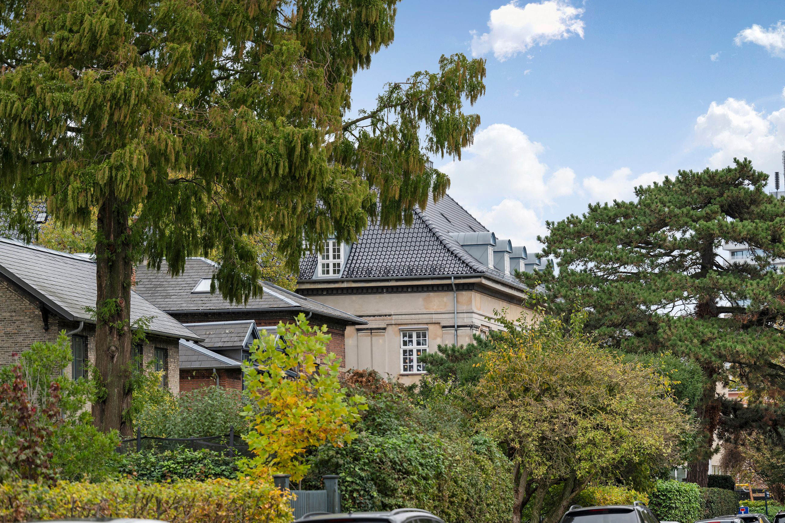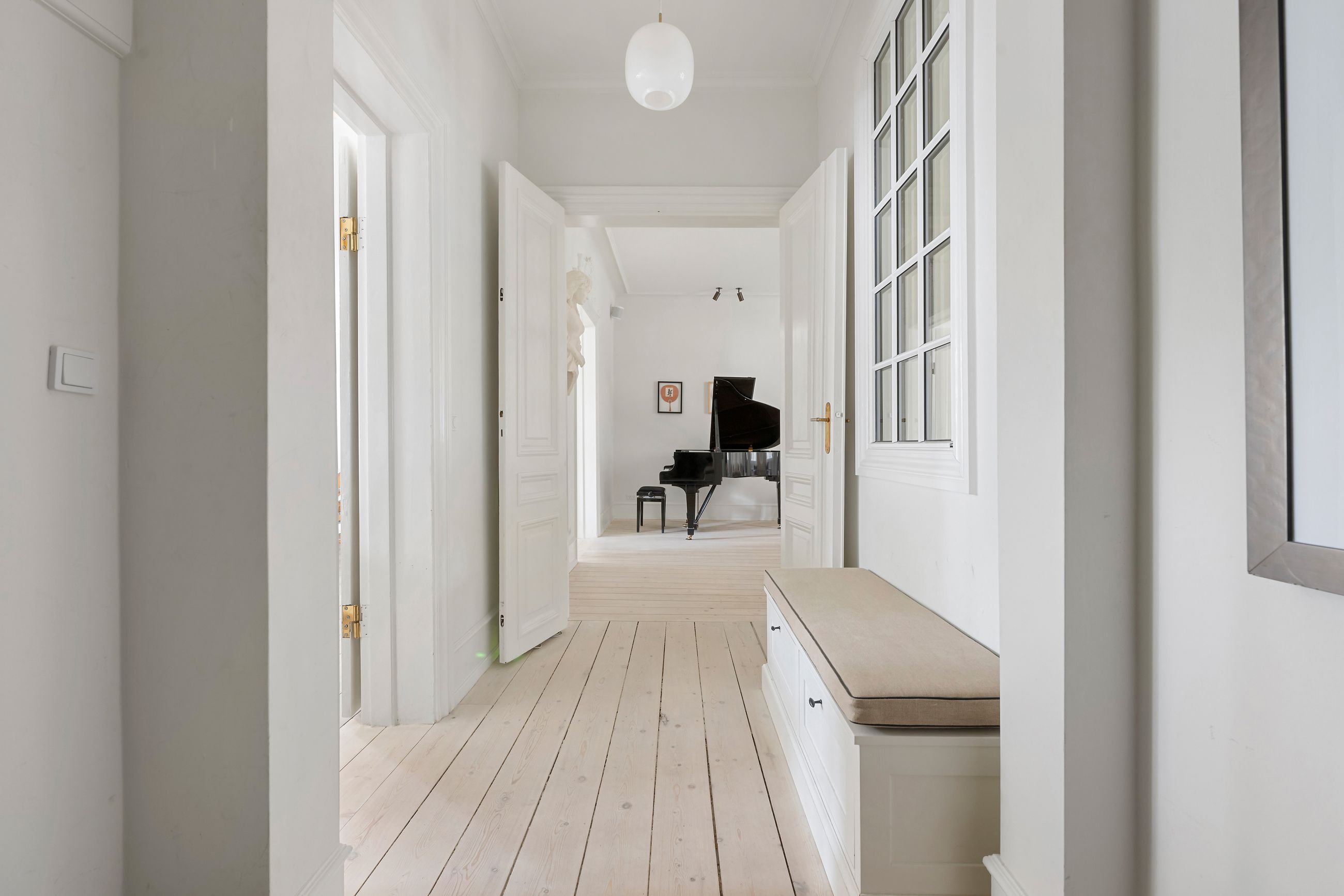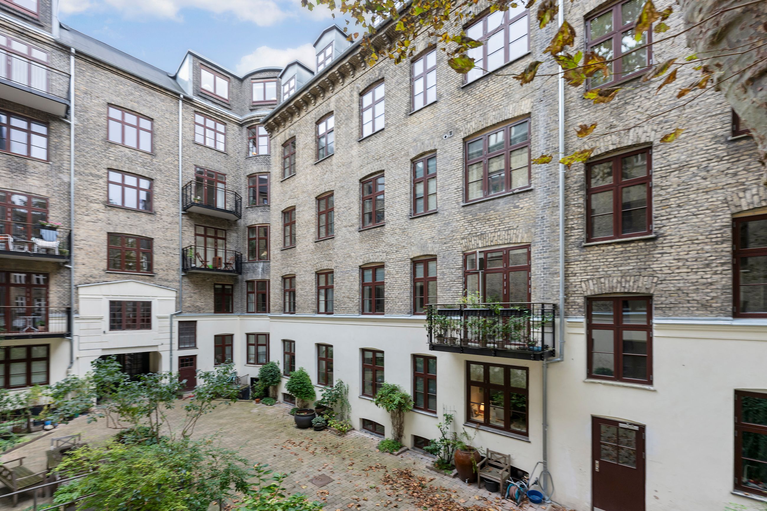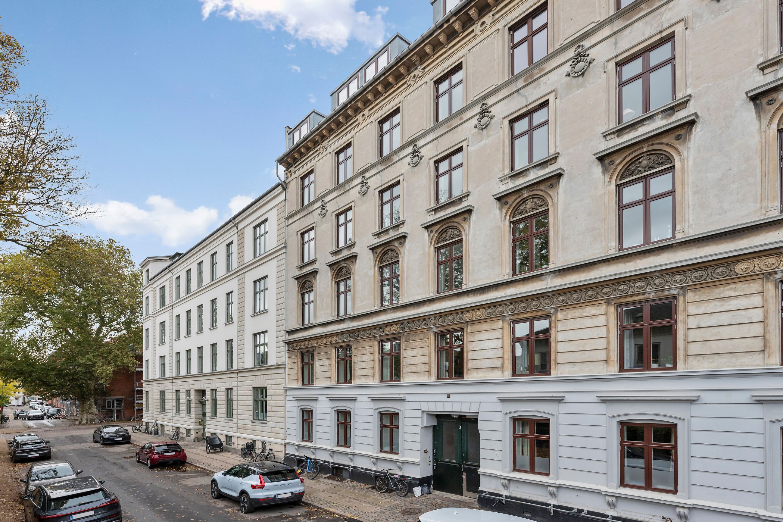 Rosenvængets Sideallé lyder som en parentes, men altså, alléen er et åndedrag i hjertet af Østerbro. Det er en vej med liv, glade ansigter og ejendomme fra en tid, hvor man byggede med værdighed. Platantræerne på alléen råber ikke, de ved, at opmærksomhed godt kan gå på listesko. Ejendommen i nummer 3 er fra 1901 og ligger på 1. sal, hvor alle 220 m2 er renoveret til den toplækre og moderne lejlighed, den er i dag. Slet ikke til at forstå, at her kan være så stille på Østerbro. Gennemtænkt med masser af plads, lækkert køkken og lækre badeværelser i en sund ejerforening. Gården er også renoveret for 3 år siden, et helt vidunderligt fristed med spiseplads under det store platantræ. Gennem bagtrappen er der direkte adgang til lejlighedens private kælderrum.
