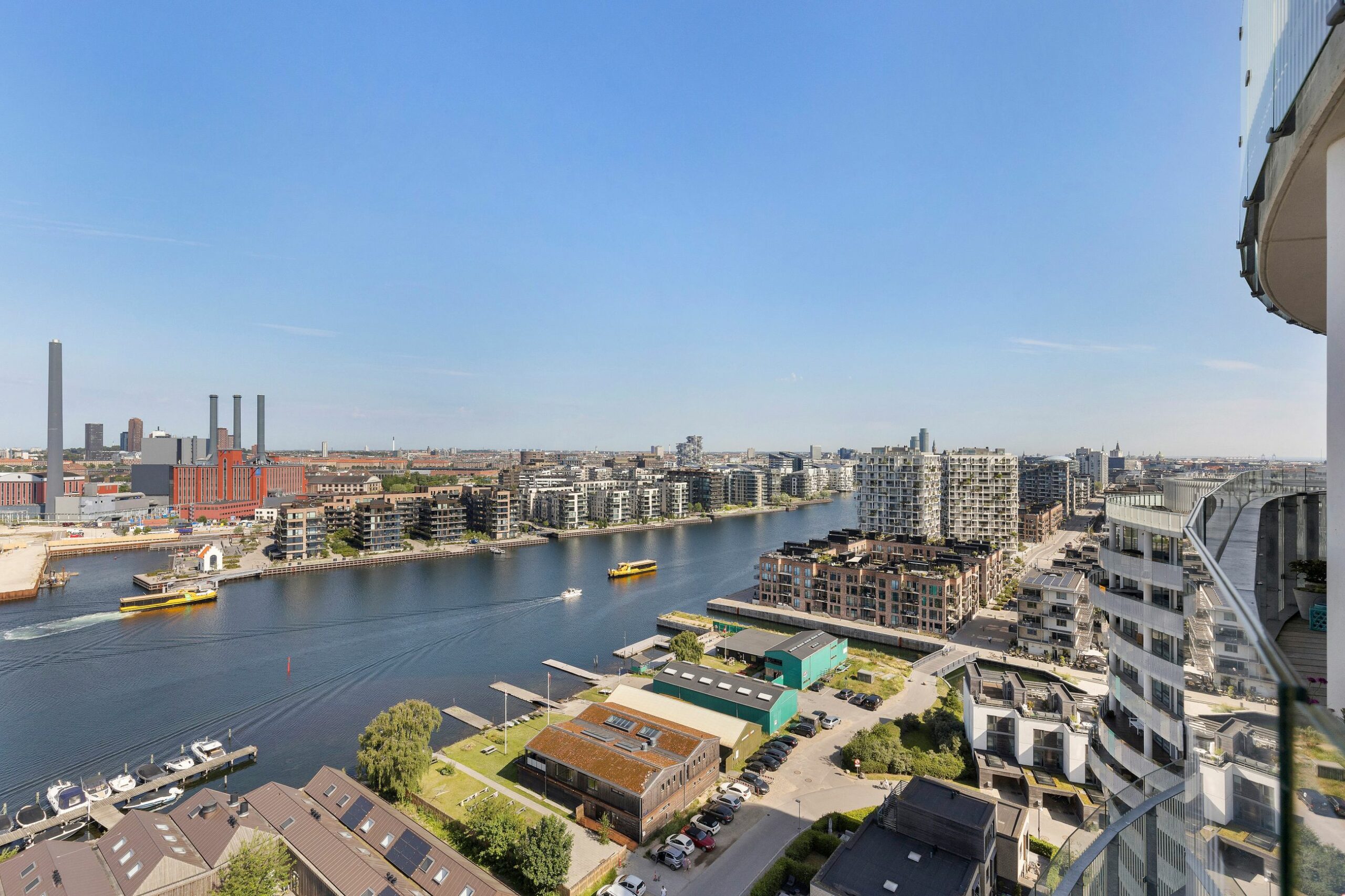 I penthouselejligheden på Rundholtsvej 28 oppe på 15. sal bliver man helt rundtosset. Af mange årsager. Udsigten, ikke mindst, som på en god dag rammer den svenske kyst. Ja, her er udsigt over København helt fra Amager Fælled i syd over havneløbet og byens skyline i vest som den, kun fugle og vandflyverens passagerer ser. De pifter og vinker, når de flyver forbi. Blikket hænger længe, smilet sidder fast. Ejendommen er det højeste af 3 tårne bygget i 2014 i den sydlige del af Islands Brygge med natur, havn og byliv. Med 147 m2 bolig er her plads nok til familien med børn, som får hver deres afdeling. Privat parkering i kælderen med elevator hele vejen op til paradis.