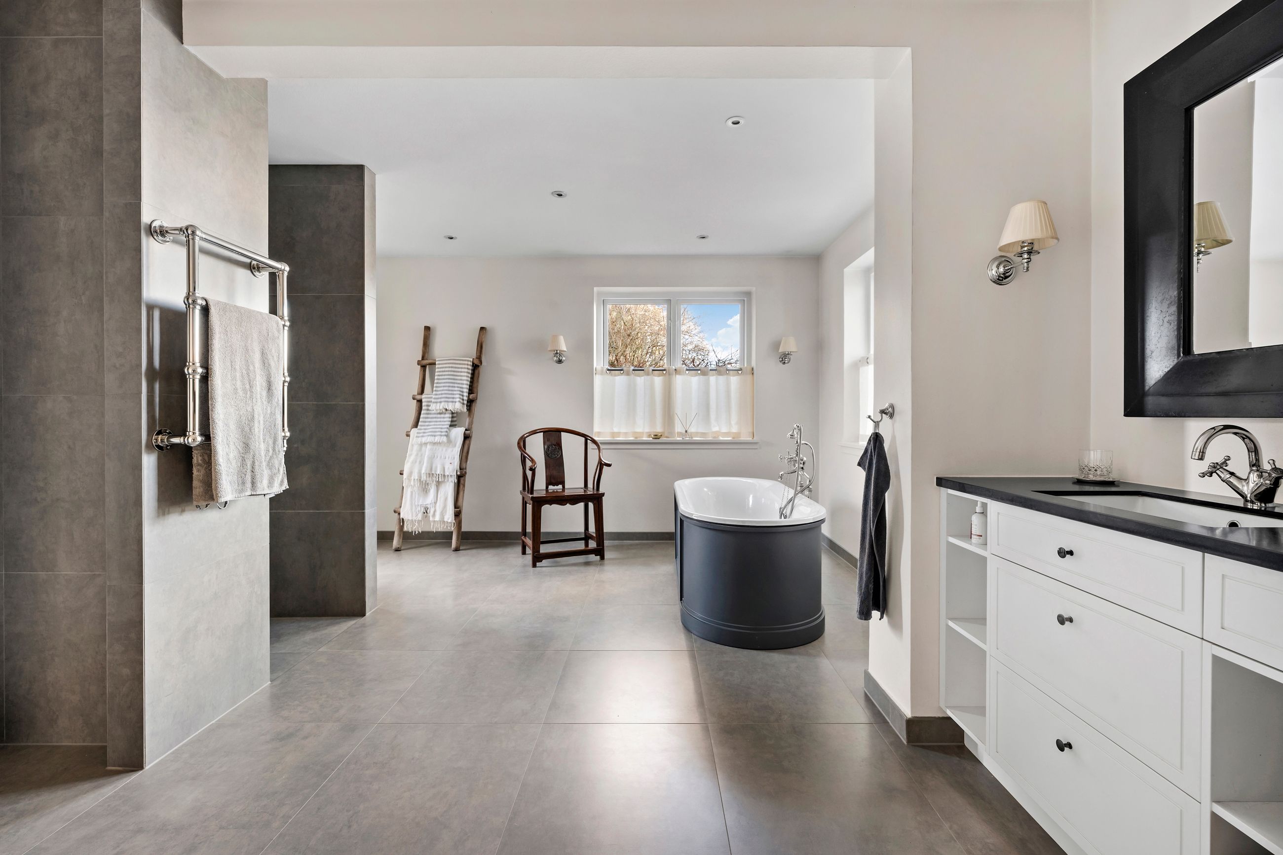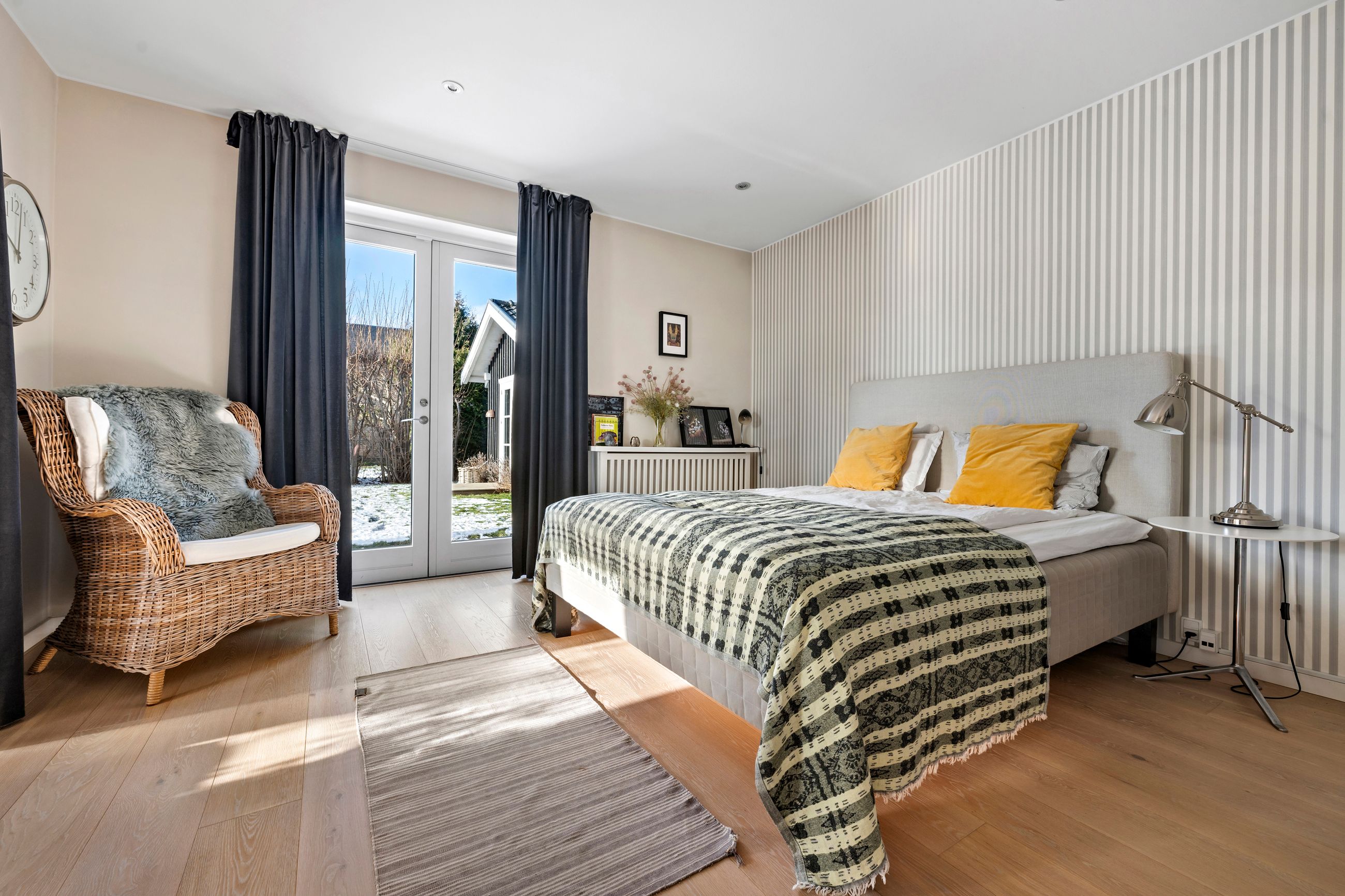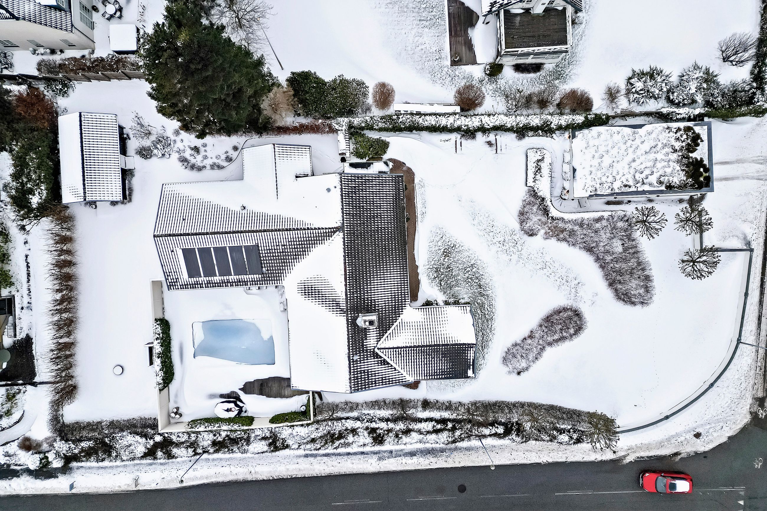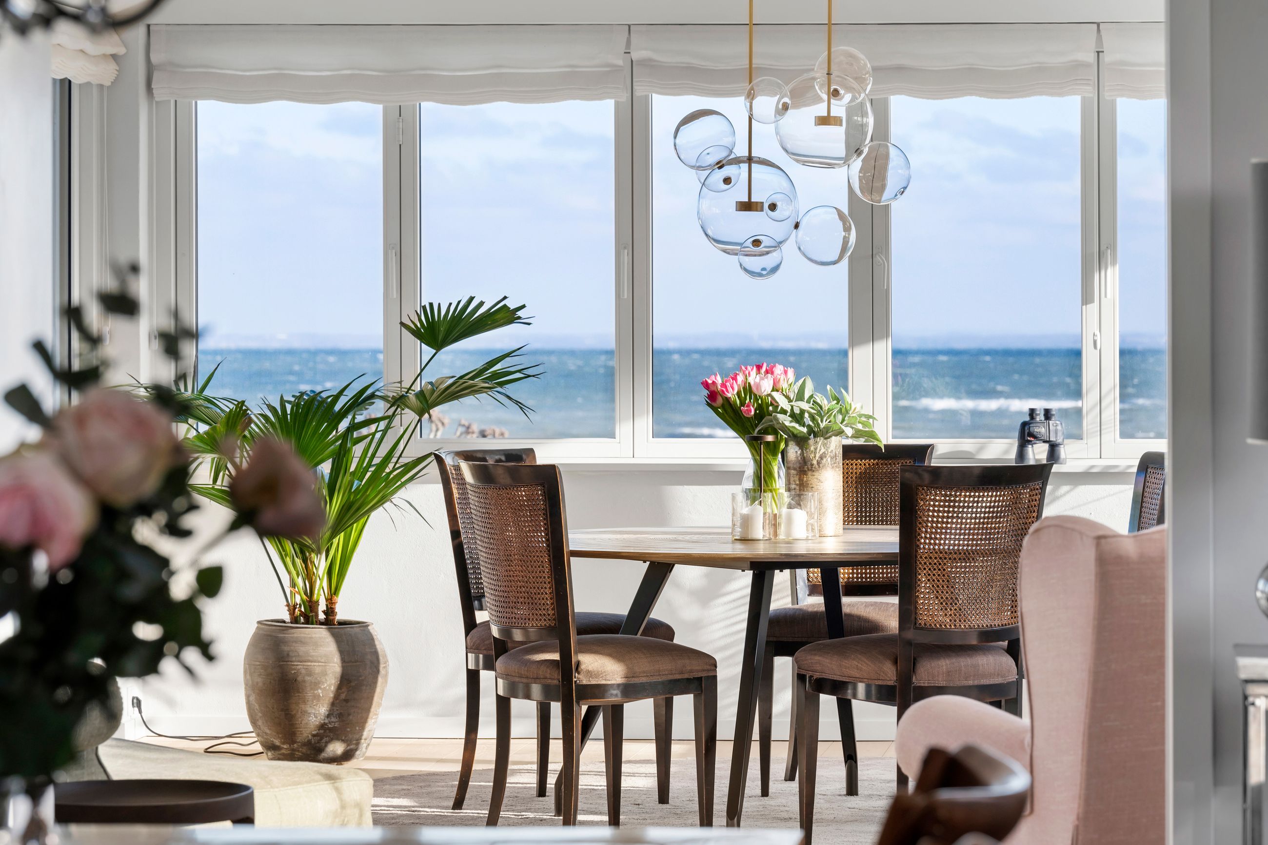 Ejendommen på Rungsted Strandvej ligger i operaens intermezzo i 1. række til stranden og vandet i Øresund. Både matrikel og huset fra 1954 ligger højt i terrænet med en udsigt, som ikke behøver at blive talt op. Selv på en blåfrossen hverdag med klar himmel, og hvor vandet vugger dovent og fastfrosset i flager og spejle, ja, der prøver udsigten ikke at trøste. Næh, den viser, hvor smuk verden også kan være, når den er kold nok til at tale sandt. Så smuk, at man på sådan en dag sætter sig på den nærmeste stol ude eller inde og beskuer det hele. En time forsvinder hurtigt på 5 minutter. Huset er på 293 m2, altså et stort strandvejshus med den skønneste syd- og vestvendte pool i lukket, ugeneret have. Garage med plads til 4 biler, udenfor er der plads til 3 biler. Alt er lige til at flytte ind i. Grunden er stor, 1.938 m2 skrånende ned mod stranden med privat badebrolaug.