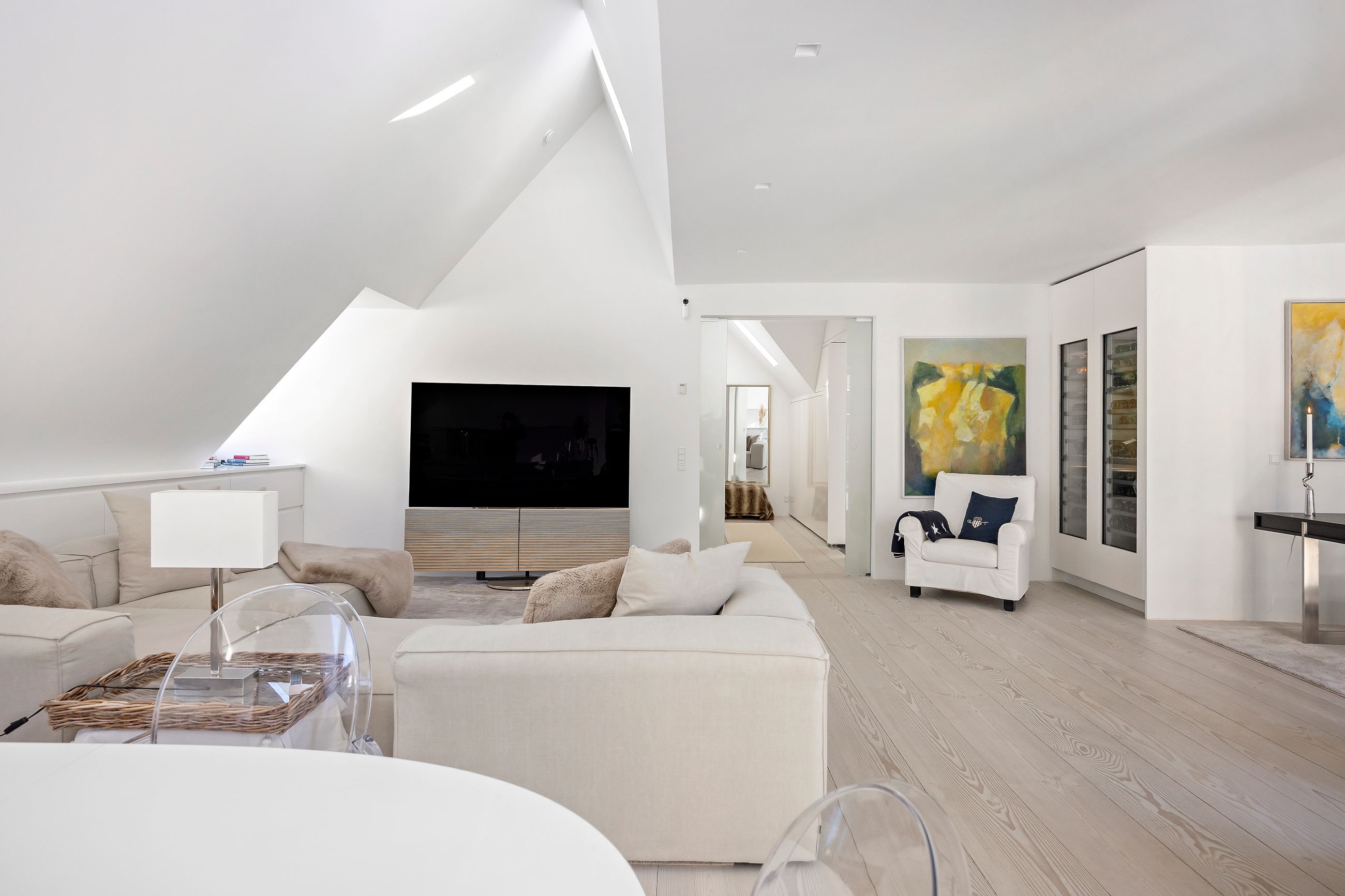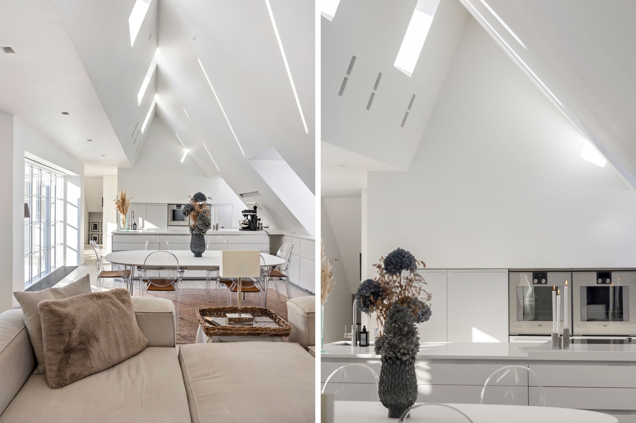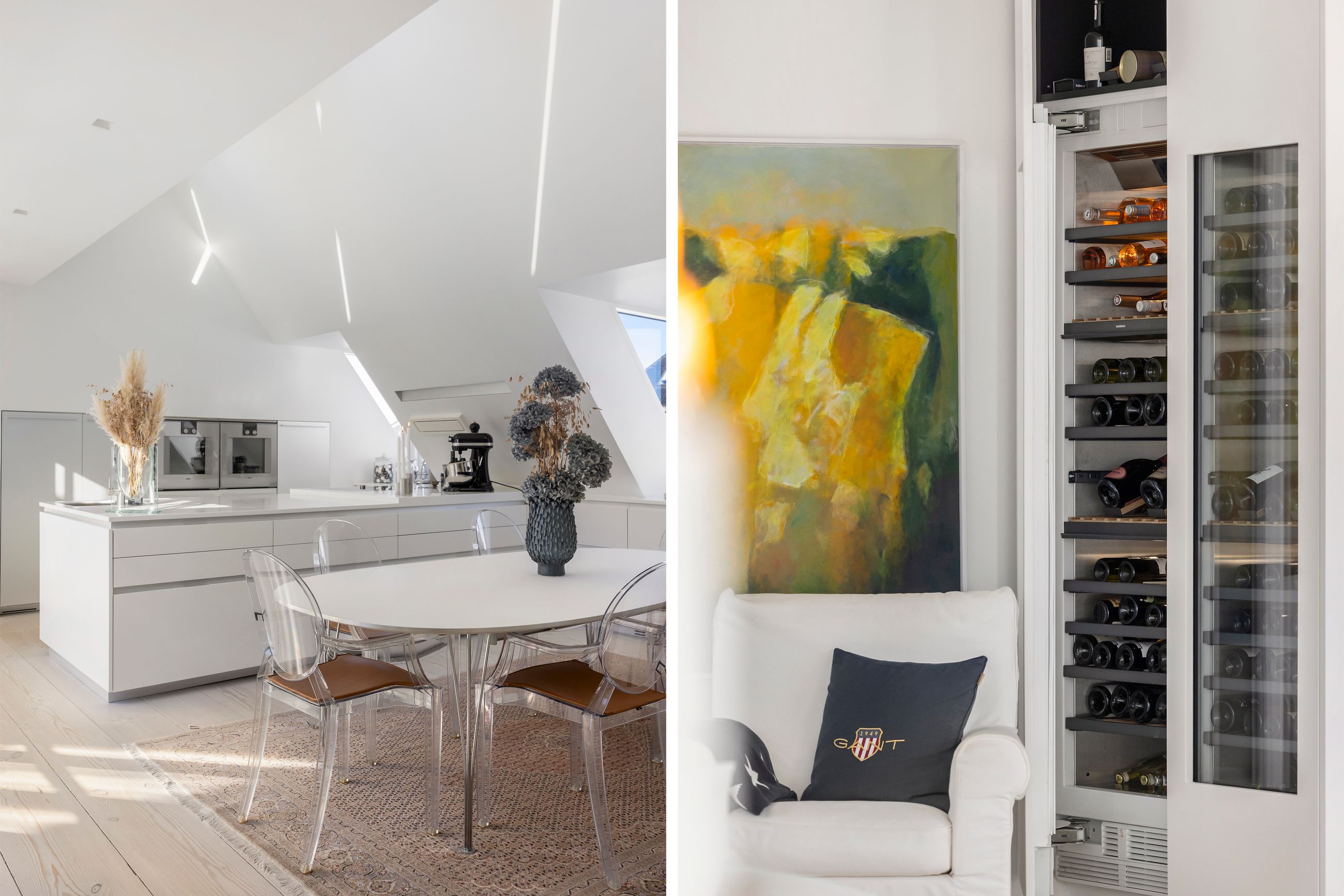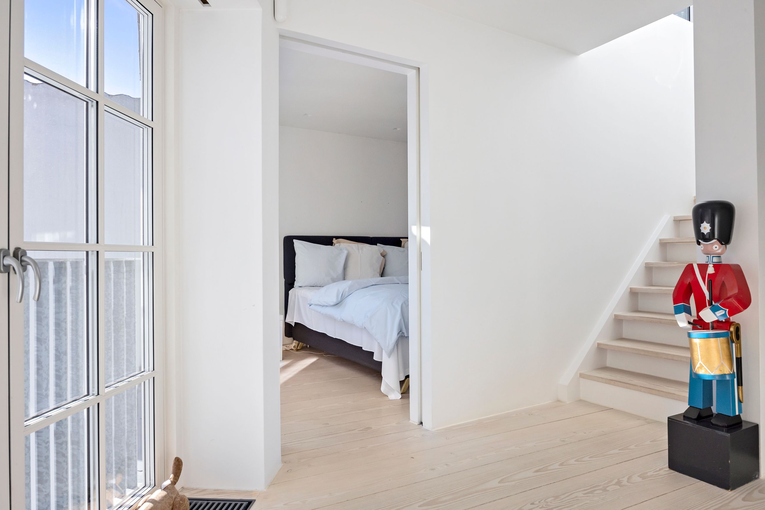 Og sikken plads. Kunne pladser vælge beliggenhed, ville de alle ligge, hvor Sankt Annæ Plads ligger. Ejendommen Sankt Annæ Plads 8 er fra slutningen af 1700-tallet, altså samme alder som oplysningstiden. Lejligheden på 4. sal er på 150 m2 med indvendig trappe op til privat tagterrasse på 45 m2. Sydvendt er terrassen, tusind tak, så her er der fred og ro, læ, pippende byfugle i luften og sol på maverne det meste af dagen. Uforskammet lækker er den, renoveret og lige til at flytte ind i. Den ligger solitært på etagen som sit eget, lille eventyr med gedigne, knastfrie, brede planker på gulvet, loft til kip, masser af lys, Gaggenau vinkøleskab, elektroniske Velux vinduer og 2 franske altaner. En hyggelig bonus er udsigten til Marmorkirkens kuppel og statuen af kirkemusikeren JPE Hartmann mod Bredgade.