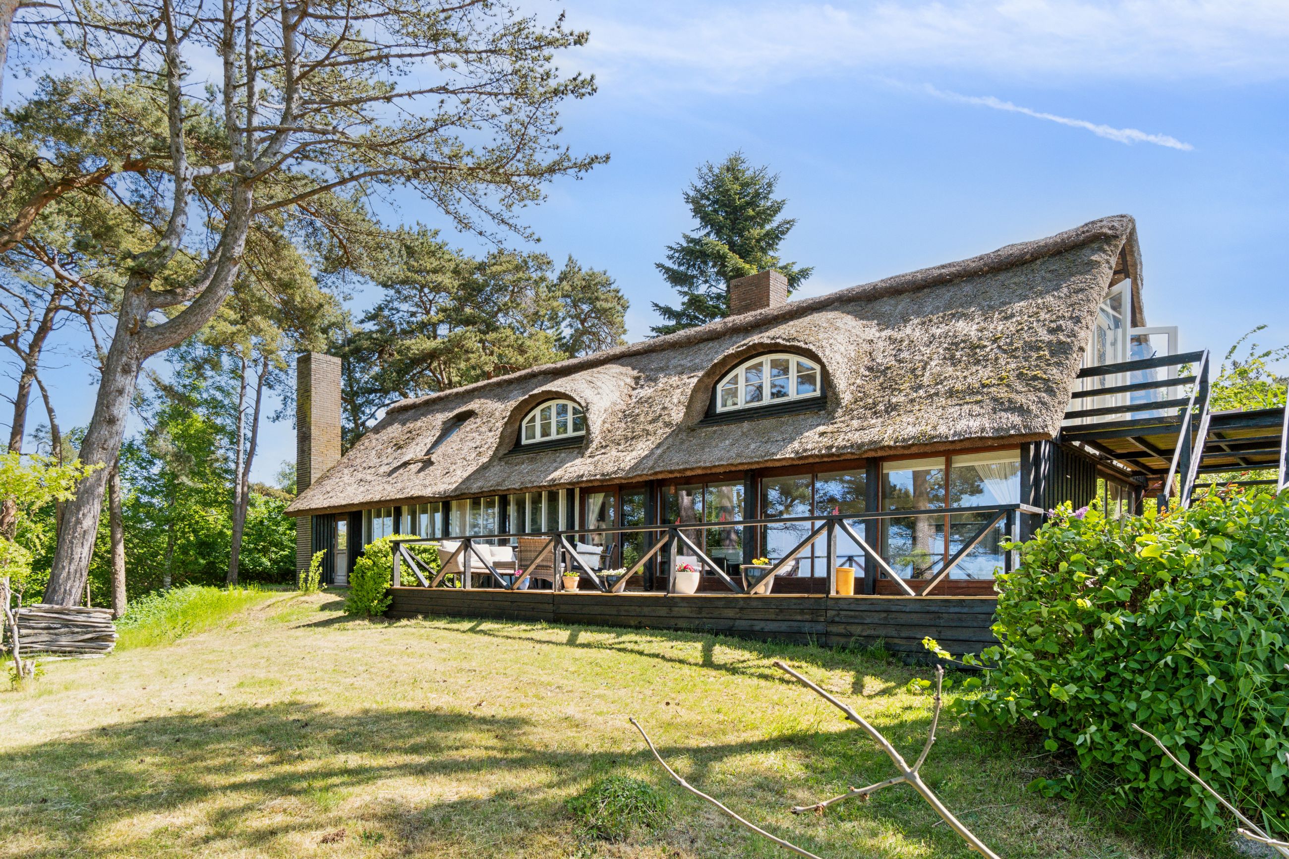 På Skadebakken 16, ja, lige dér, hvor bakken hæver sig som et stille åndedrag i landskabet, der står et stråtækt hus, som stod det for bare at posere mod himlen og lytte til vinden. Men altså, huset gør meget på samme tid, for det har også en af de allerbedste udsigter over Arresø og Tibirke Bakker. Vi er midt i naturen med marker og heste på fold, og selv om huset er fra 1960, så ser det ud som om det er vokset op af mulden lige efter en istidsgletsjer smeltede forbi for ti-femtentusind år siden, og efterlod det kuperede landskab og Danmarks største sø.