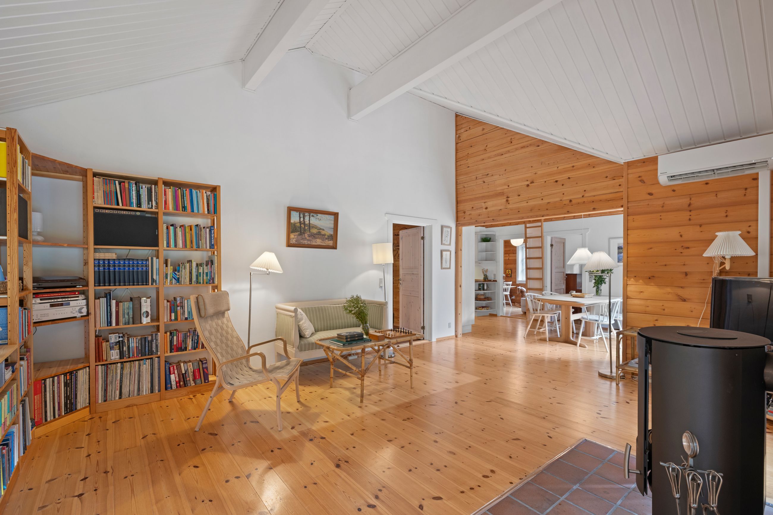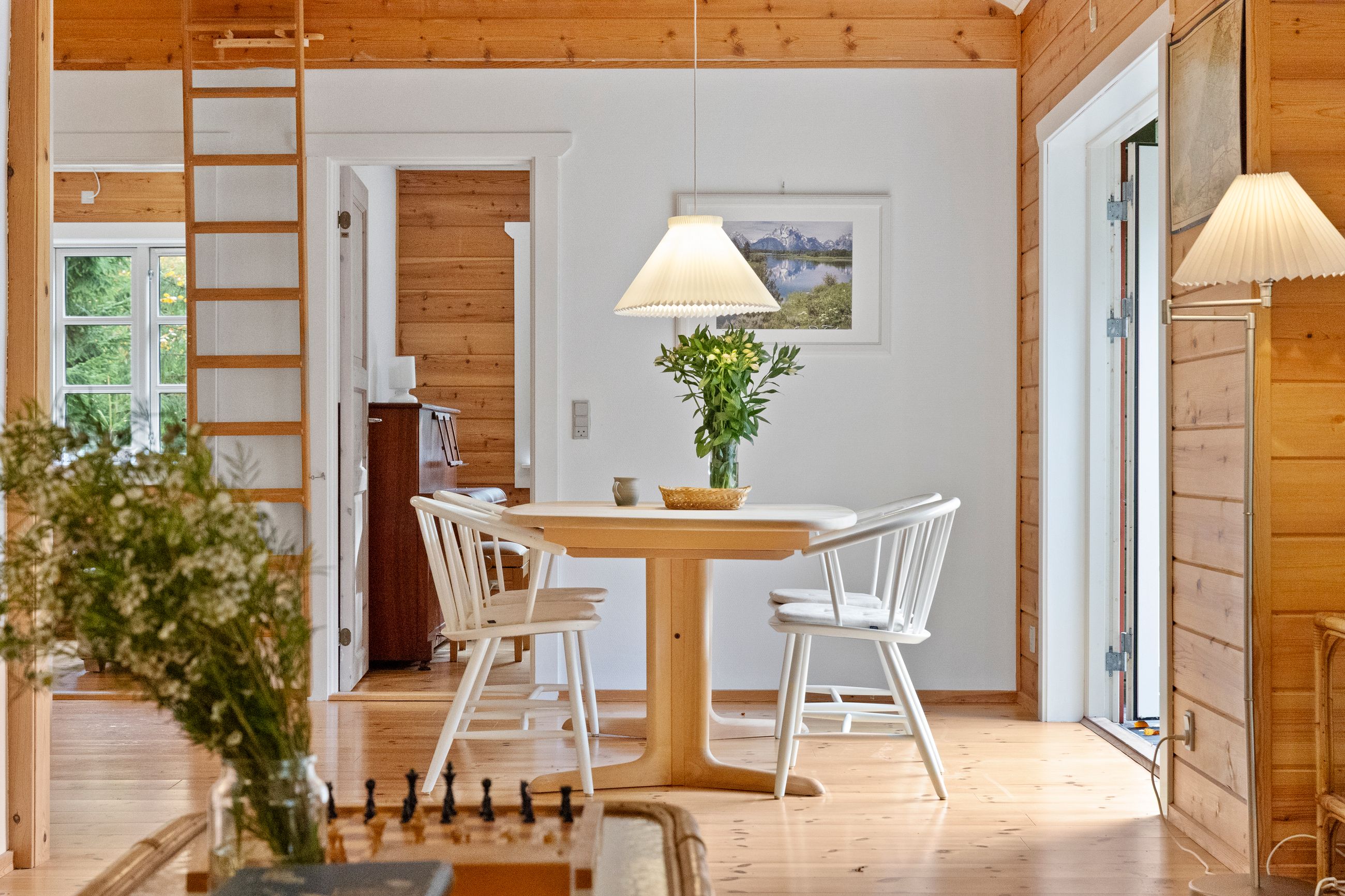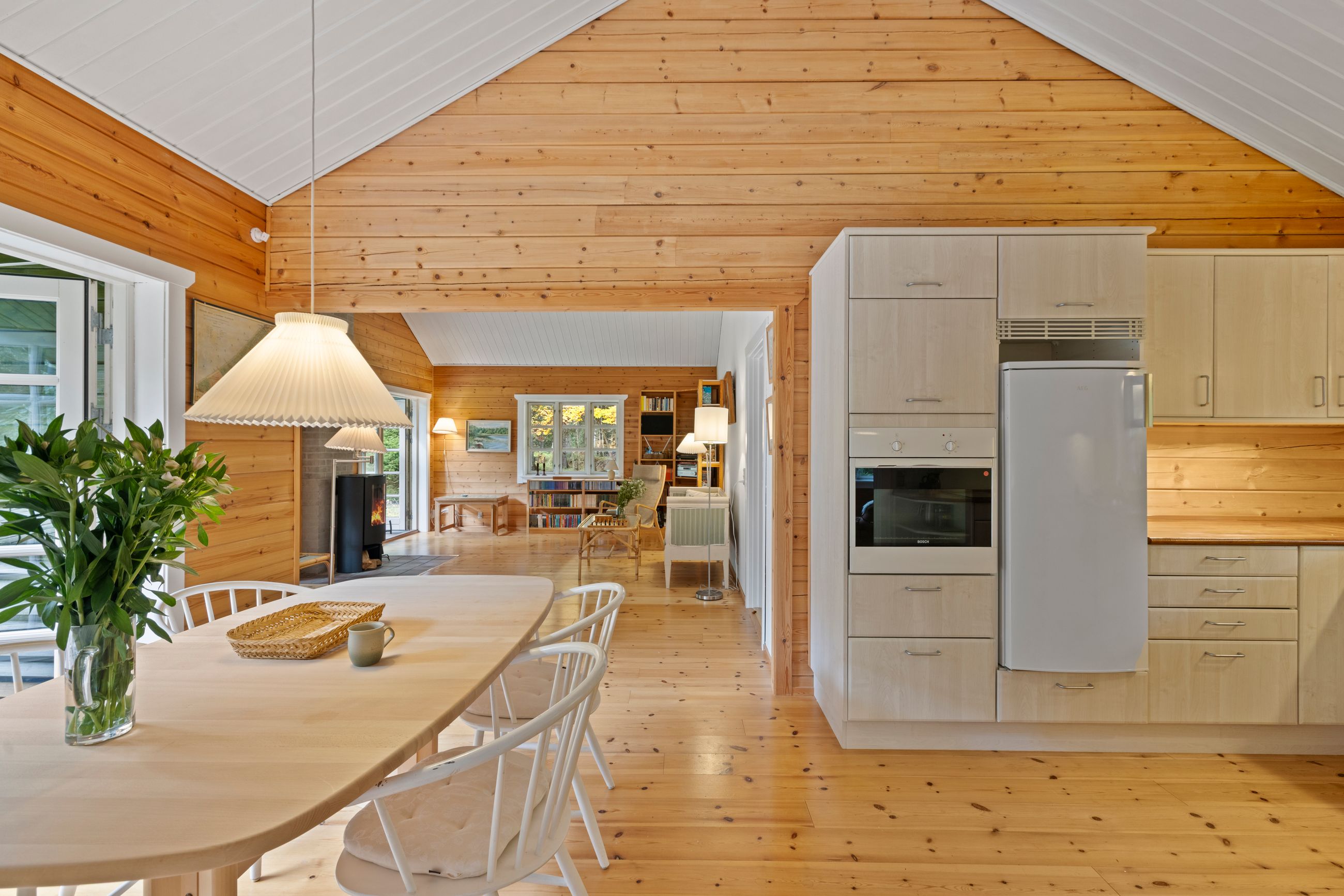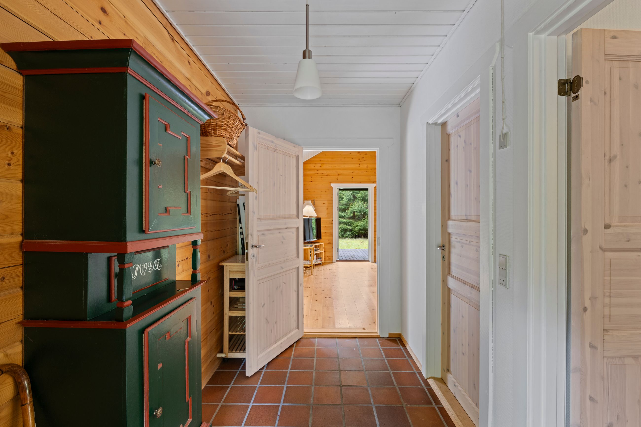 I dag har Tuse postnummeret 3300 Frederiksværk med Skjalm Hvide på et af vejskiltene. Matriklen på 2.268 er den første udstykning i kvarteret, og den ligger direkte til Tisvilde Hegn. Altså midt i den natur, som er Danmarks ældste klitplantage, skabt for at bekæmpe sandflugten, der ødelagde alt i 1600-tallet. Grunden er vild med vilje, om man vil det eller ej, for grundejerforeningen har en vejviser for, hvad man må, og ikke må plante. Mange tak, siger skovens mange dyr, de vilde blomster, kantarellerne og de andre svampe på de store, åbne naturgrunde. Sommerhuset er bygget i 2003 med al den charme, der kun kommer i et bjælkehus med hvide sprossevinduer. Med 89 m2, flere soveværelser og hems er her masser af plads til familien med børn. Bare 10 minutter er der på en bedstemorcykel til en af de bedste badestrande på Sjælland.