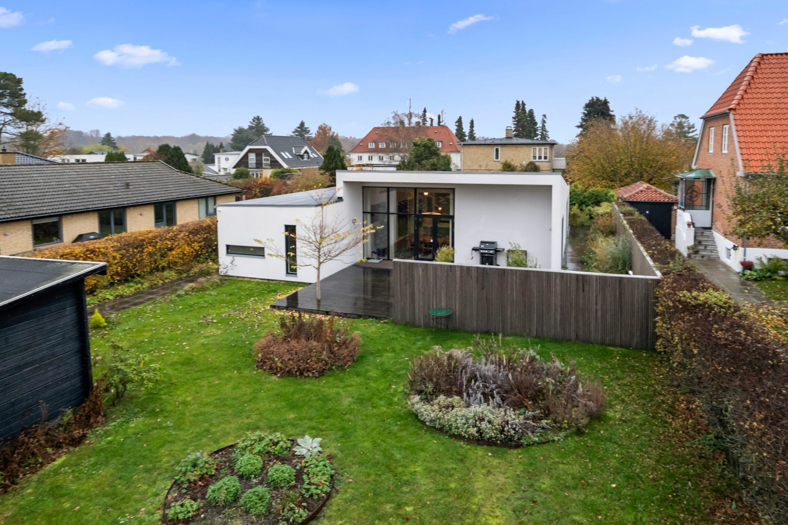 Men den historie er det arkitekttegnet hus på Skovbakkevej 12 for ung til at vide, for det er så nyt som fra 2010. Ikke meget vedligeholdelse her de næste mange, mange år. Med 196 m2 er det et klassisk indrettet hus til familien med børn. Forældre har deres afdeling, børnene deres, så er alle glade. Her er alle de lækre sager som gulvvarme, højt til loftet, store vinduer, masser af lys, lækre badeværelser og lækkert køkkenalrum, fordi sammen er det bedste sted at være. Grunden ligger højt i terrænet, og er på 788 m2 med flere terrasser. Altså sol hele dagen.
