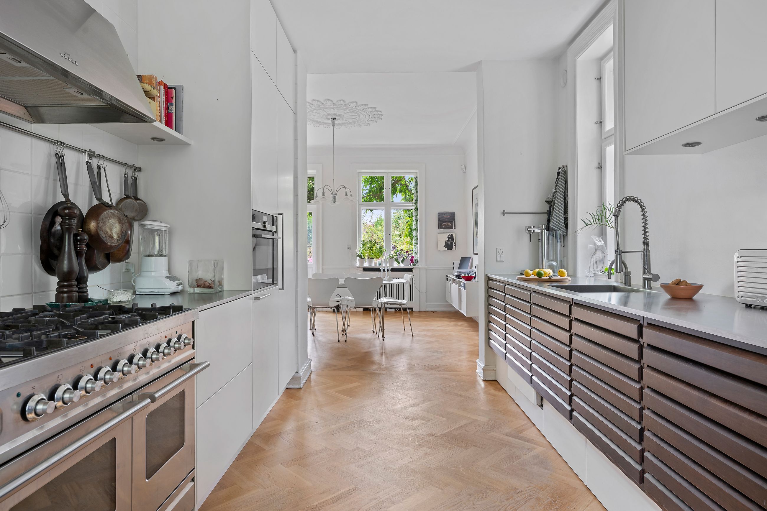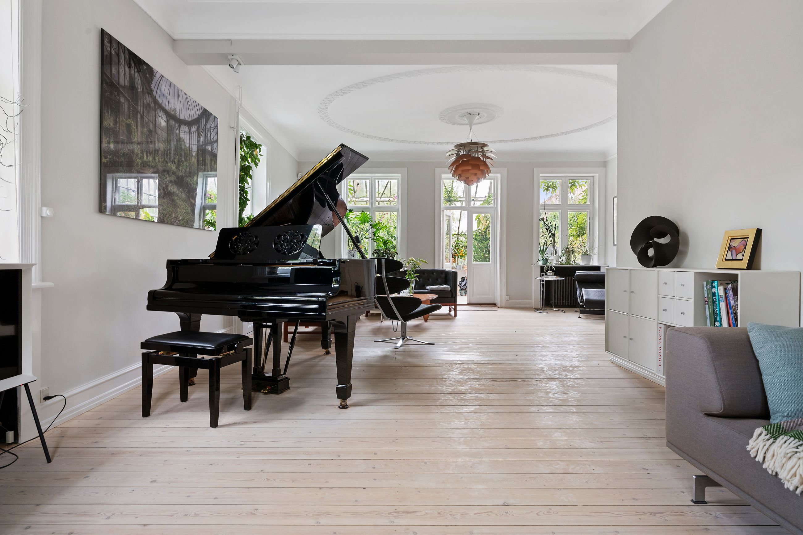 Carlsbergkvarteret er også det mest attraktive villakvarter i København med gamle træer, haver og historiske villaer. Her står den smukkeste ejendom højt med stor udsigt på Skovbogårds Allé 2 fra 1928 som den fineste repræsentant for nyklassicismen. Med 325 etagemeter, hvor de 115 m2 ligger i underetagen, er det et hus med plads til meget af hvert. Stuk og rosetter i loftet, tunge døre, en beåndet vinterhave, smukke gulve, lækkert køkken, charmerende badeværelser. Aftensolen spejler sig i Jesuskirken, alt er velholdt og lige til at flytte ind i.