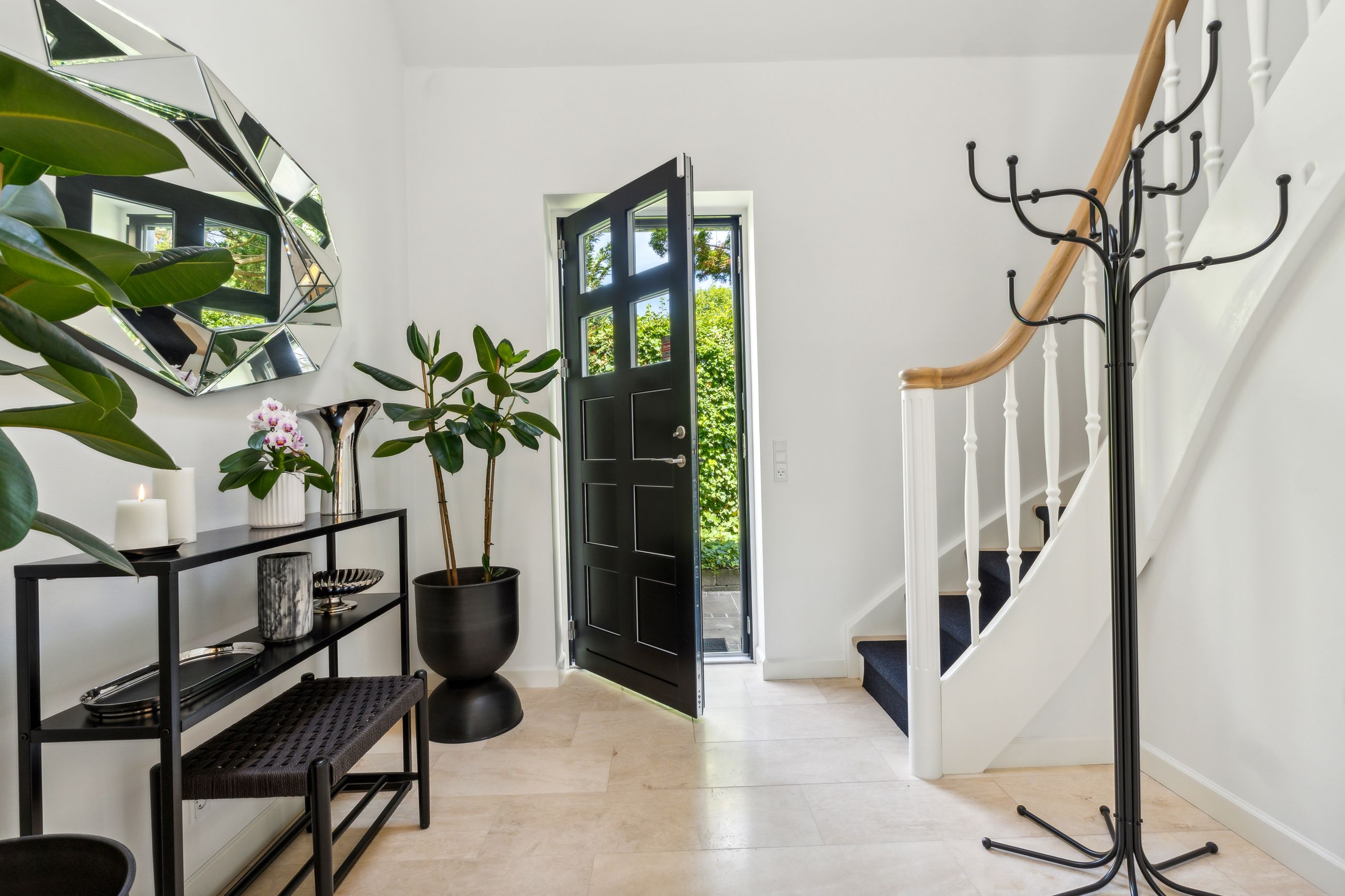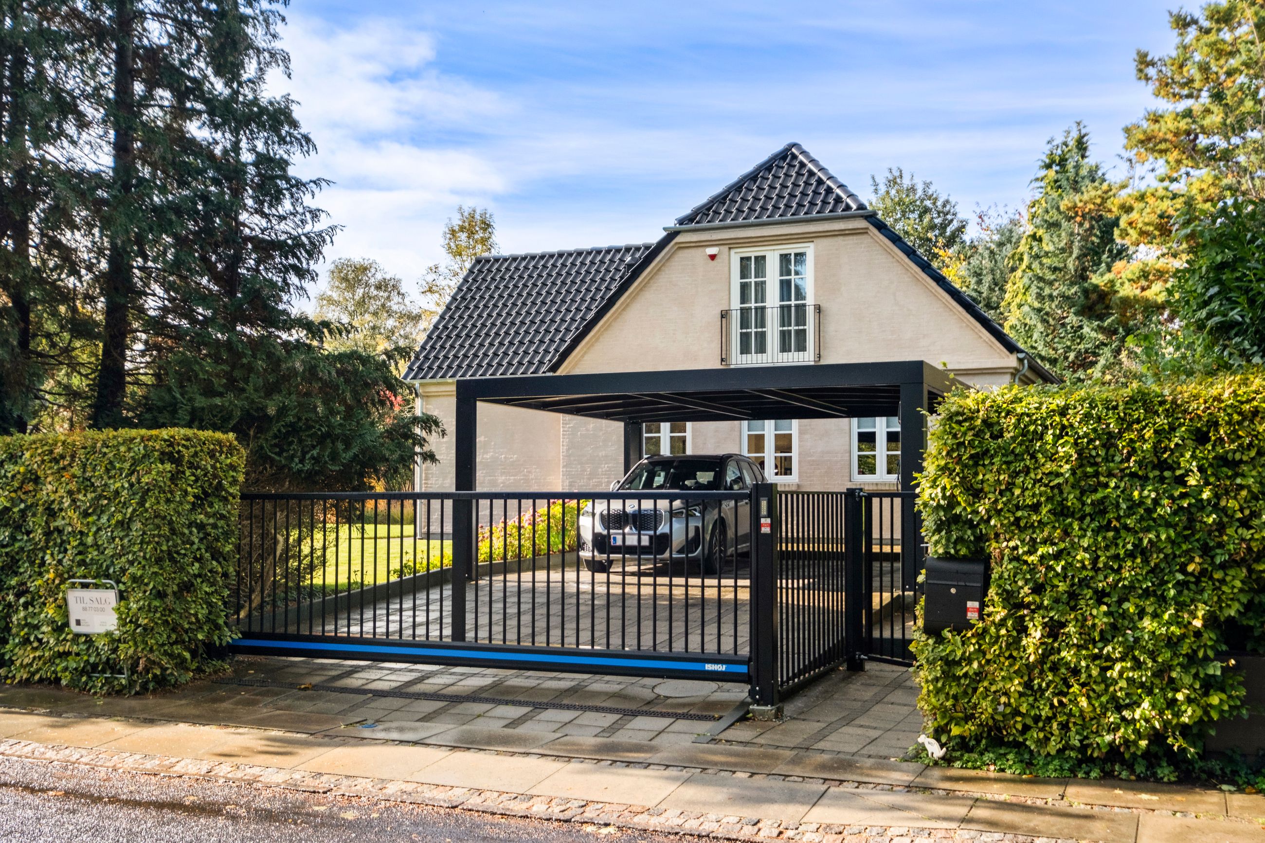 Villaen på Skovridergårdsvej er såmænd bare fra 2016. Med 189 m2 er den skræddersyet til familien med børn. Er børnene mindre, er stueetagen den ideelle afdeling til dem. Er de større, kan 1. salen nemt ændres til en separat teenageafdeling. Huset er et superlavenergihus, det koster ikke meget at varme op. Orangeriet på små 20 m2 er husets bedste rum. Her kan man sidde hele året og kigge ud i det uendelige univers og tælle stjerner, hvis man har tid og lyst til det. Haven er omkranset af gamle træer og store hække. Ja, her kan man ligge ugeneret på terrassen og slikke sol. Det er kun himlens engle og fugle man generer. Altså, og så lige en bonus: Smuk, fjernbetjent aflukket port og dobbelt carport. Jah, der kan man bare se.