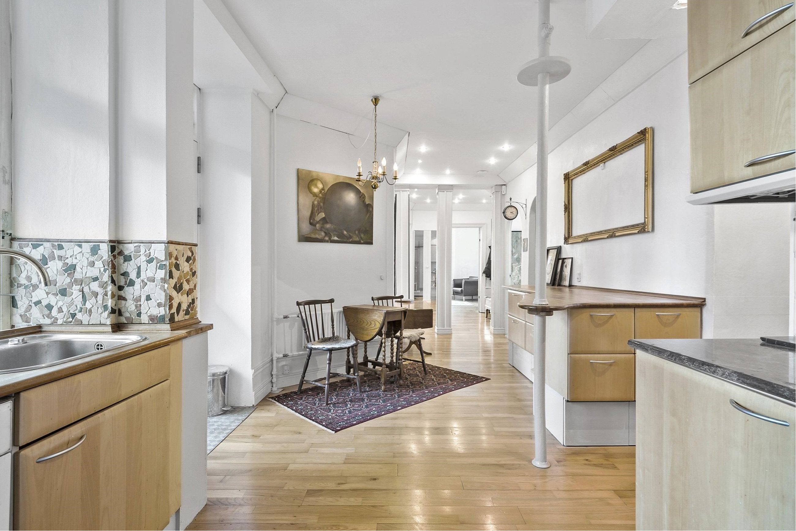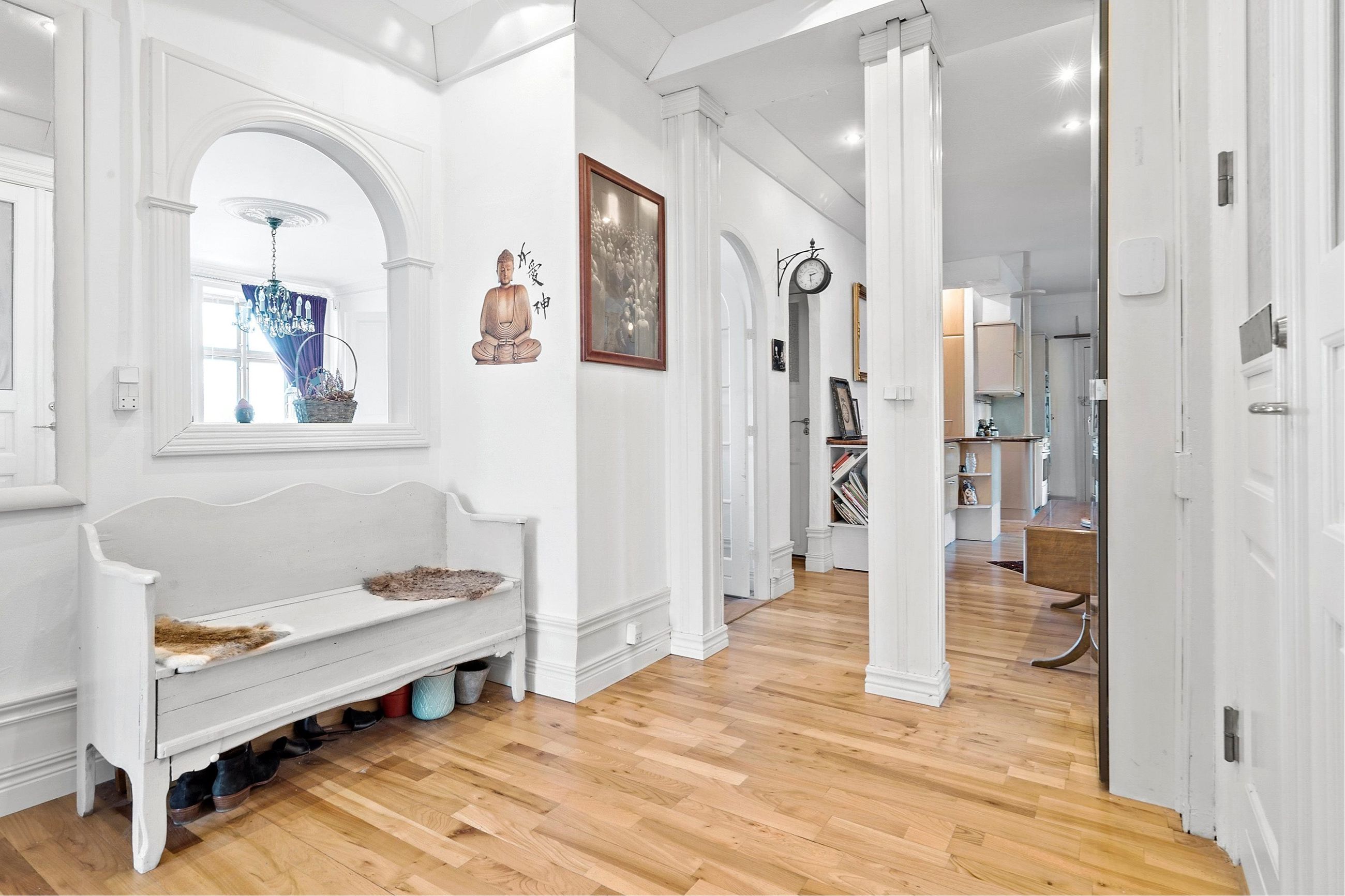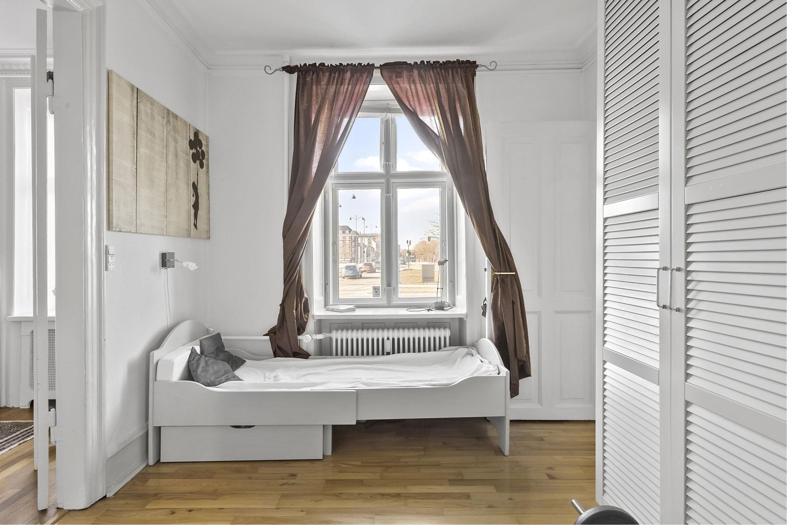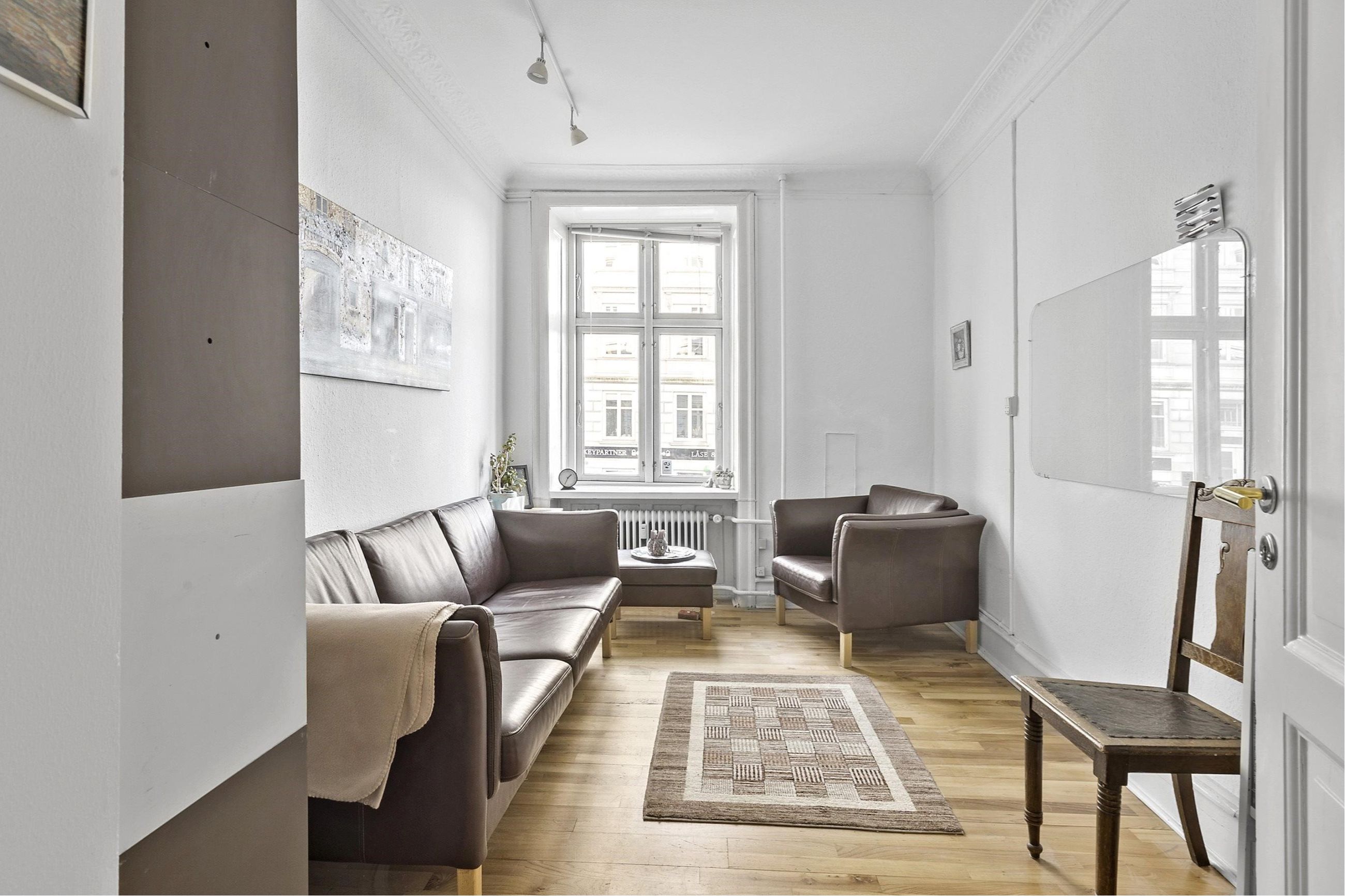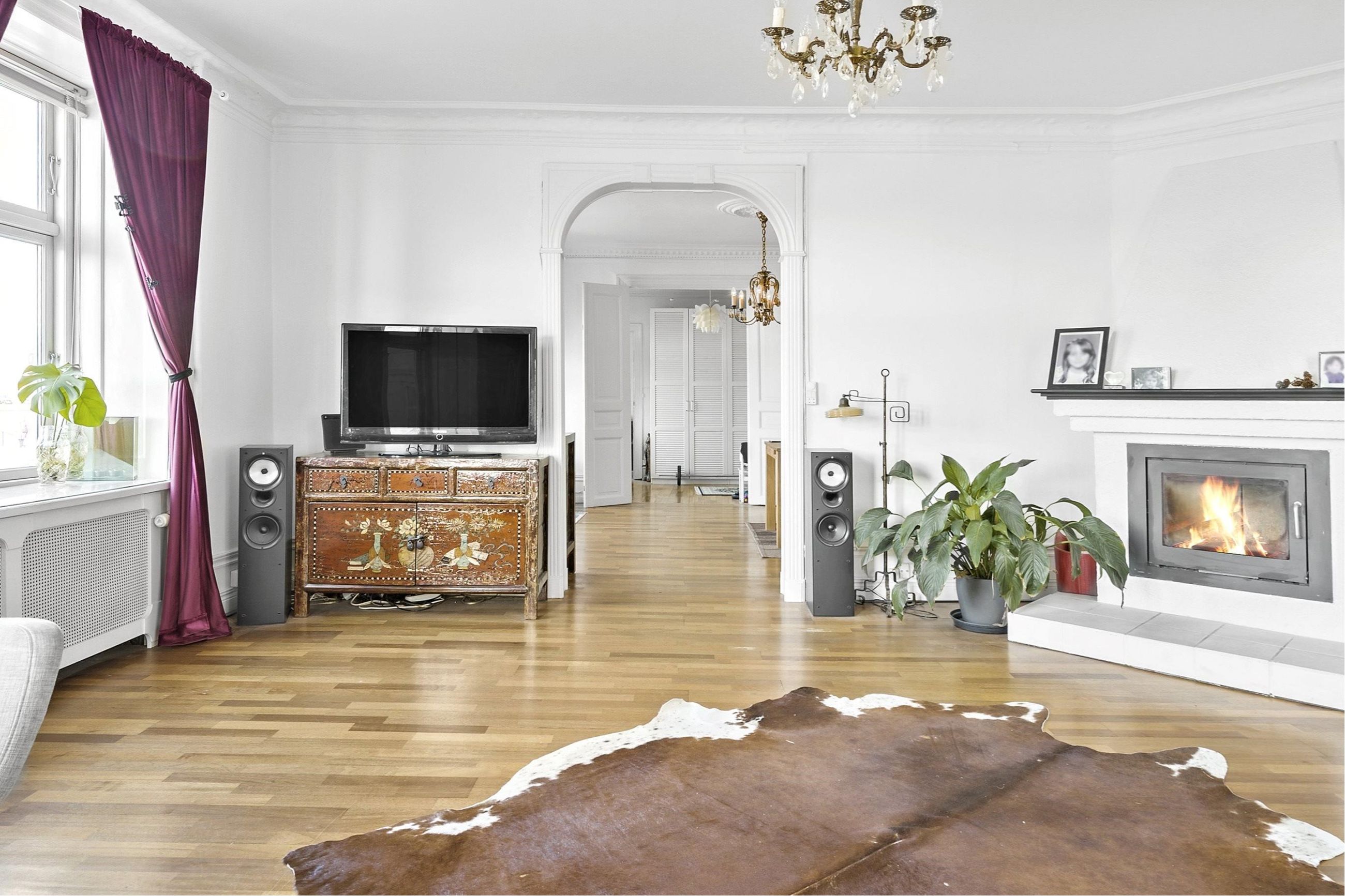 Mezzaninlejligheden i Sølvgade 104 er en af de store herskabslejligheder i København. Den er en hjørnelejlighed, og hjørneligheder har som bekendt den største udsigt og et lys, der drysser ind fra flere verdenshjørner. Her er højt til loftet i mere end én forstand. Ildsted, stuer en suite, masser af værelser, høje paneler, stuk, rosetter og tunge fyldningsdøre. En lækker lejlighed for familien med børn, men også for det modne par, som er storforbruger af kulturen i København.