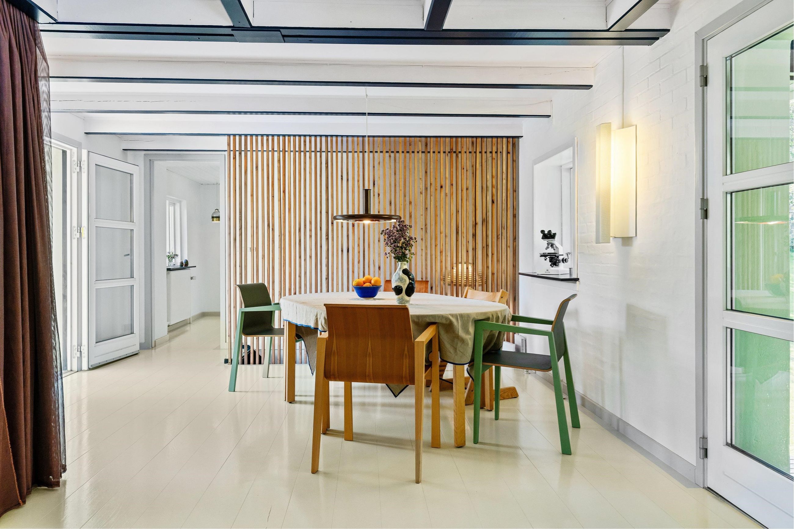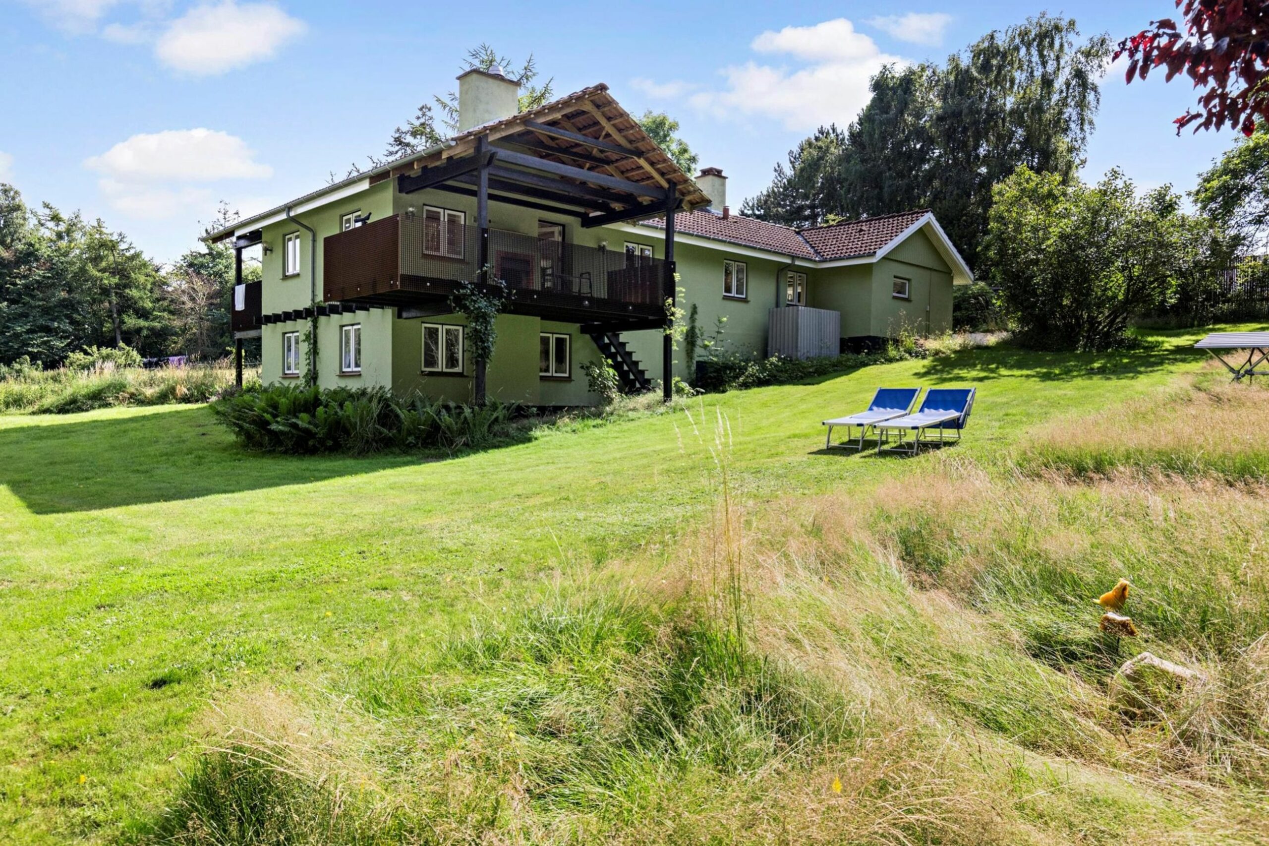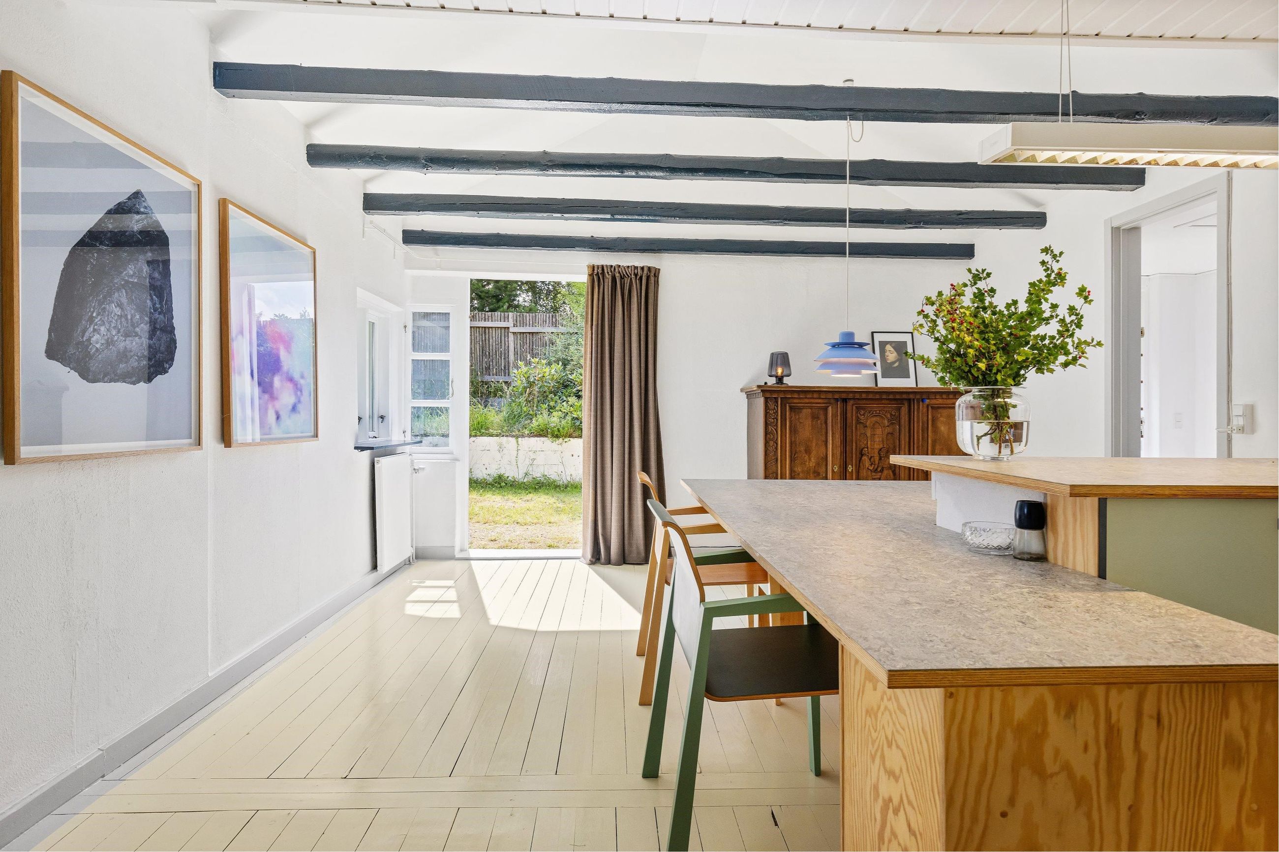 Søndre Skovvej 39 er bygget i 1950 ind i en bakke på en kuperet 6.180 m2 stor grund. Nuværende ejere har de sidste par renoveret alle 192 m2 på de 2 etager og den halve underetage. Og det er gjort med smil, mod og kærlighed til underspillede farver, detaljer og design. Det samme gælder gæstehuset, som med hems har masser af plads til venner på besøg.