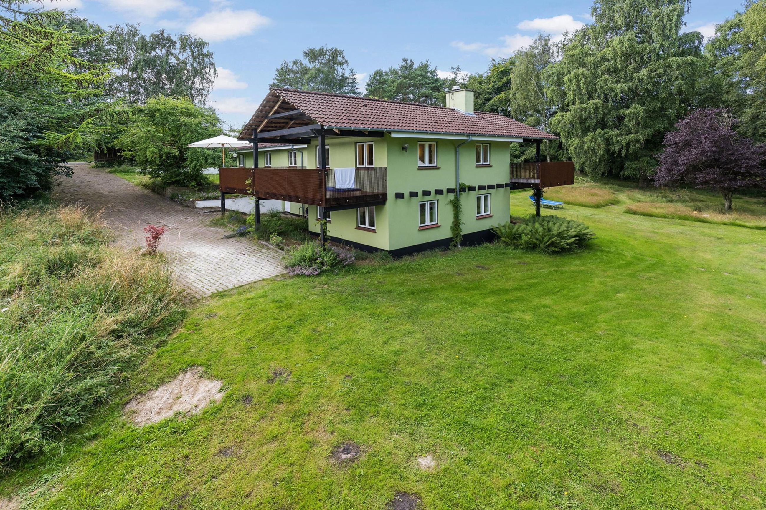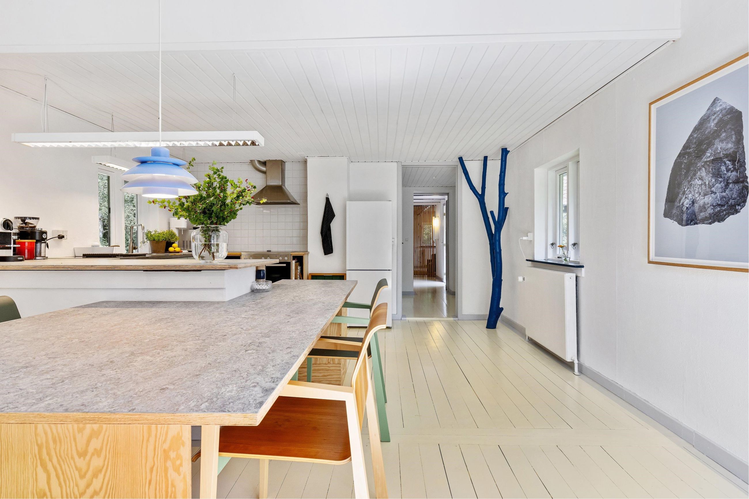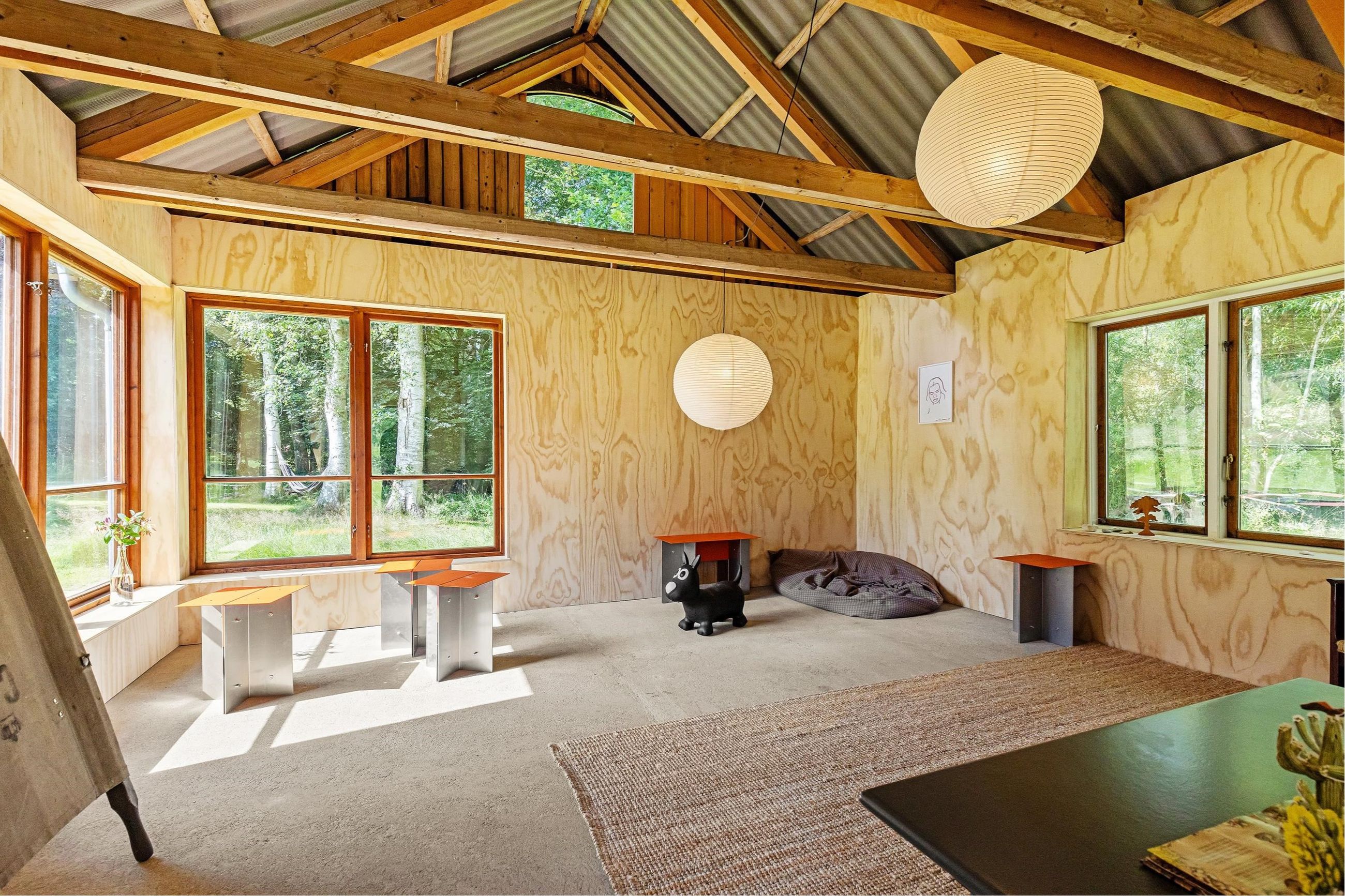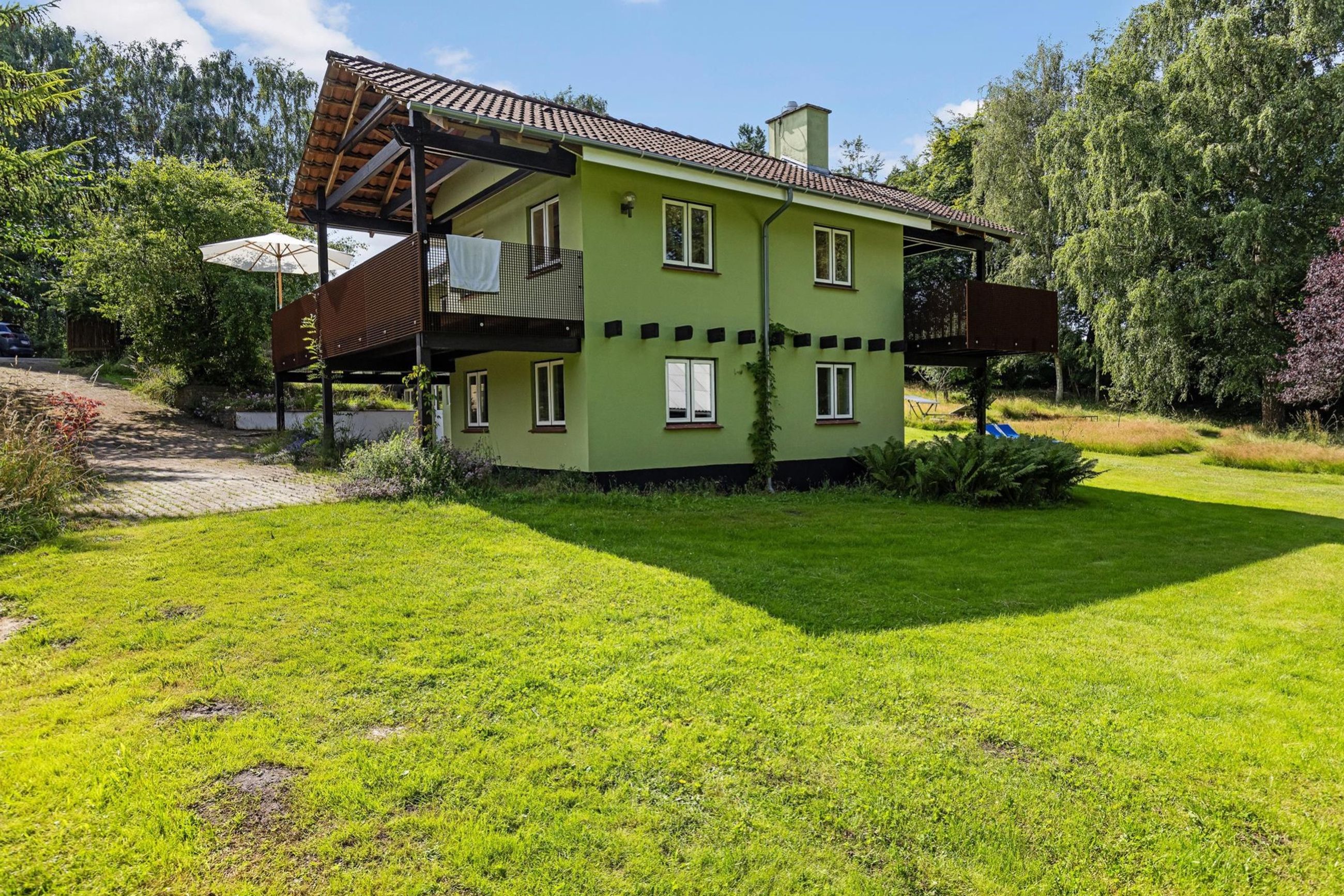 Søndre Skovvej 39 er bygget i 1950 ind i en bakke på en kuperet 6.180 m2 stor grund. Nuværende ejere har de sidste par renoveret alle 192 m2 på de 2 etager og den halve underetage. Og det er gjort med smil, mod og kærlighed til underspillede farver, detaljer og design. Det samme gælder gæstehuset, som med hems har masser af plads til venner på besøg.