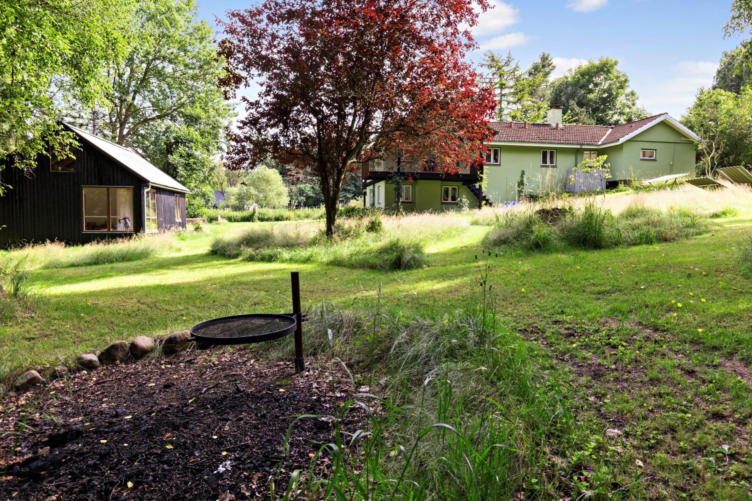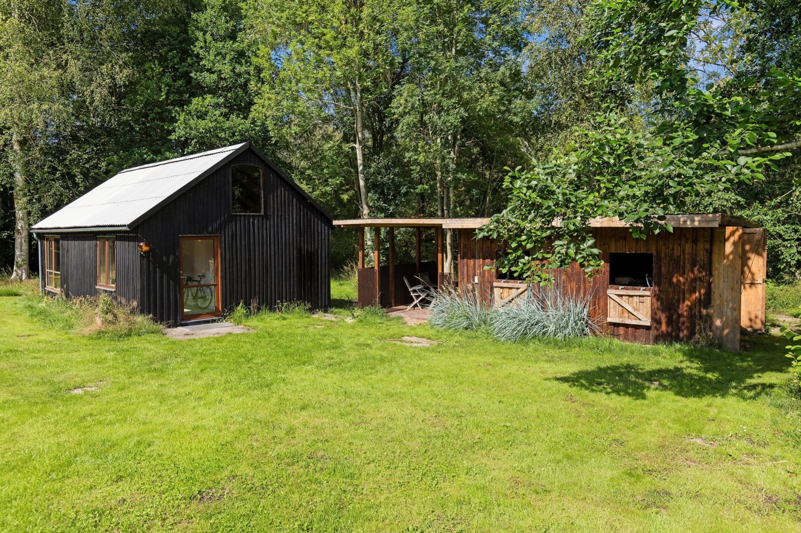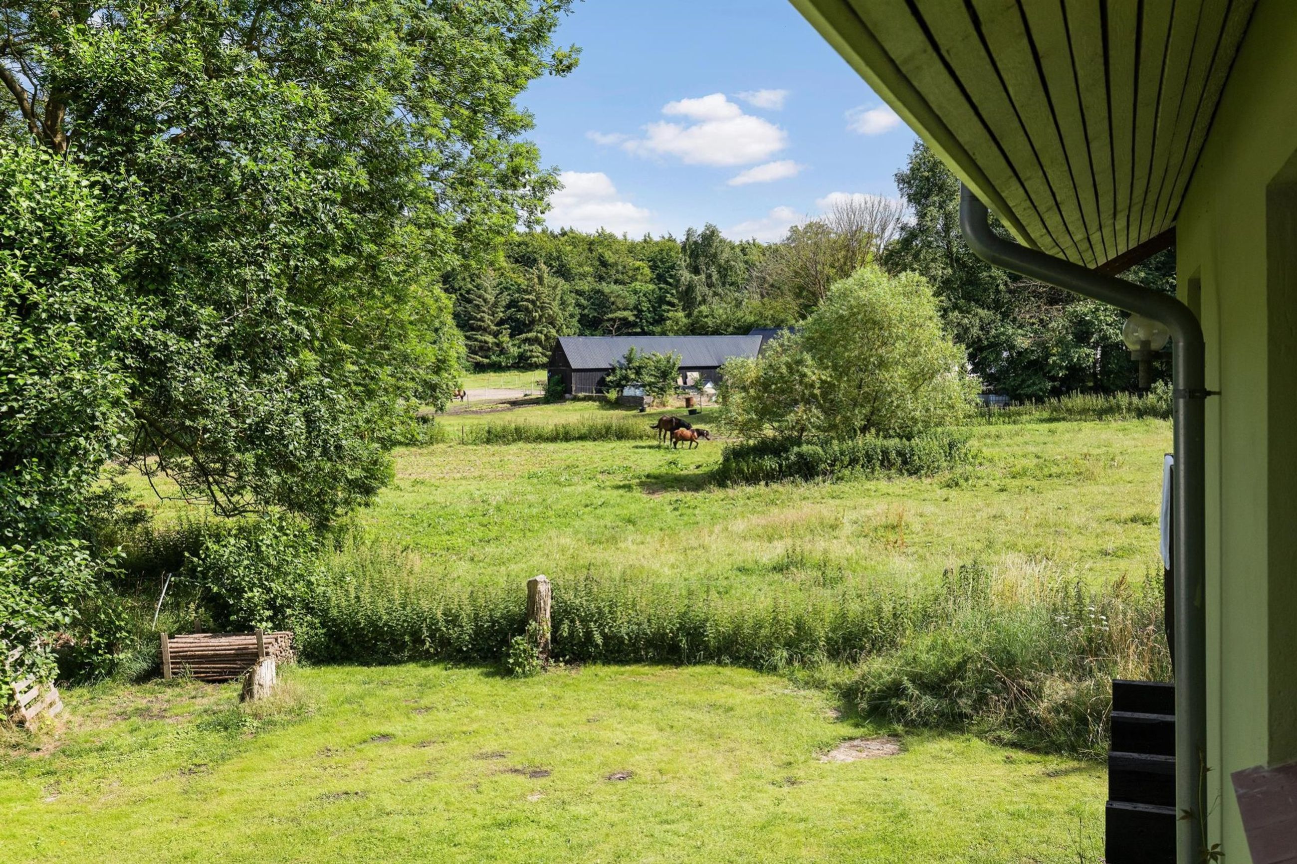 Der er den smukkeste udsigt fra terrasserne, som er syd- og vestvendte, så her er der sol på blege maver og æblekinder hele dagen. Naboen er Jyderup Skov, en gammel plantageskov med store nåletræer og århundredegamle ege- og bøgetræer.