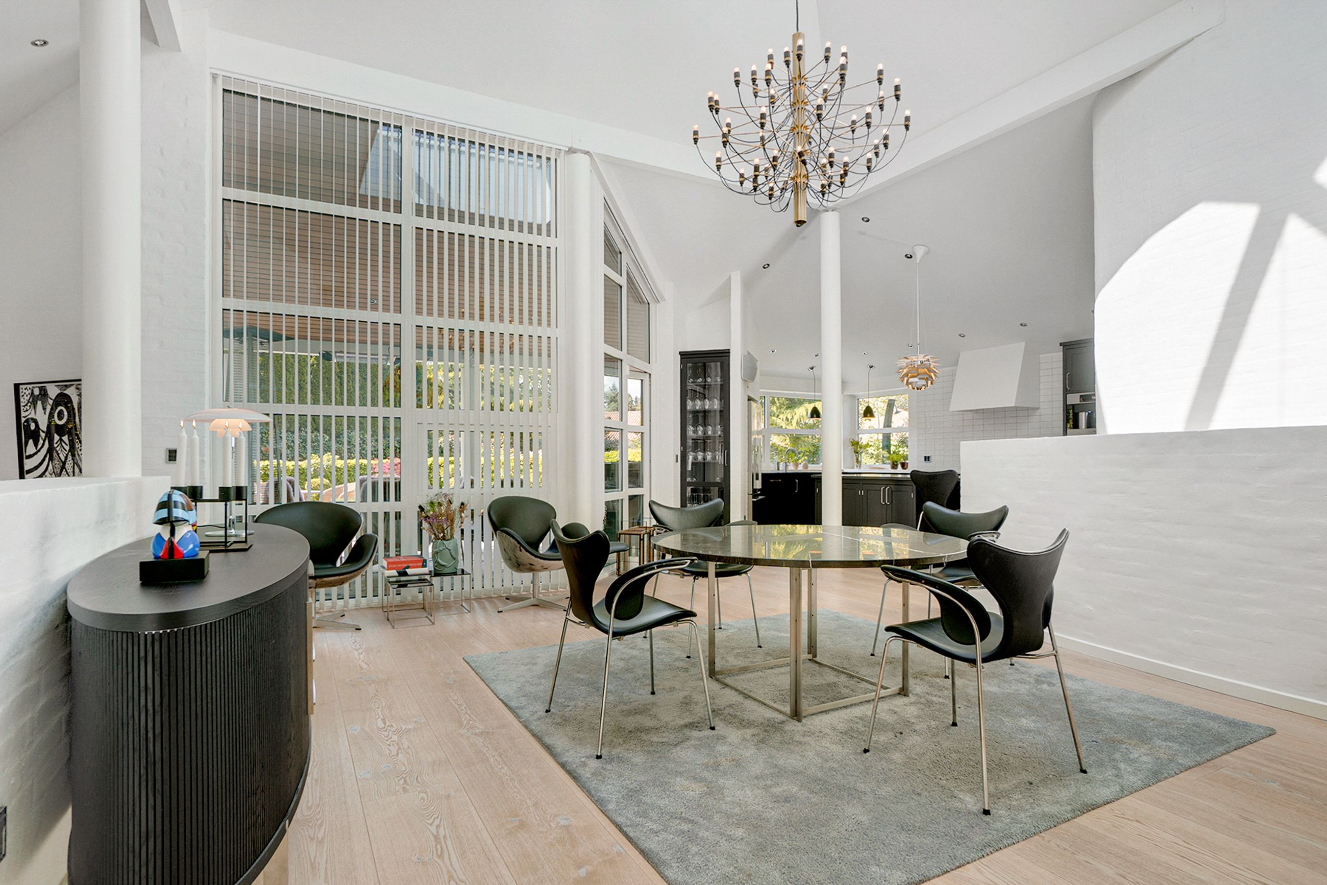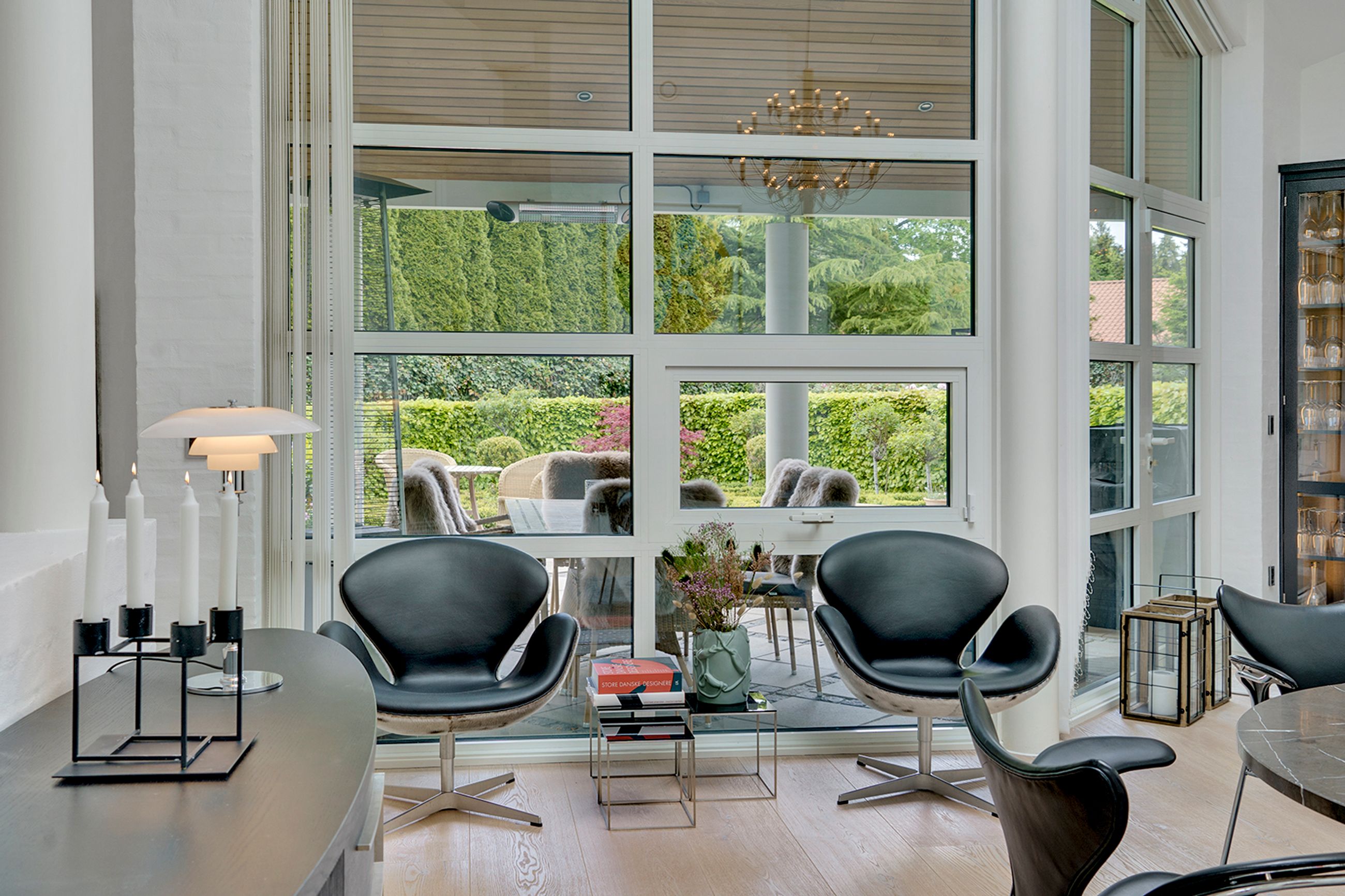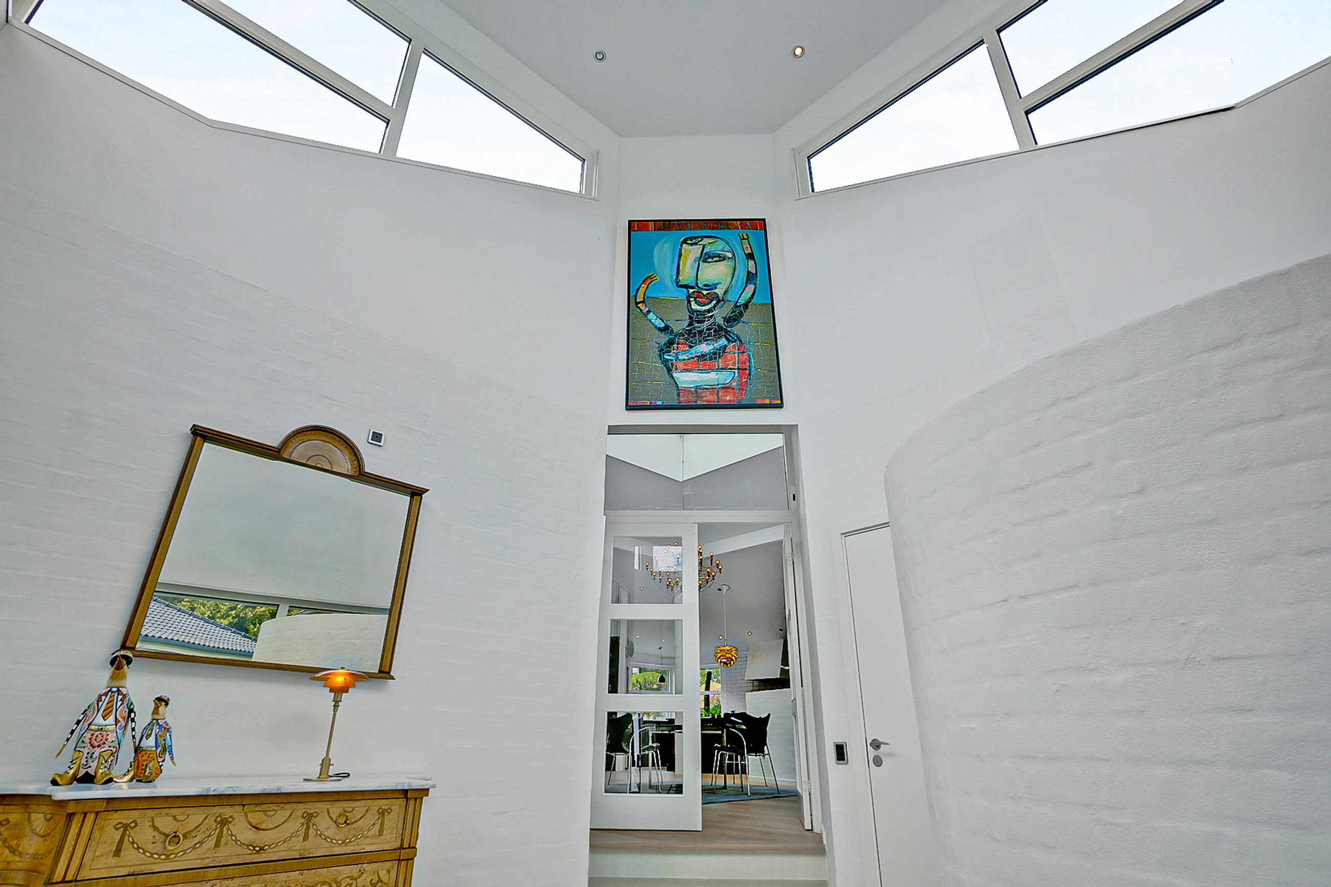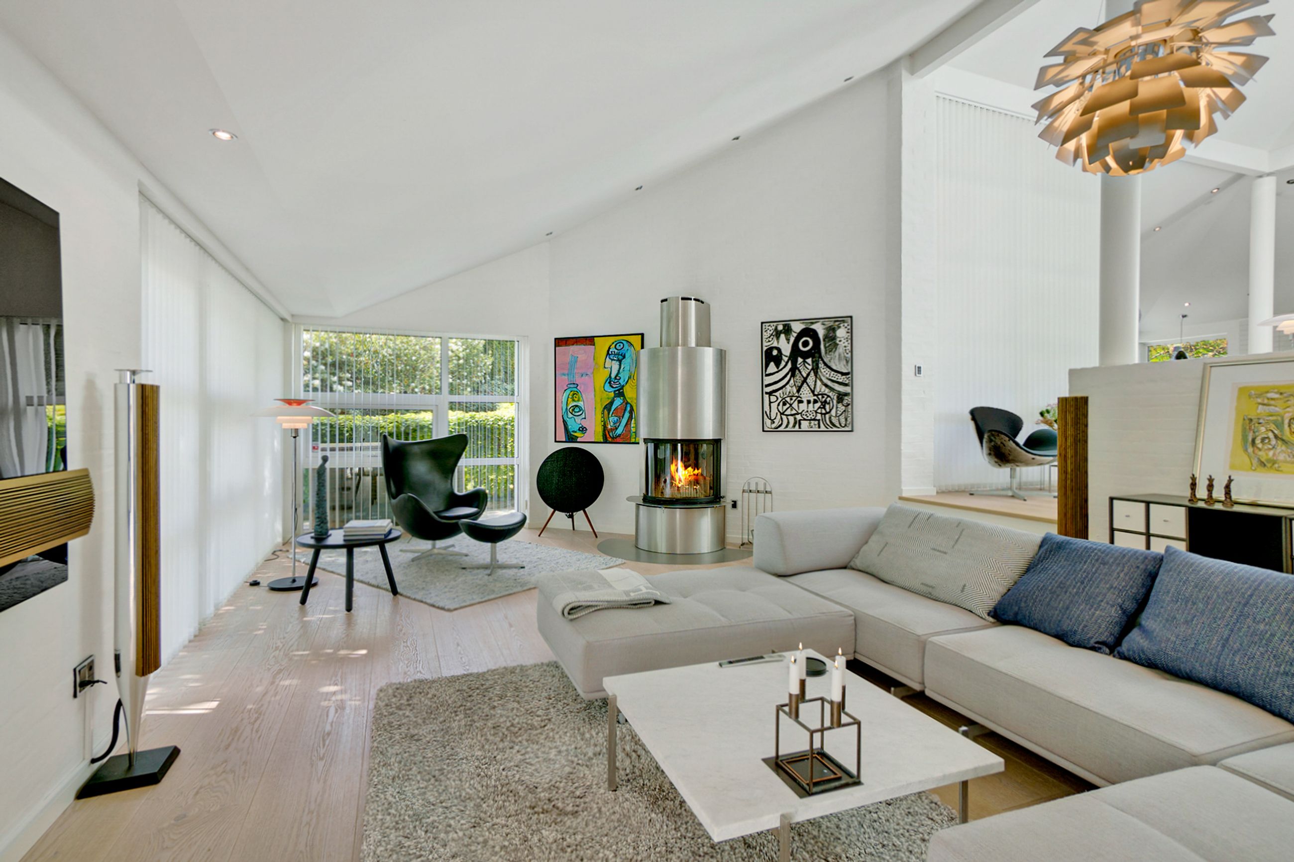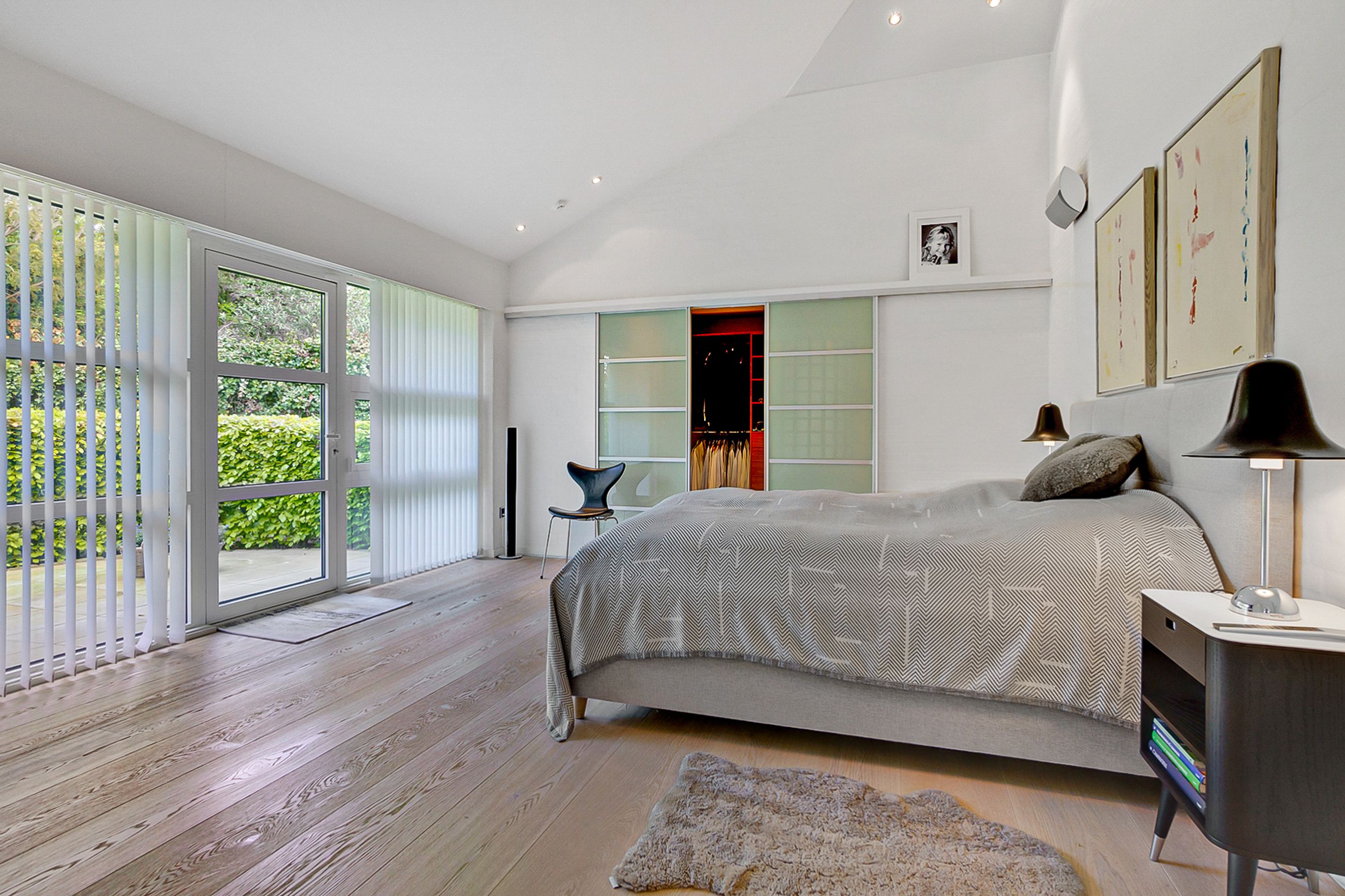 Huset på 421 etagemeter, hvor de 149 m2 befinder sig i det høje lyse kælderplan, er bygget i 2000 på en 2000 m2 grund. Det er gennemrenoveret for 4 år siden med dansk arkitektonisk enkelhed og materialer i højeste kvalitet. Helt klar til indflytning. Her er så lyst overalt. I det solbeskinnede center af huset kigger man op mod himmelen, og derfra når man både stuerne, det temperaturstyrede vinrum og den rummelige vinkælder, spa, soveafdelinger og teenage-afsnit. Ude er der terrasser, der fanger solen på ethvert tidspunkt af dagen, og den, der er vendt mod aftensolen, er naturligvis opvarmet og har udendørs ildsted.