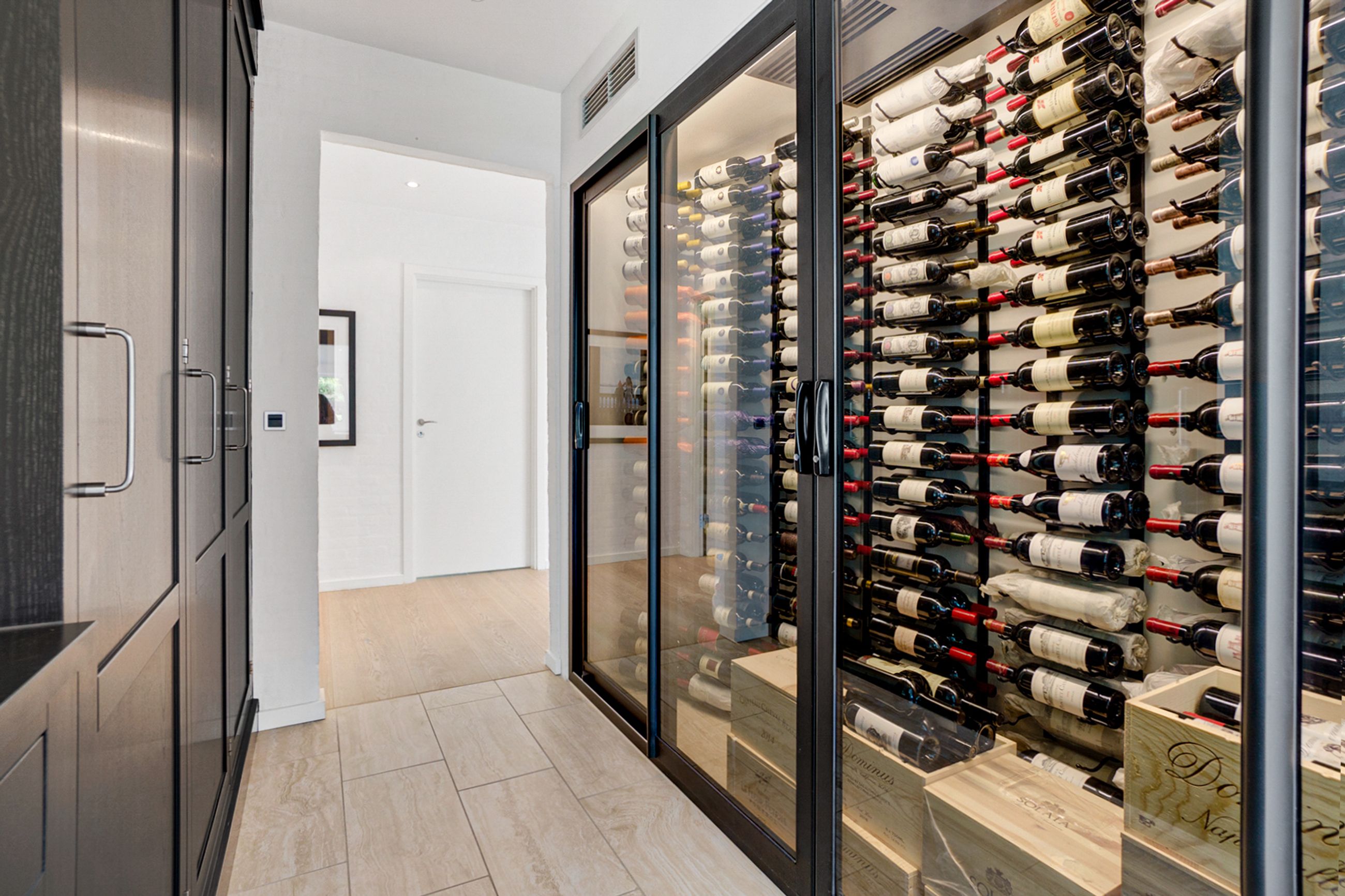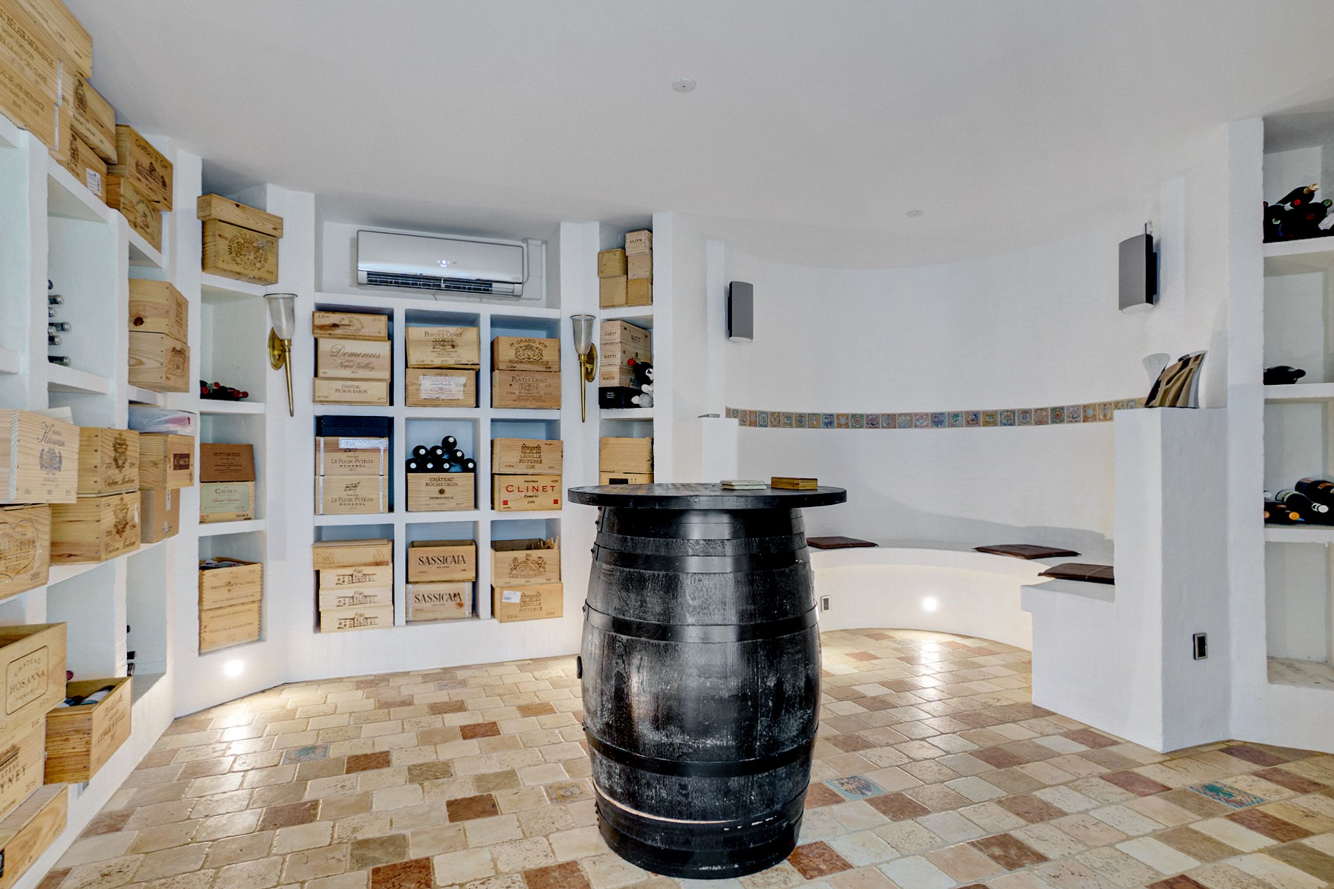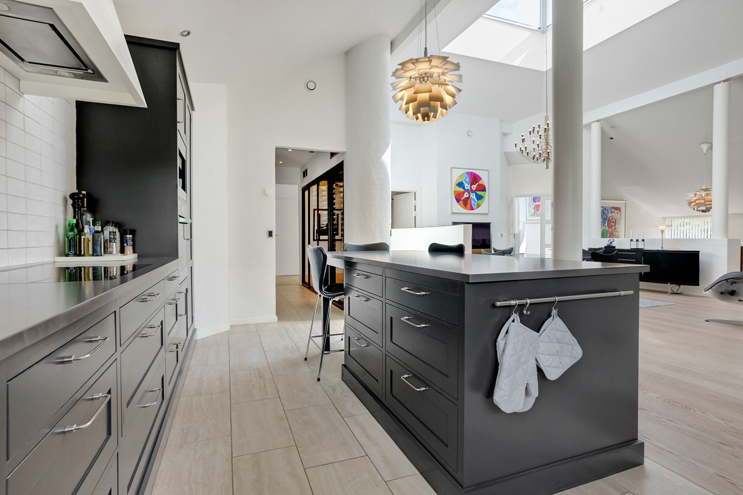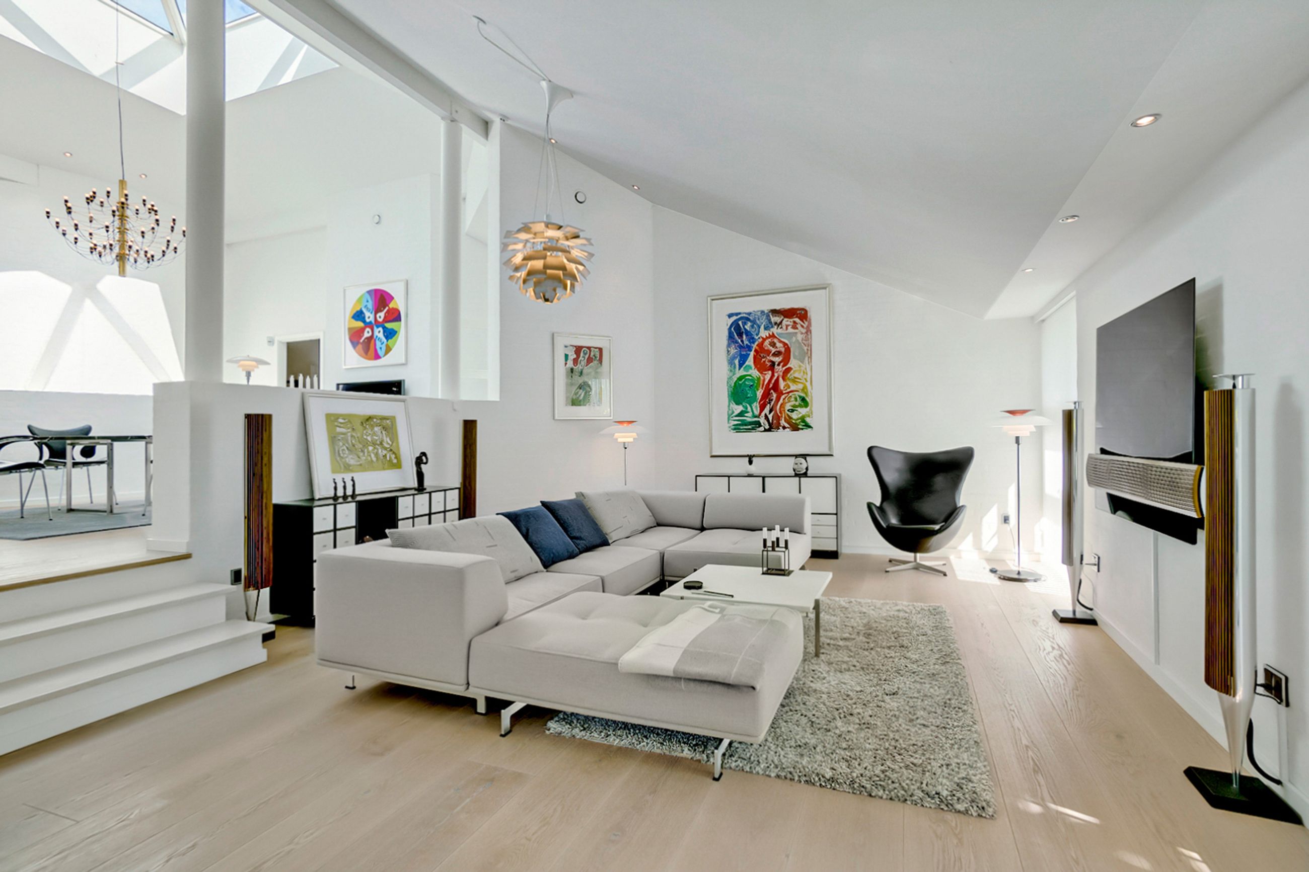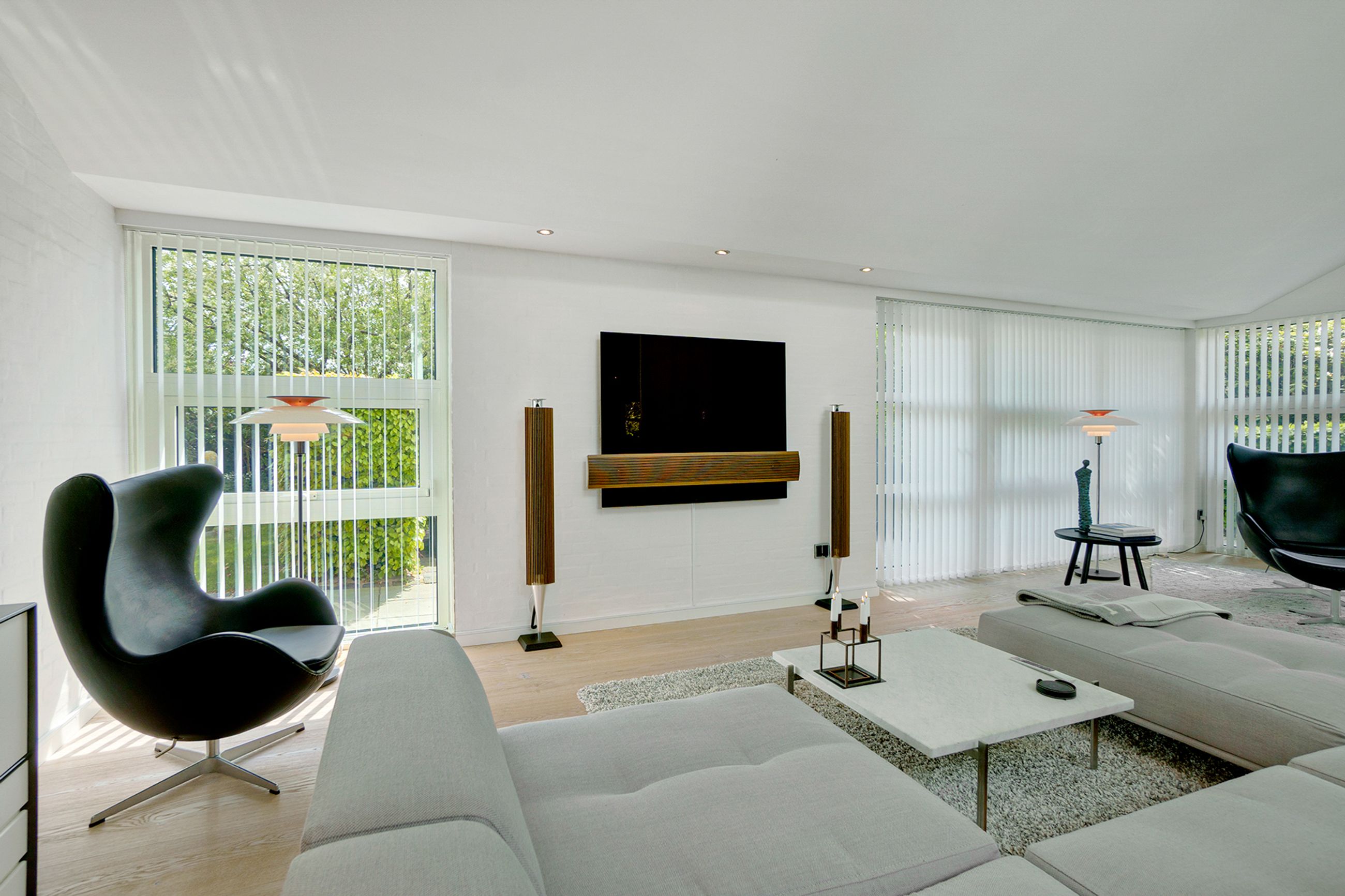 Huset på 421 etagemeter, hvor de 149 m2 befinder sig i det høje lyse kælderplan, er bygget i 2000 på en 2000 m2 grund. Det er gennemrenoveret for 4 år siden med dansk arkitektonisk enkelhed og materialer i højeste kvalitet. Helt klar til indflytning. Her er så lyst overalt. I det solbeskinnede center af huset kigger man op mod himmelen, og derfra når man både stuerne, det temperaturstyrede vinrum og den rummelige vinkælder, spa, soveafdelinger og teenage-afsnit. Ude er der terrasser, der fanger solen på ethvert tidspunkt af dagen, og den, der er vendt mod aftensolen, er naturligvis opvarmet og har udendørs ildsted.