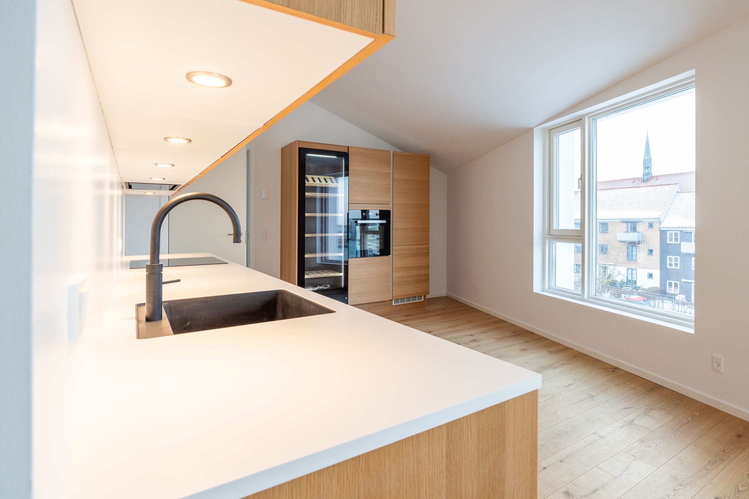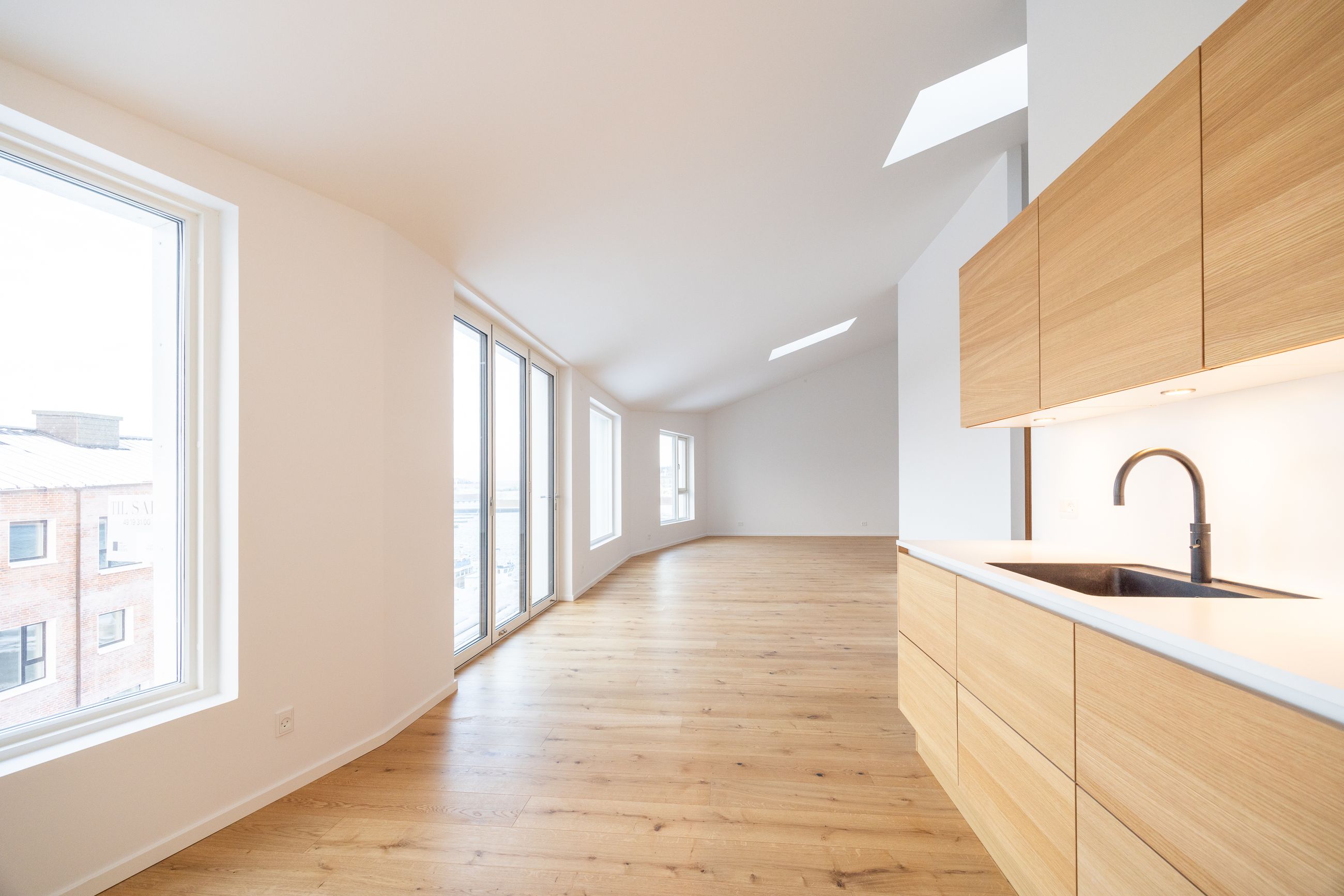 Det er altså en historisk placering, HAVNEKARRÈEN har på matriklen. De 20 lejligheder har alle altan, de har forskellige størrelser mellem 86 m2 og 181 m2 til priser mellem 5.200.000 kr. og 13.500.000 kr. Og så er de alle indrettet med herligheder fra øverste hylde, og den liste udleveres ved besigtigelse. De første lejligheder er parat til at sige velkommen.