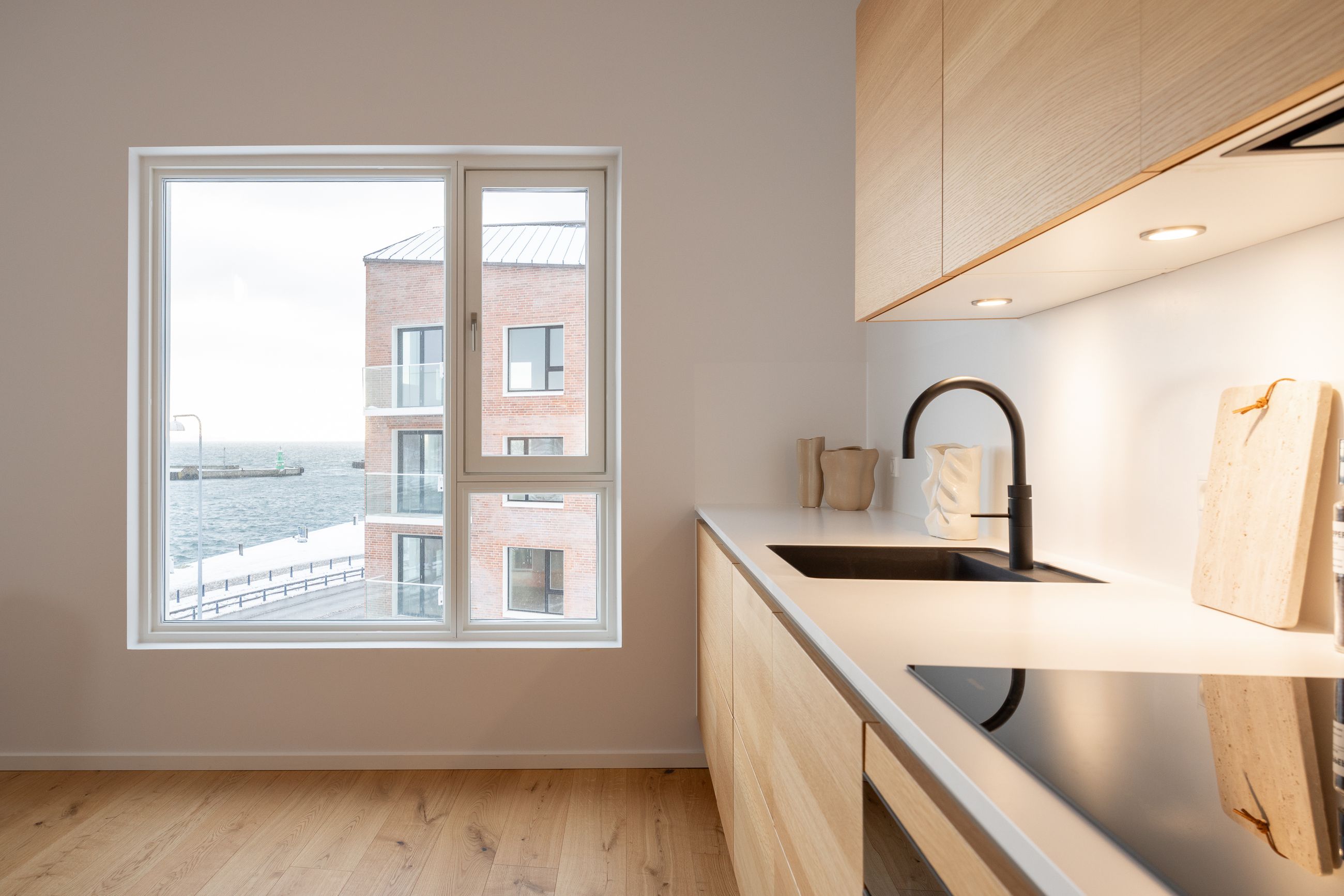 Det er altså en historisk placering, HAVNEKARRÈEN har på matriklen. De 20 lejligheder har alle altan, de har forskellige størrelser mellem 86 m2 og 181 m2 til priser mellem 5.200.000 kr. og 13.500.000 kr. Og så er de alle indrettet med herligheder fra øverste hylde, og den liste udleveres ved besigtigelse. De første lejligheder er parat til at sige velkommen.