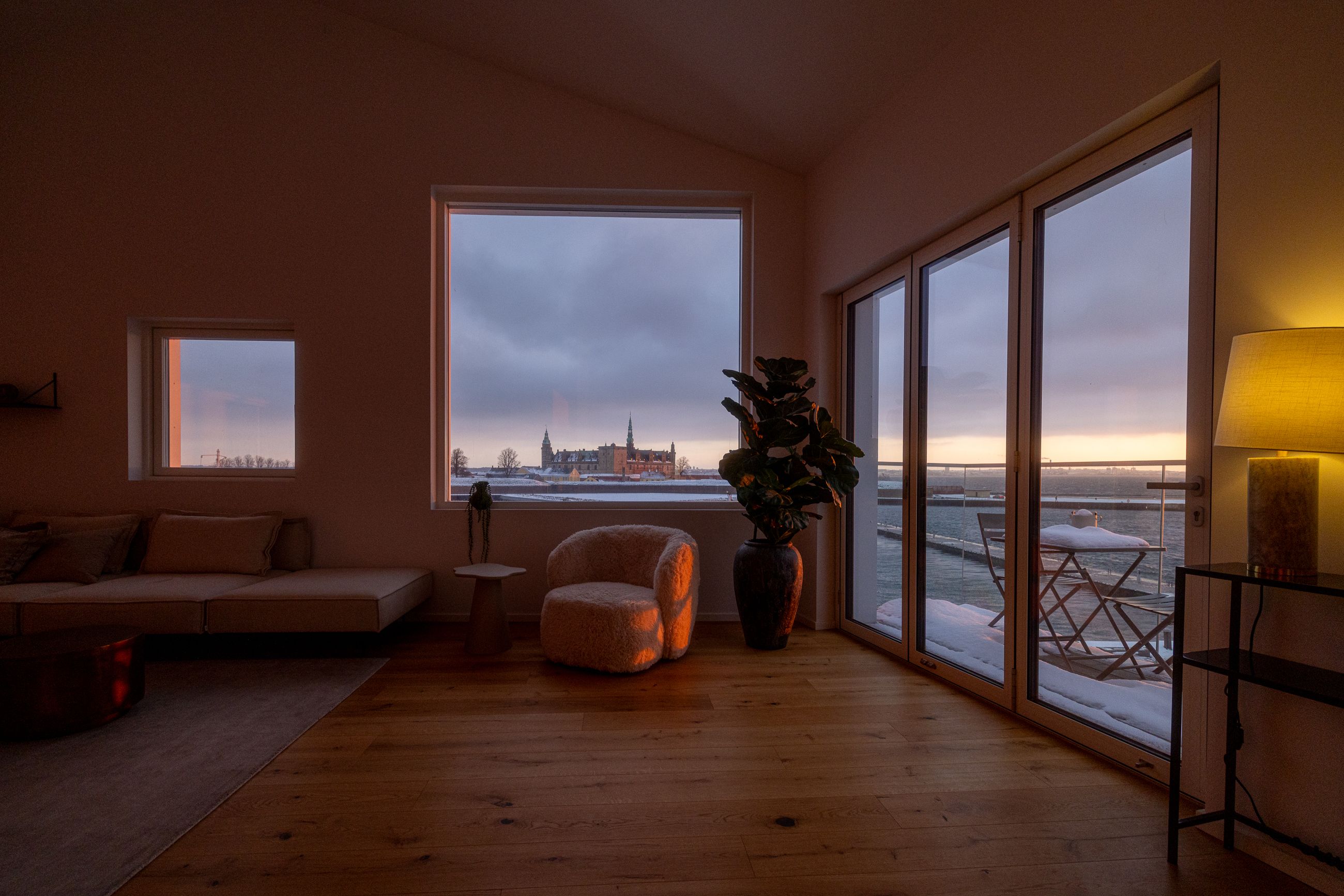 Ja, historisk placering, men også et fornemt kvarter med naboen Von der Ostens Gård, som blev opført i sidste halvdel af 1700-tallet for toldkommissæren F.V. der Osten, som et synligt tegn på den velstand, Øresundstolden skabte. Palæet er et markant punkt på havnefronten og viser hvorledes datidens fornemme ejere ønskede at udstille deres rigdomme ved at lade facaderne overstråle husenes bagsider. Helsingør blev stor og rig på Øresundstold, resten er historie. HAVNEKARRÈEN er i dag en del af den historie med udsigt til det hele.