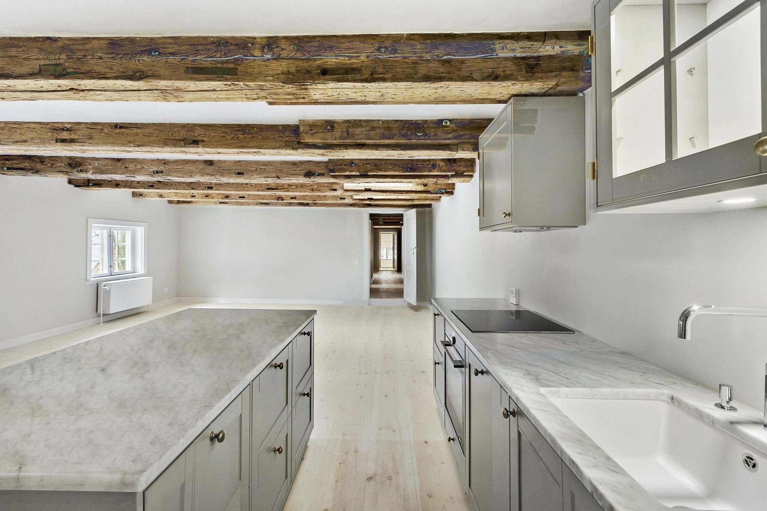 Ejendommen Stormgade 10A ligger i østfløjen i det fine gamle Holsteins Palæ, som er nyrenoveret i tæt samarbejde med Slots- og Kulturstyrelsen og med en helt særlig respekt for de eksisterende rammer, arkitektoniske udsmykninger og mageløse bygningselementer. Den historiske og arkitektoniske værdi er bevaret. Lejligheden på øverste etage er 2. salen, som blev tilbygget i 1687. Her er 136 m2 bolig med en særlig bonus, nemlig etagen ovenover, som er et privat, tinglyst loftrum på 71 m2 til julepynt og opbevaring. Alt er renoveret, ingen har endnu brygget morgenkaffe, ingen har skyllet natten væk under bruseren eller kigget sig selv i spejlet. Facaden mod Stormgade er bragt tilbage til dets oprindelige udtryk, hvor facader var farverige, og hvor de københavnske bygherrer kiggede mod Frankrig og Versailles for inspiration. Der er fred og ro på 2. sal, også inde i gården bag den aflåste port, som er et af byens nye, private åndehuller.