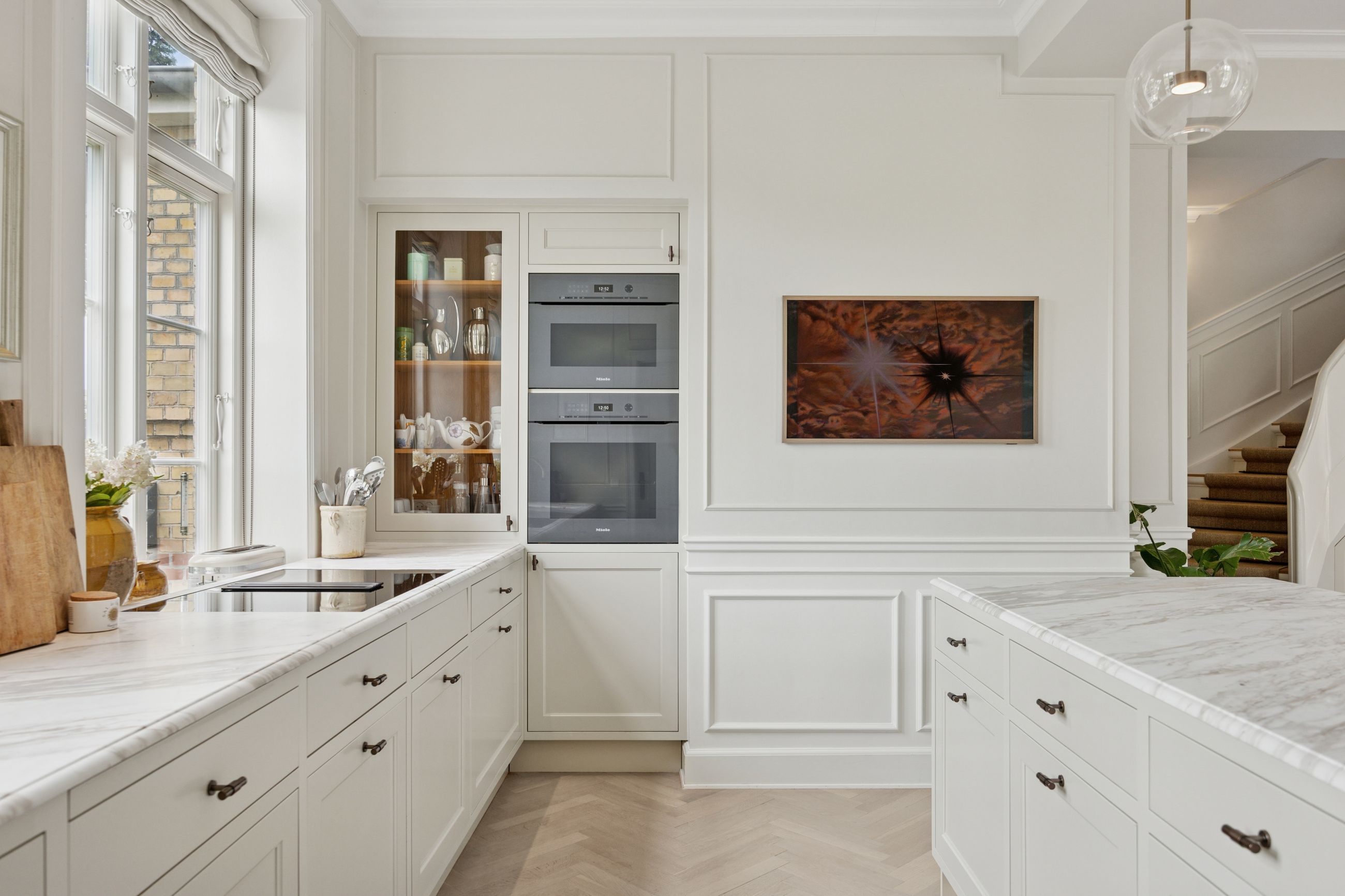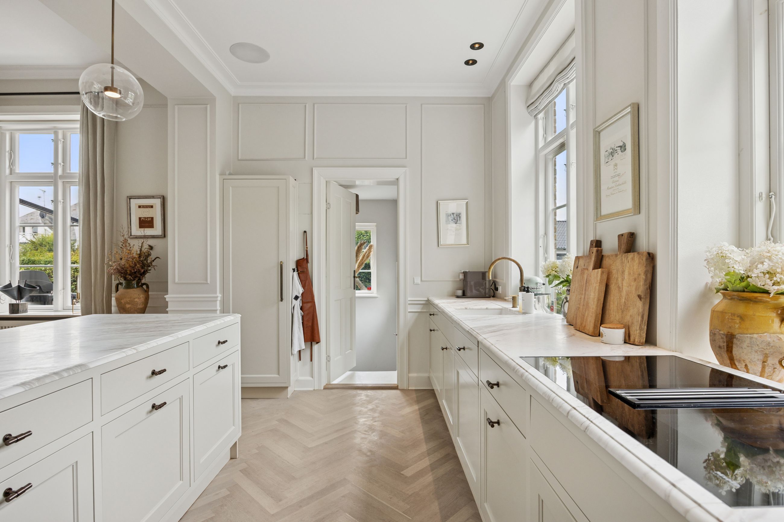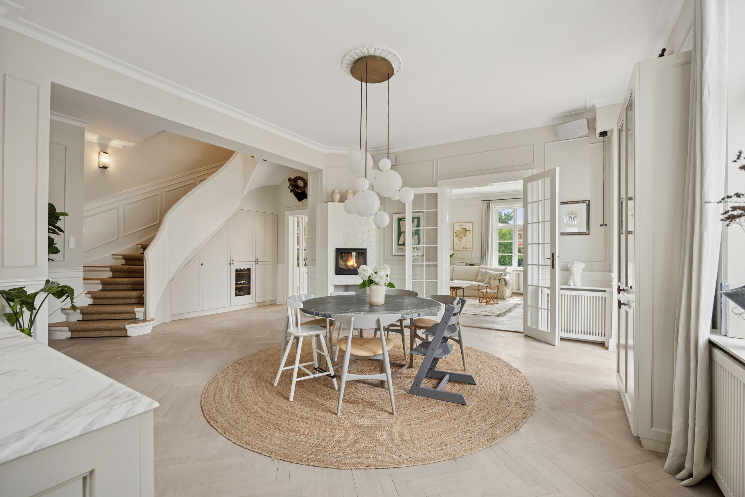 Med 330 etagemeter, hvor de 110 ligger i underetagen, er det et hus med masser af plads. Alt er renoveret til en uforskammet lækker bolig. Lækkert køkken, lækre badeværelser, smukke paneler, de smukkeste parketgulve, det fineste trappeløb, ja, alt er renoveret med lige så stor veneration for håndværket som de håndværkere, der byggede i Bedre Byggeskik. Grunden er på overkommelige 682 m2. Ikke meget havearbejde her.