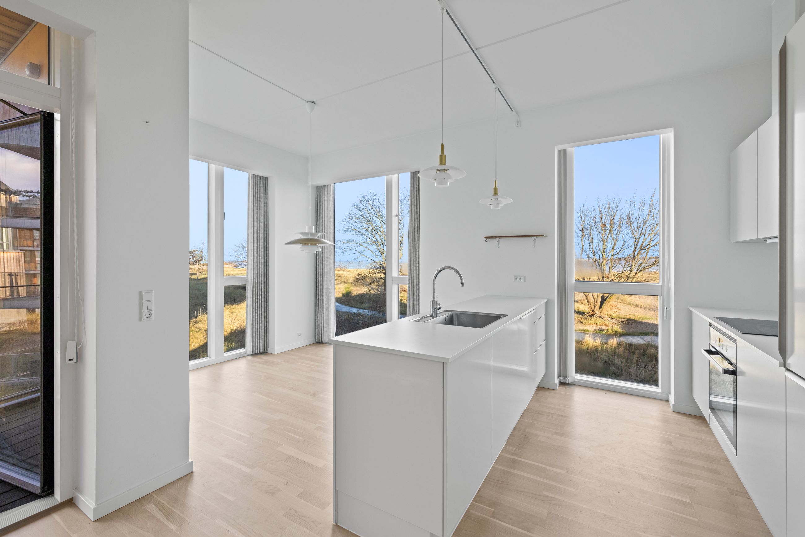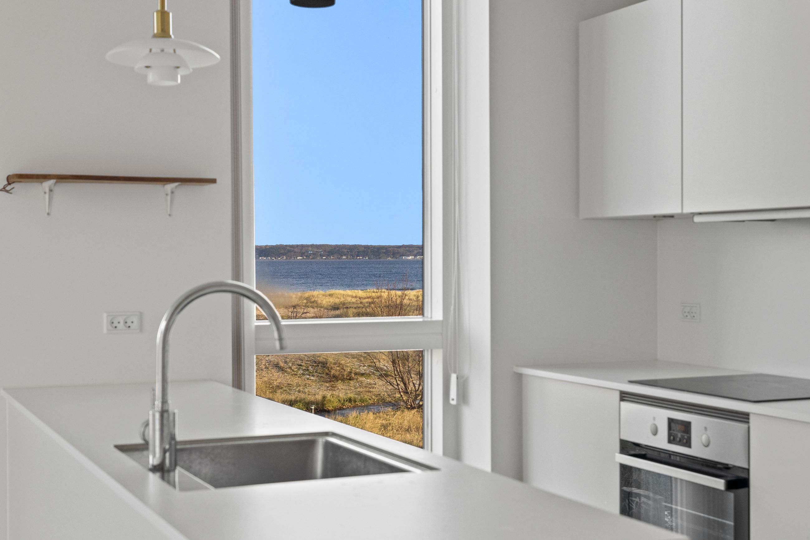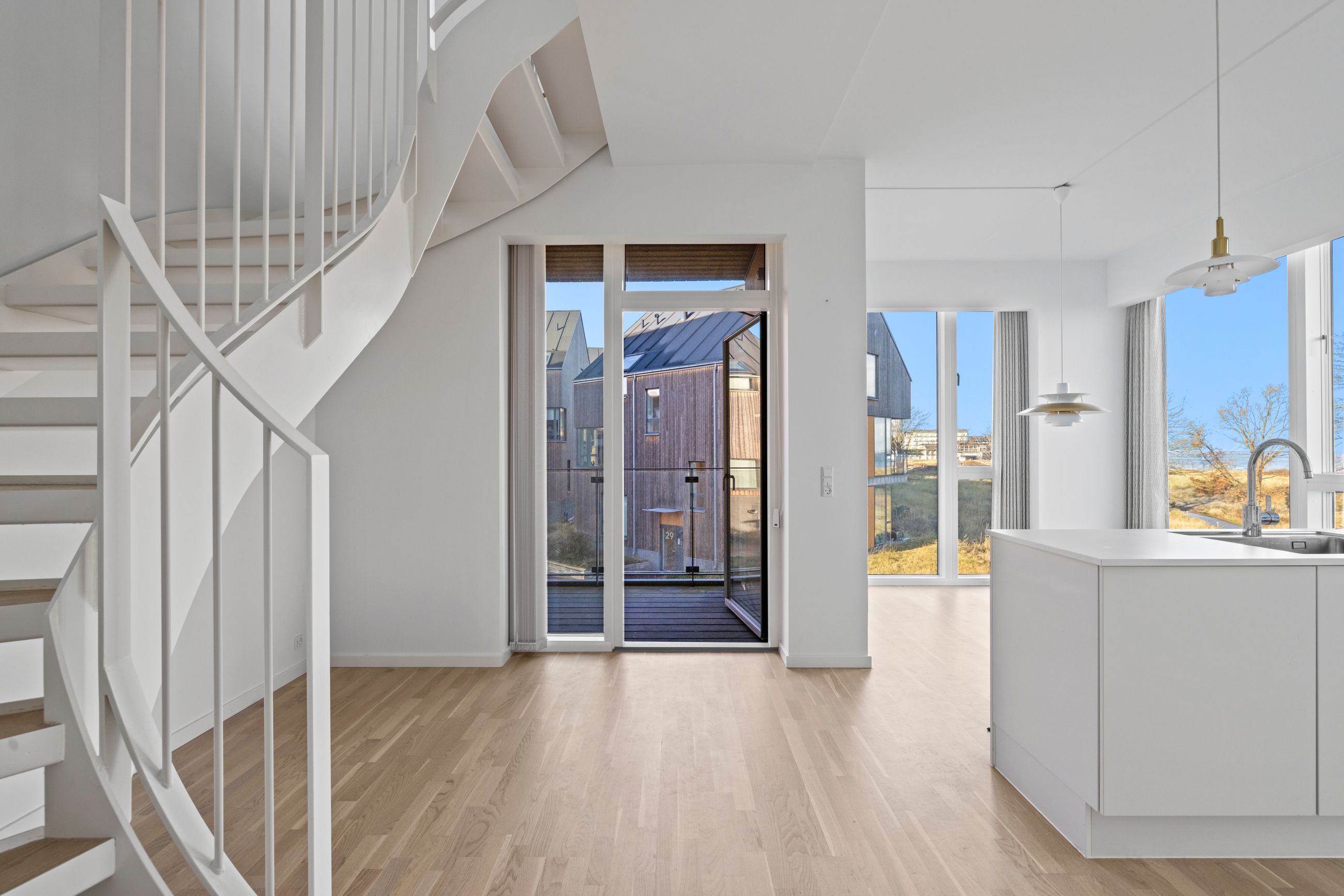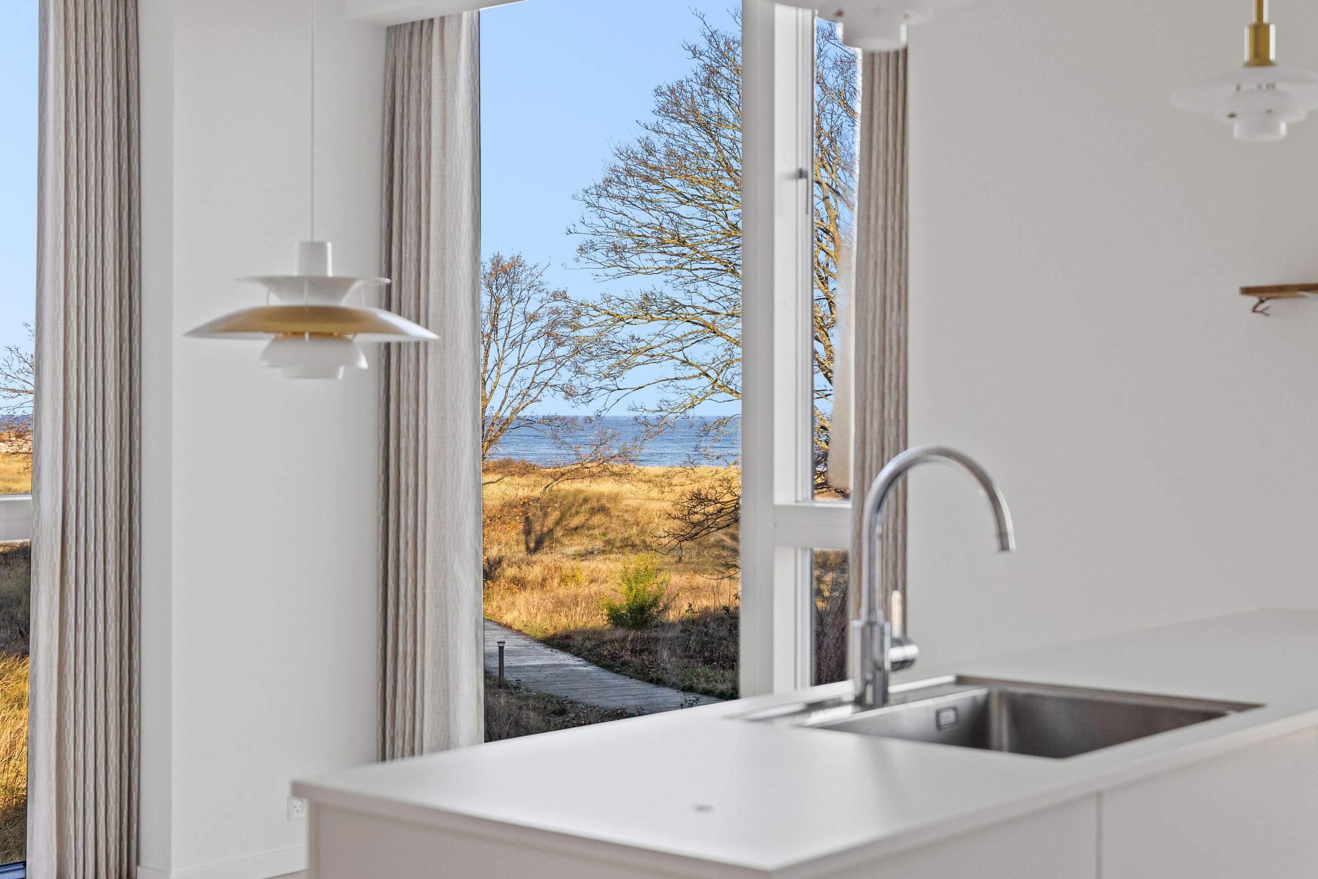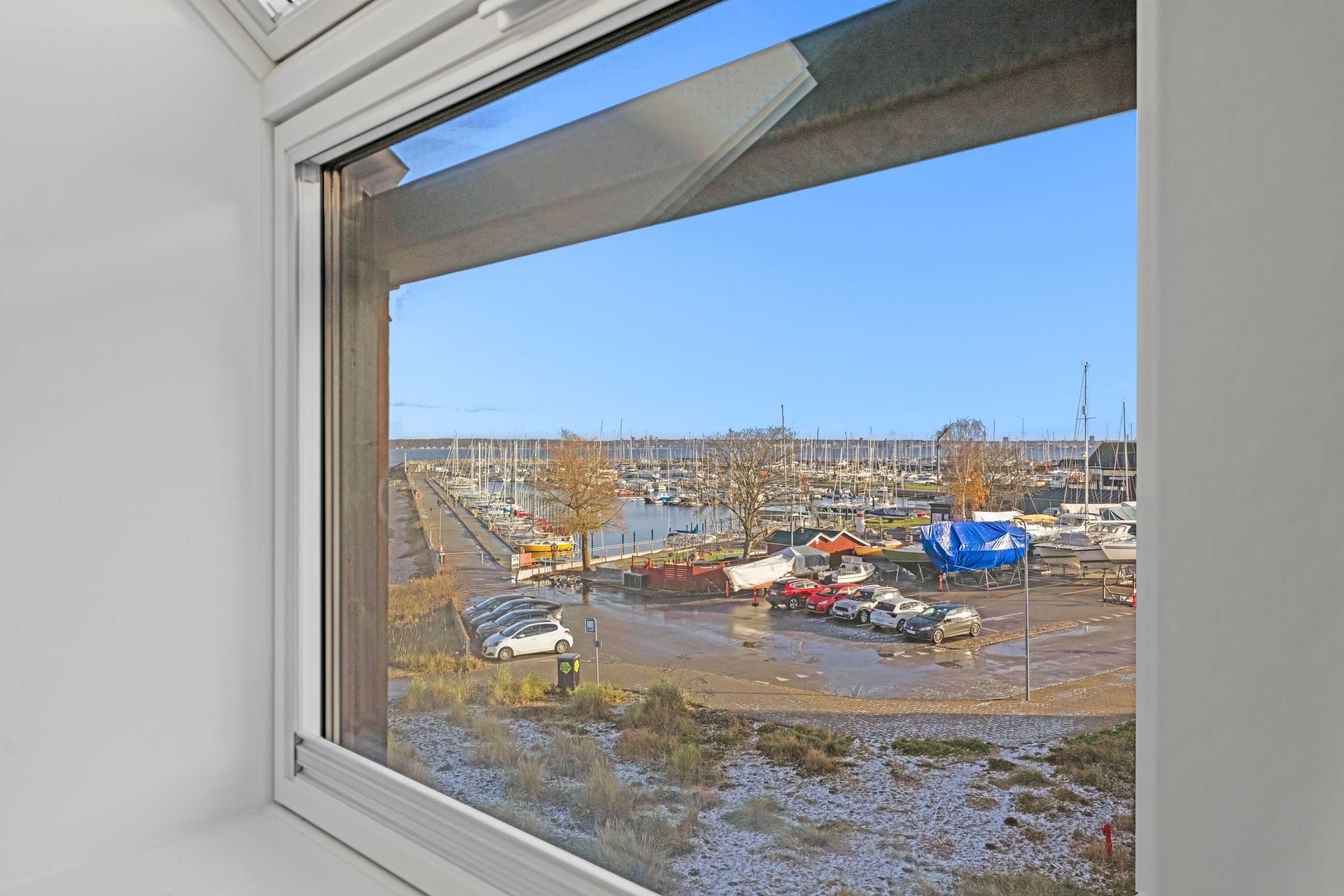 At bo på en strand med sand, marehalm og klitroser under fødderne, ja, hvad er nu det for noget. Det er såmænd bare Punkthusene, de attraktive og smukke træbeklædte ejendomme bygget i 2019 lige overfor lystbådehavnen i Helsingør Nordhavn. De står på strandmatriklen, som var de sat tilfældigt uden omtanke. Men næh, de er betænksomt placeret, så alle lejlighederne i de 24 ejendomme får den optimale glæde af udsigten over Øresund. At bo her er som at bo på kanten af verden, hvor salt og vand banker på ruden hver morgen for at spørge, om man vil med. Det vil man selvfølgelig gerne. Mange begynder dagen med en svømmetur, nogle går en tur med hunden langs vandkanten, andre fylder sindet med de indtryk, som kun en udsigt over havet kan give.