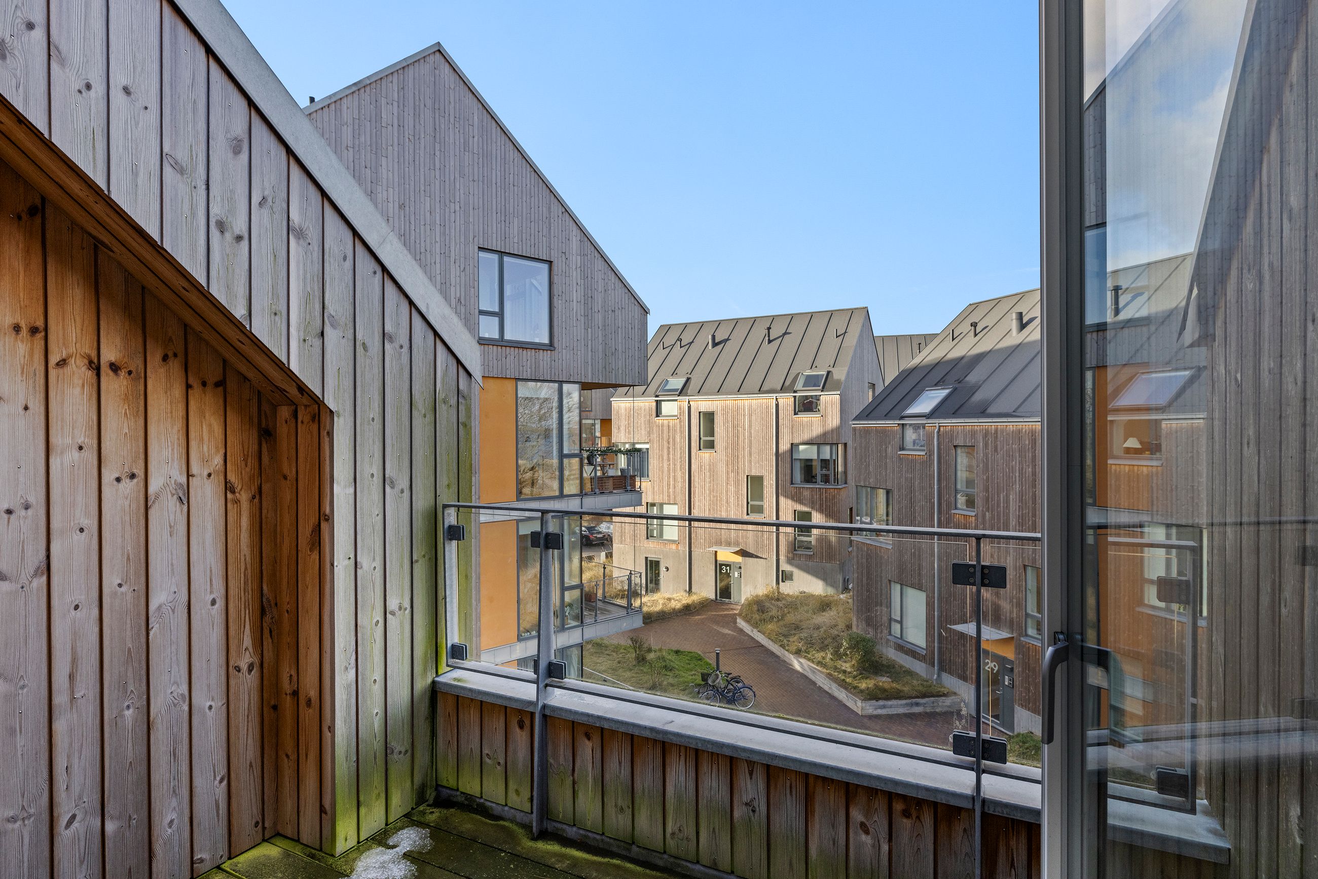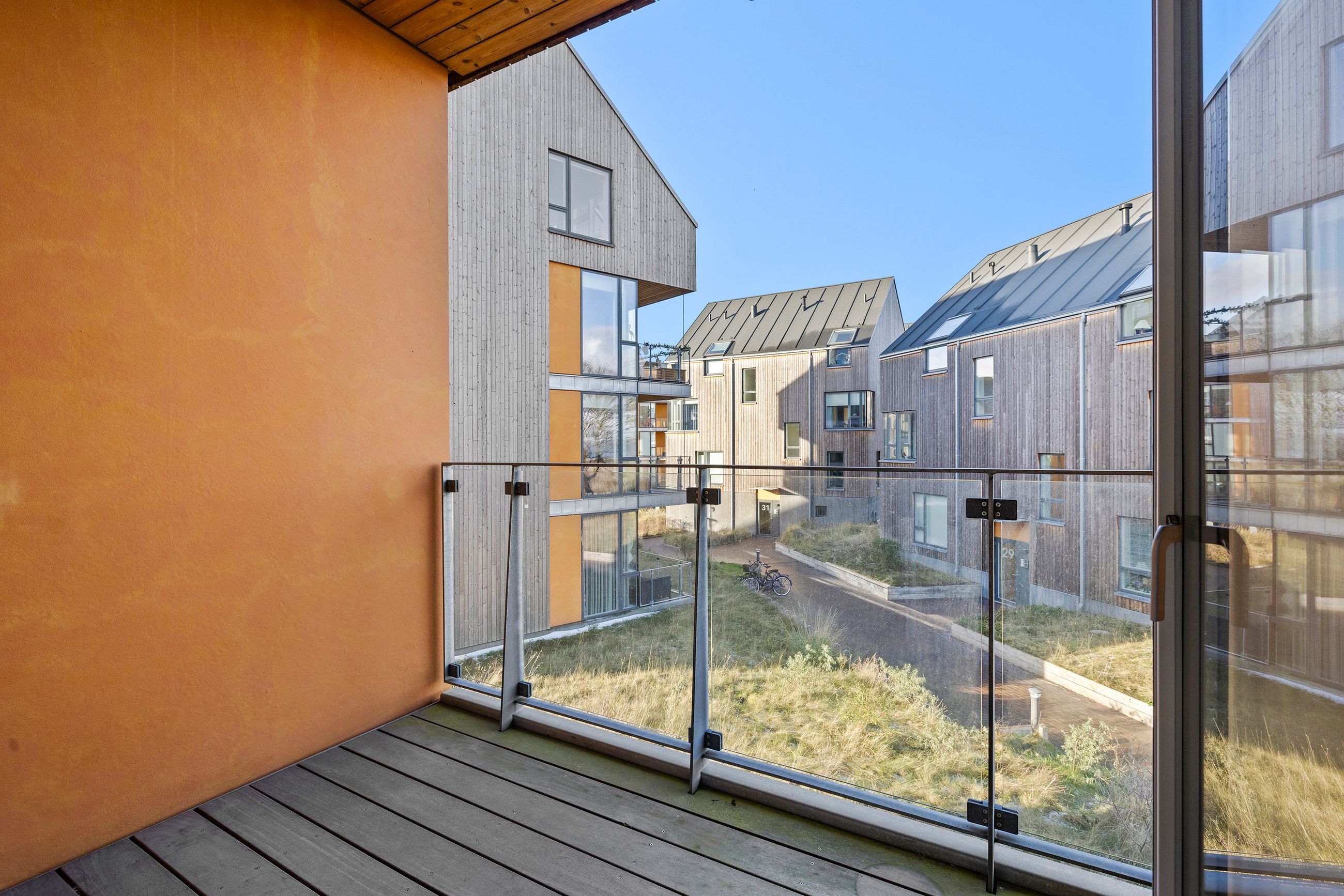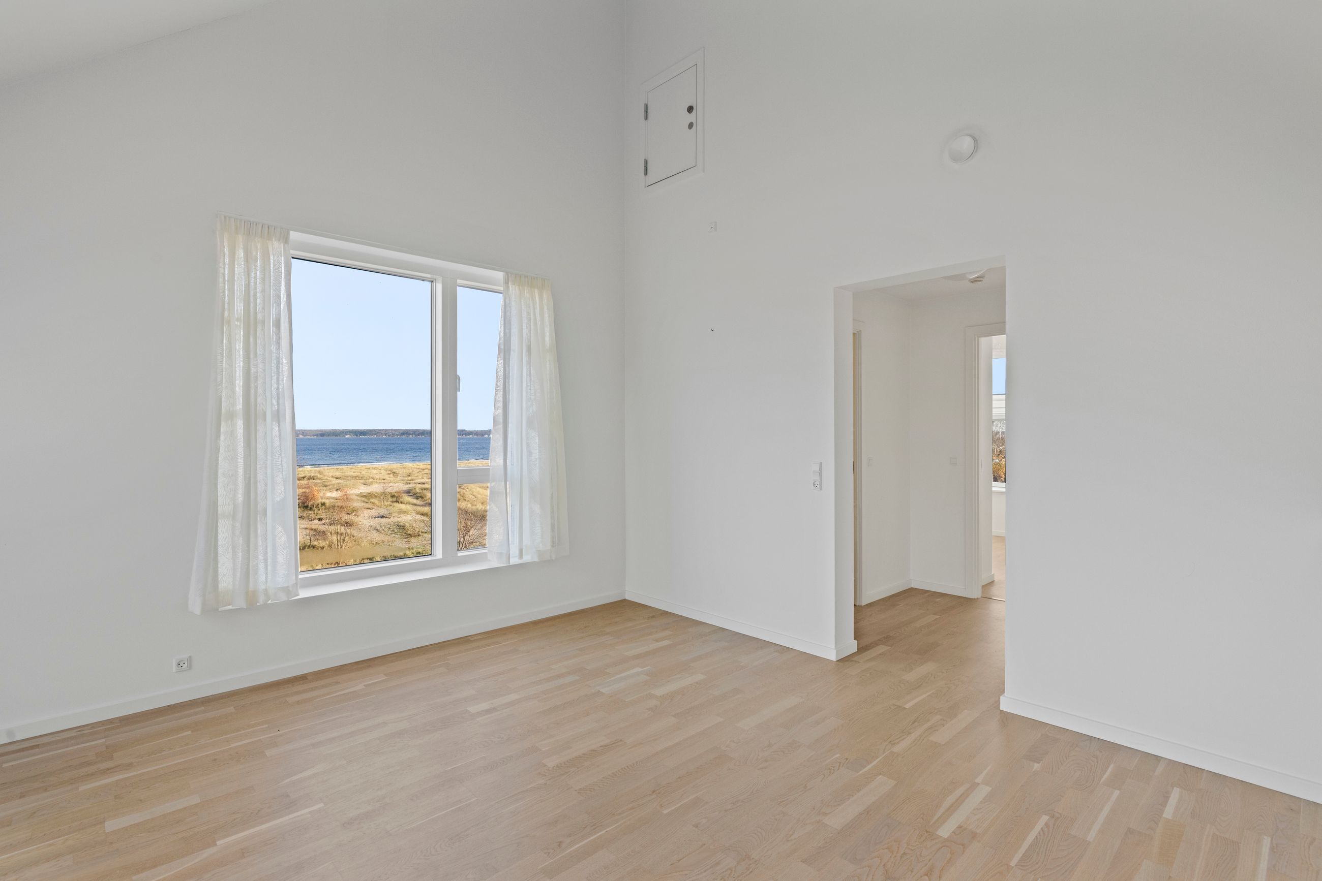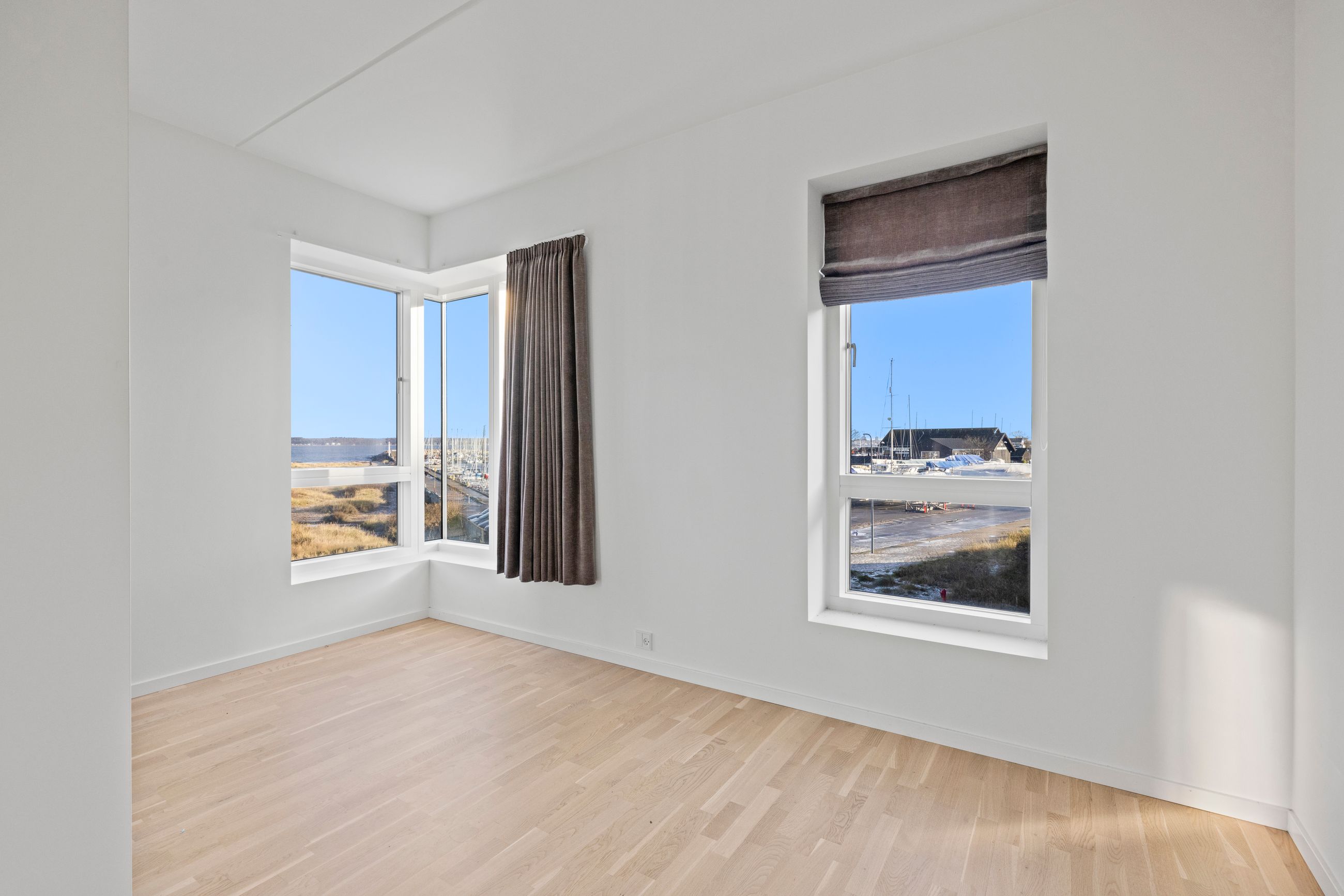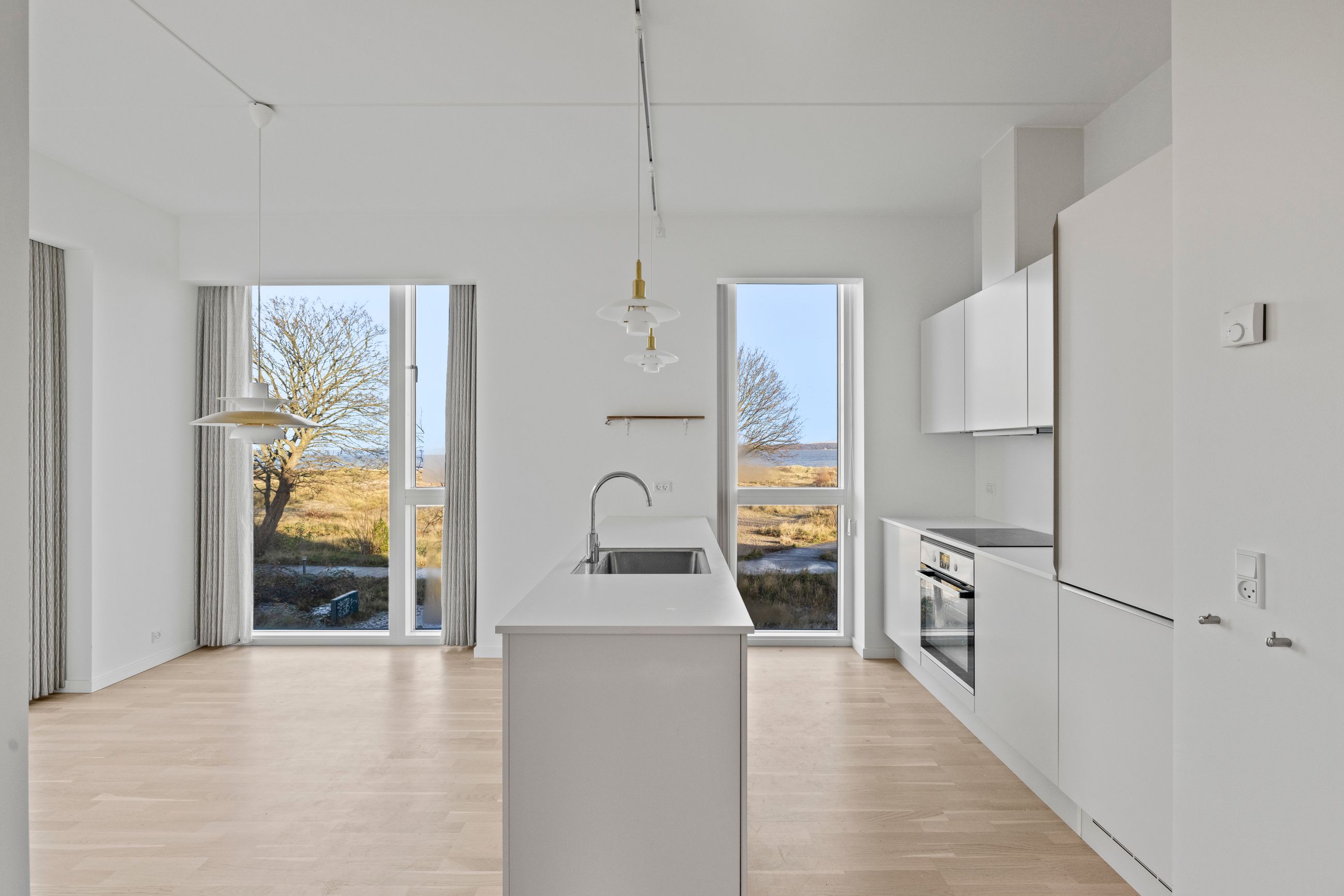 At bo på en strand med sand, marehalm og klitroser under fødderne, ja, hvad er nu det for noget. Det er såmænd bare Punkthusene, de attraktive og smukke træbeklædte ejendomme bygget i 2019 lige overfor lystbådehavnen i Helsingør Nordhavn. De står på strandmatriklen, som var de sat tilfældigt uden omtanke. Men næh, de er betænksomt placeret, så alle lejlighederne i de 24 ejendomme får den optimale glæde af udsigten over Øresund. At bo her er som at bo på kanten af verden, hvor salt og vand banker på ruden hver morgen for at spørge, om man vil med. Det vil man selvfølgelig gerne. Mange begynder dagen med en svømmetur, nogle går en tur med hunden langs vandkanten, andre fylder sindet med de indtryk, som kun en udsigt over havet kan give.