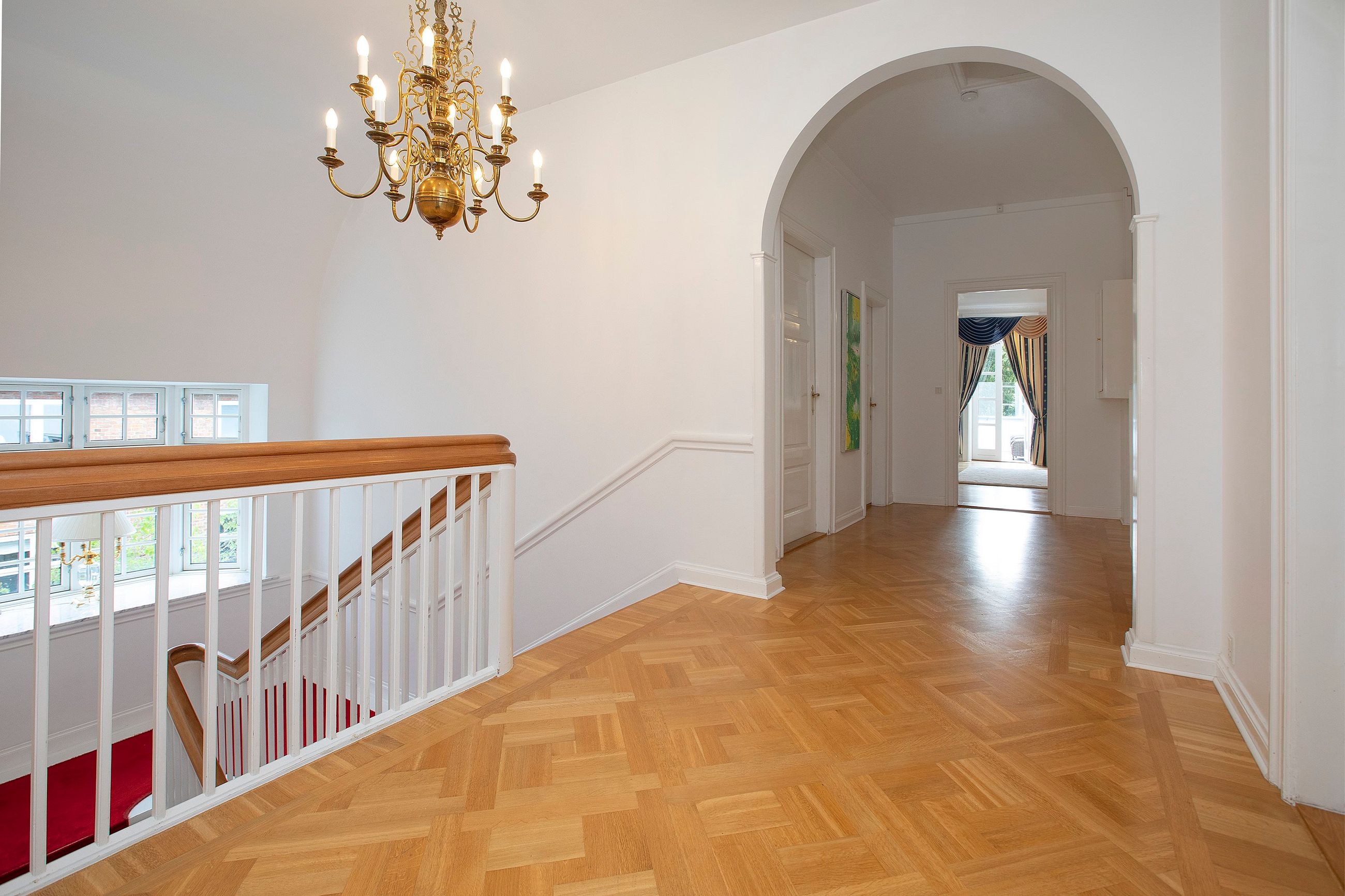 Ejendommen Strandvejen 142B er fra 1924, altså bygget samtidig med de fine rækkehuse, som Sundvænget er så berømmet for. Det er en herskabelig ejendom, for nu at bruge et gammeldags udtryk, en ejendom med klassisk pondus. Her er 443 etagemeter, hvor de 152 m2 ligger i underetagen. Det er en smuk, tidløs og velholdt ejendom, man lige kan flytte ind i. Med mange værelser, masser af plads og stor herlighedsværdi skal der ikke meget til for at løfte det hele til et højere niveau. Grunden er på 952 m2. Den store børnefamilie får det ikke meget bedre end her i Hellerup og Charlottenlund.